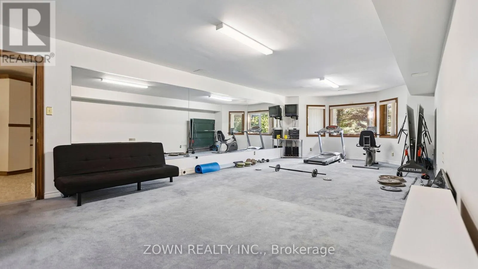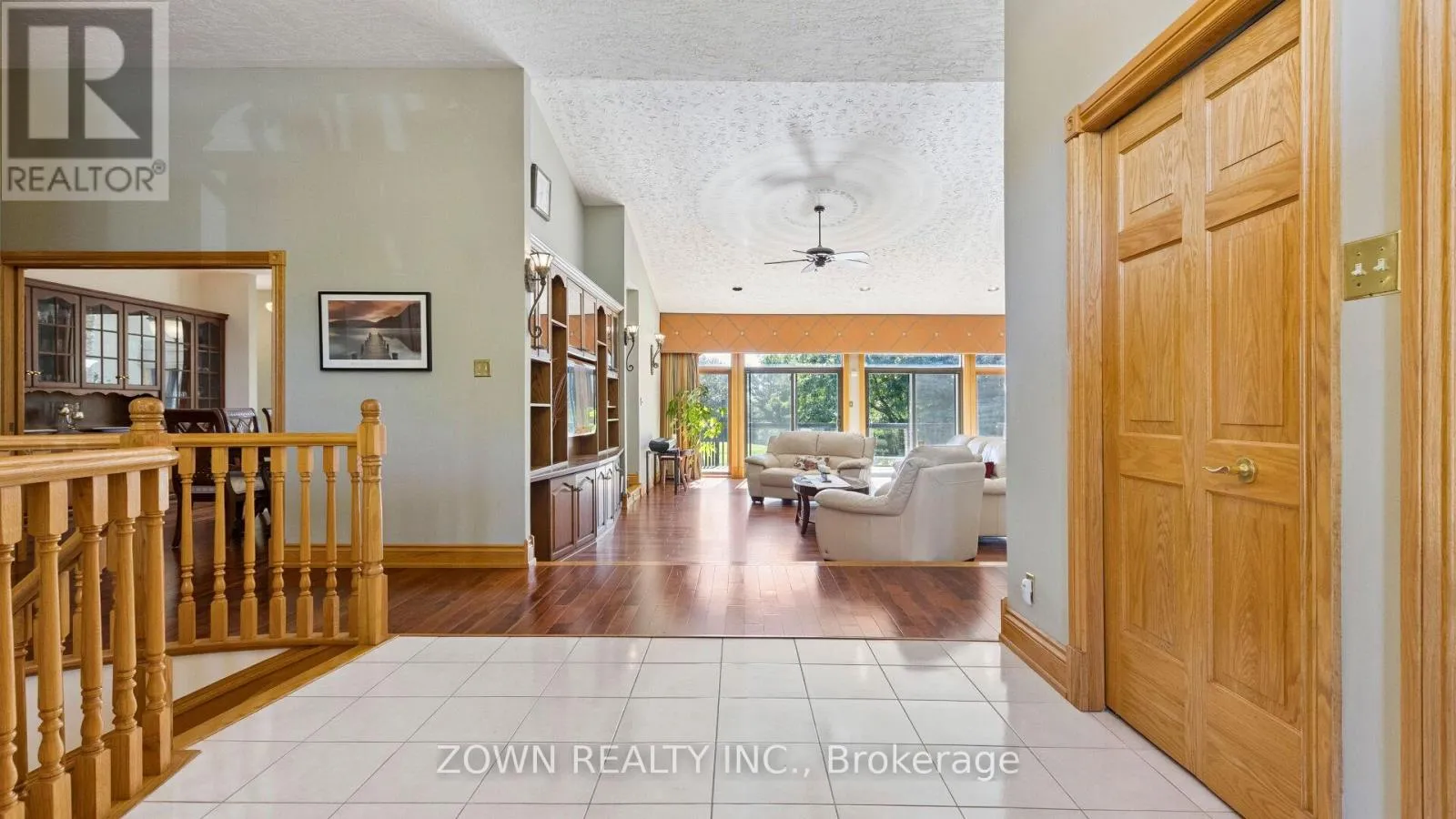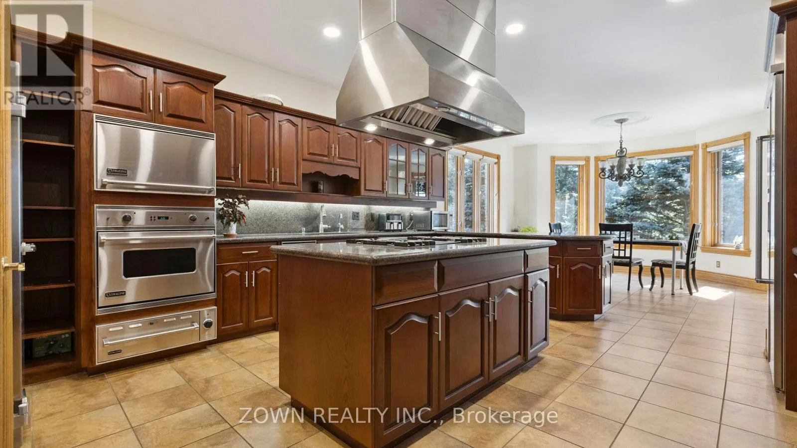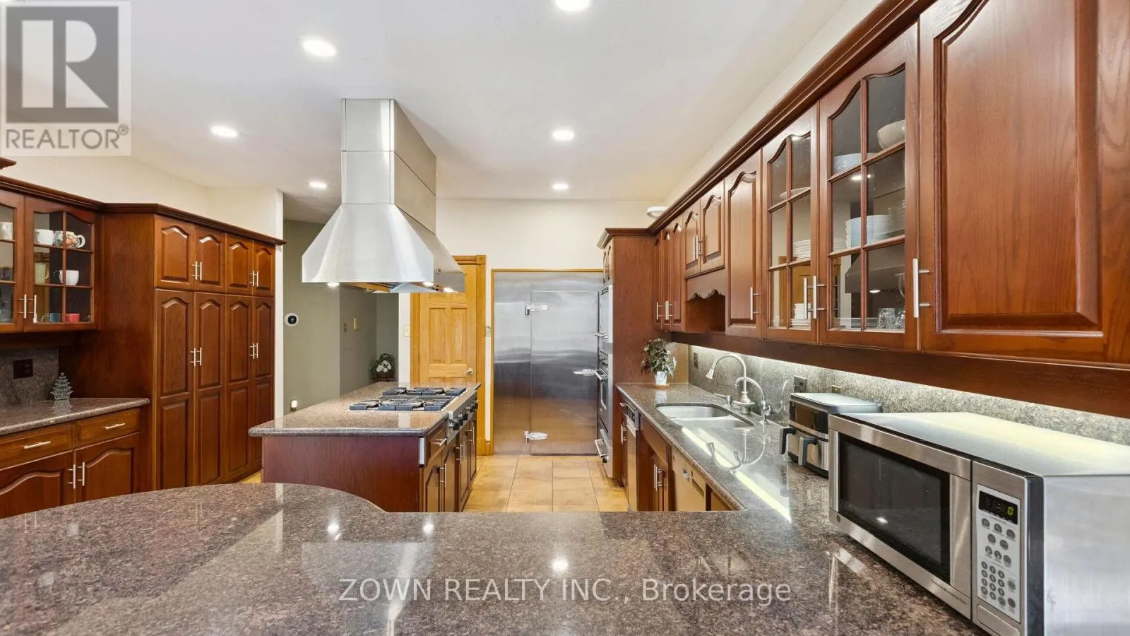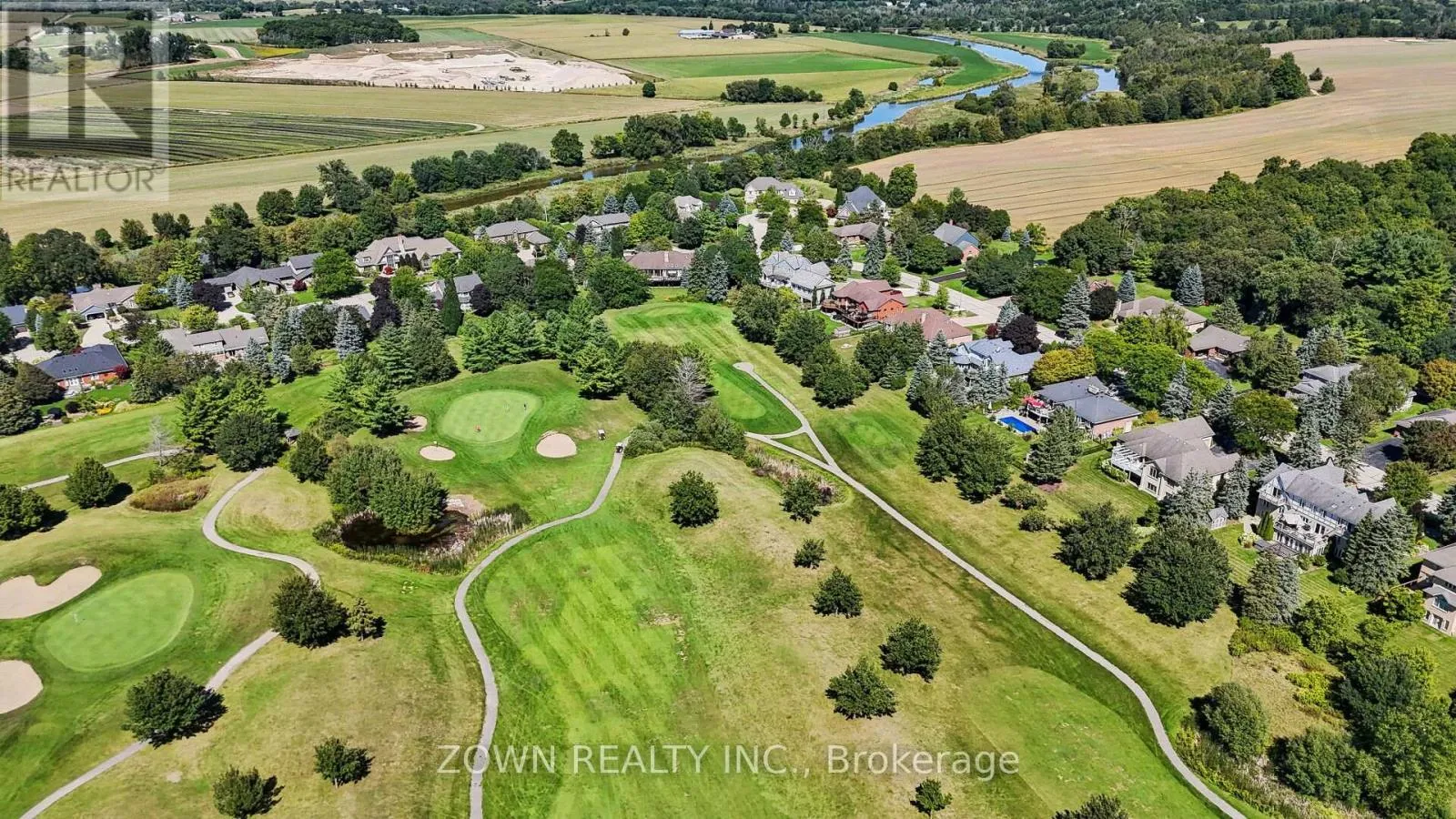 Hunsberger Rd / Golf Course Rd Prestigious Golf Course Living in Conestogo. Experience the pinnacle of luxury in this magnificent 205-foot-wide bungalow nestled on exclusive Golf Course Road in the sought-after Conestogo community of Waterloo. Backing directly onto the golf course, this residence offers over 7,200 sq. ft. of refined living space with 6 bedrooms and 5 bathrooms. The grand great room impresses with soaring cathedral ceilings and a statement fireplace, while hardwood flooring throughout exudes timeless elegance. The primary suite and secondary bedroom each feature private ensuites and walk-in closets, designed with both comfort and sophistication in mind. The fully finished lower level is an entertainer's dream, complete with a sleek wet bar, relaxing sauna, rejuvenating Jacuzzi, and a private gym. A triple-car garage with a circular driveway adds to the home's commanding presence. Enjoy sweeping, unobstructed views of the golf course in a serene, family-friendly community with convenient access to the river and nearby amenities. This is not just a home; it's a statement of prestige and lifestyle. High efficiency heat pump. (id:27476)