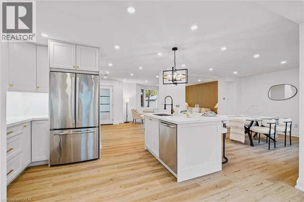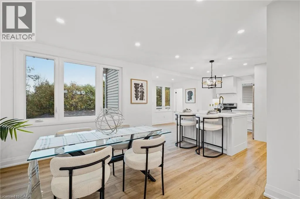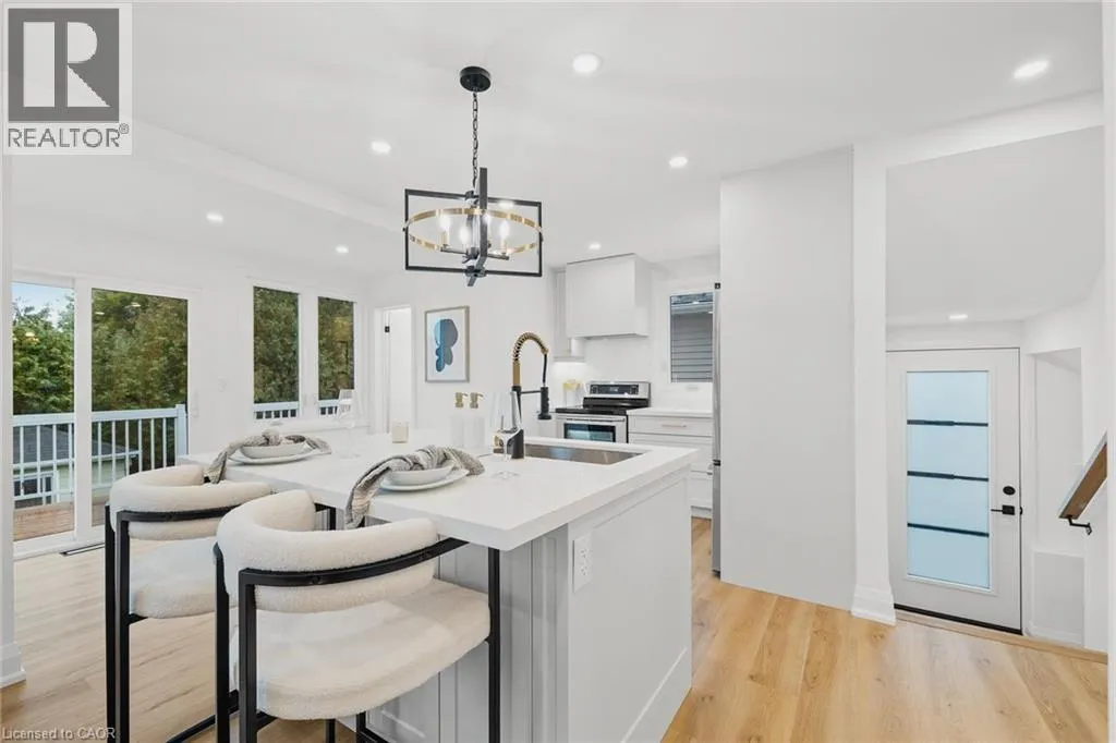 Follow Woolwich St S to Scheifele Pl A restoration of one of Breslau's original homes, this property has features and charm that can't be found within a subdivision type of home. Entirely professionally renovated, this 3 bedroom, 3 bathroom is loaded with high end, modern design both inside and out. Make your entrance into the sunroom which is the perfect entry way/mud room. Step in through the next matching main door to the home where you are welcomed in to an open concept main floor. The living room with a feature wall and bay windows, a dining room and a stunning kitchen that exudes custom and high end design. This kitchen features an island with a breakfast bar, quartz for both the counters and backsplash, a separate space to create a drink or coffee bar and a sliding patio door leading out the balcony, perfect for BBQ. The quartz counters are matching for every counter throughout the home. Powder room on the main floor. Upstairs features 3 bedrooms and a luxury designed bathroom. The primary bedroom features a door leading to the newly done roof over the attached garage that can be transformed to a private balcony. The second floor luxury bathroom features heated floors, a curbless shower and a soaker tub with a LED mirror and under-cabinet lighting. The basement is fully finished giving you a large Rec room and another 3pc bathroom. The laundry room has been finished for comfort and maximized storage. The exterior features an interlock pathway from the driveway to backyard. Not one but 2 garages with new roofs on both as well as a shed in the backyard. This home was brought back to life and redesigned to maximize functionality in one of the most desired areas to live. The perfect location to live in quiet but still close to highways for commuting. Within minutes to Waterloo, Kitchener, Cambridge and Guelph, school nearby, library, parks & more. A perfect home to raise a family. Properties like these don't hit the market often, let alone renovated professionally like this. Book your showing today! (id:27476)