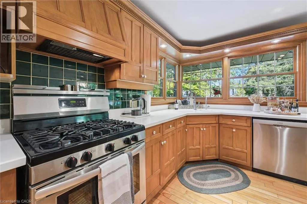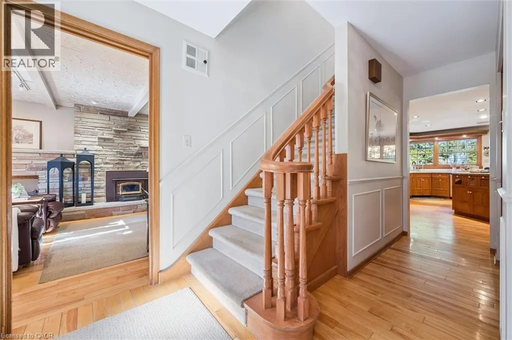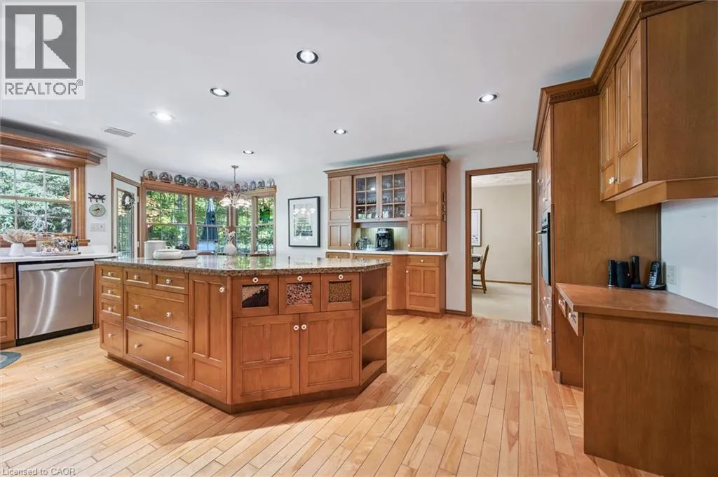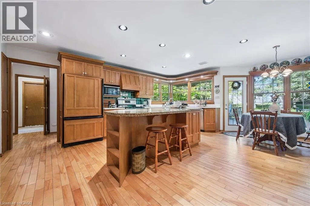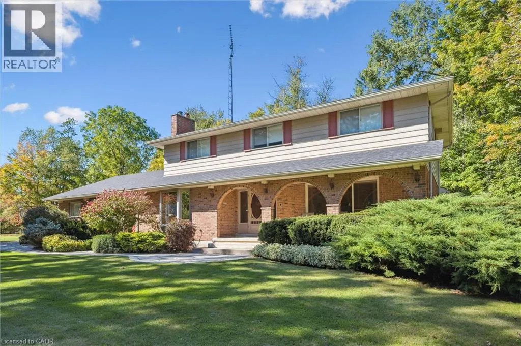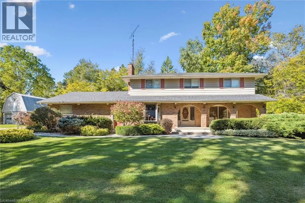 West on Hwy 7 to Shantz Station Rd (Country Rd 30) turn right (north) property on left hand side Welcome to this exceptional country retreat perfectly situated on a beautiful, treed 12.33-acre corner lot in sought-after Breslau. Enjoy peaceful country living just minutes from the city, near private school, and directly across golf course.This impressive 4-bedroom, 3.5-bath home offers over 3,400 sq. ft. of finished living space, combining warmth, functionality, and character throughout. The bright maple kitchen features granite countertops, a spacious dinette overlooking picturesque country views, and easy access to the formal dining and living rooms â perfect for entertaining. The cozy main-floor family room includes a wood-burning stove, while the convenient main-floor laundry adds everyday practicality.Upstairs, youâll find four oversized bedrooms, including a primary suite with a walk-in closet and private ensuite. The fully finished basement with a separate entrance offers a large recreation room, full bathroom, and an oversized workshop â ideal for hobbyists or extended family living.Step outside to enjoy the covered front porch, large back deck, and beautifully landscaped grounds. Two large barns complete the property: one insulated block barn suitable for animals or workshop use, and a second 40â x 60â barn offering endless possibilities â from storage to a hobby farm setup.A rare opportunity to own a property that blends space, serenity, and versatility â all within minutes of Kitchener, Cambridge, and Guelph. (id:27476)