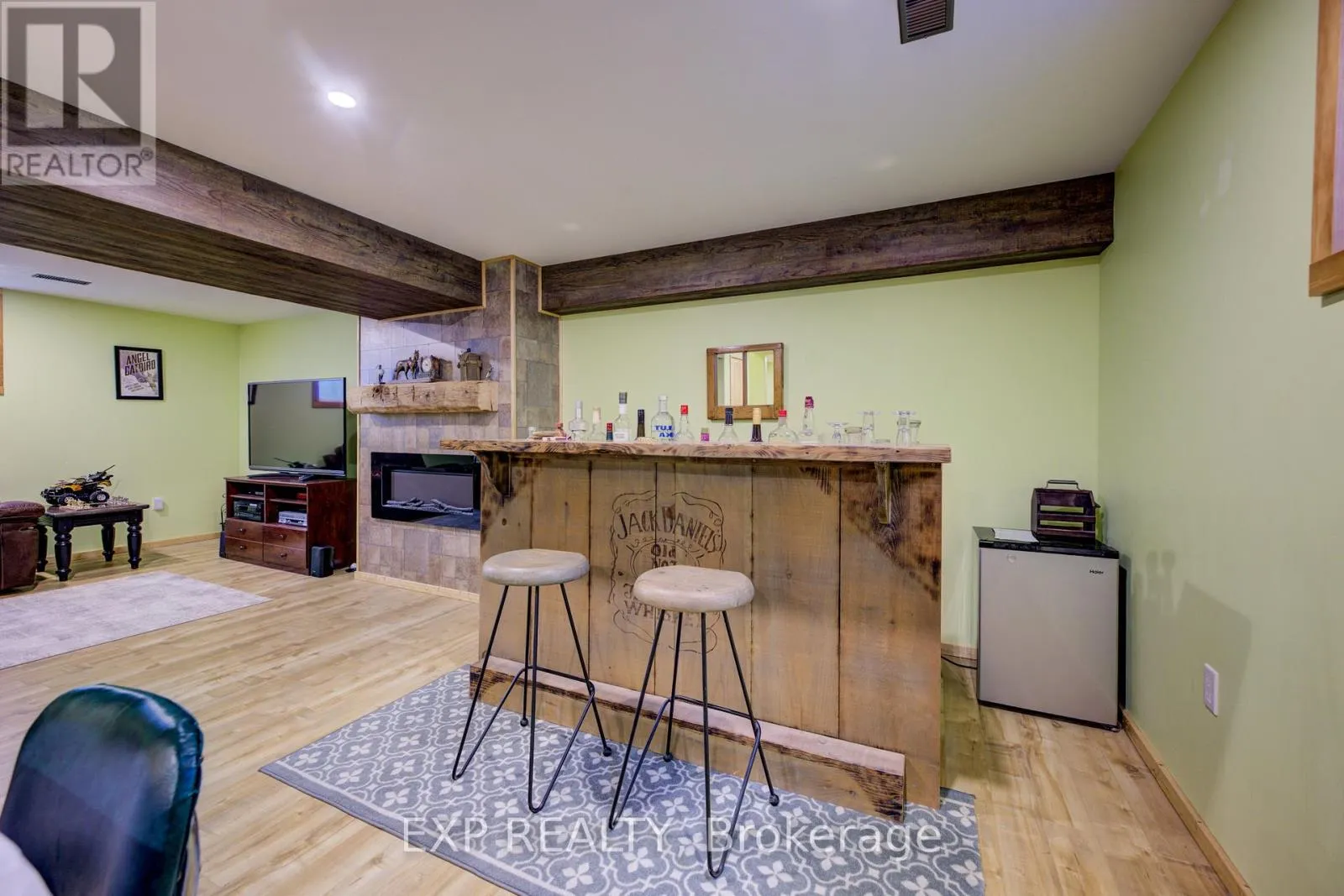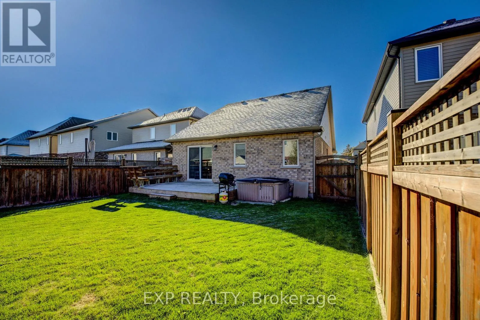 KISSING BRIDGE DR TO FINORO CRES Welcome to 42 Finoro Crescent, Elmira! This beautiful brick bungaloft, built in 2016, offers over 2,000 sq. ft. of total finished living space, blending modern design with small-town charm. Step inside to a spacious tiled foyer that opens into an inviting open-concept living area. The kitchen showcases stylish upgrades including quartz countertops, a center island, stainless steel appliances, tiled backsplash, and matching tiled floors, perfect for both everyday living and entertaining. The living room features engineered hardwood flooring and sliding glass doors that lead to a fully fenced backyard with a deck and hot tub, ideal for relaxing or hosting BBQs. The main level includes two bedrooms with large windows and engineered hardwood floors, along with a full bathroom and convenient main-floor laundry. The upper level features a loft providing the perfect space for a home office or cozy reading nook as well as a third bedroom, and bathroom. The finished basement extends your living space with a large recreation room featuring an electric fireplace, a third bathroom, and plenty of room for a workshop or storage. Outside, enjoy a charming front porch, a single-car garage, and driveway parking for two vehicles. Nestled in a quiet, family-friendly neighbourhood, this home offers the best of Elmira living. You'll be within walking distance to local schools, scenic parks, and the community baseball diamond, as well as the Elmira Farmers' Market, a local favourite for fresh produce and artisanal goods. Just a short drive away, you'll find the world-famous St. Jacobs Farmers' Market, charming boutique shops, and scenic countryside trails. With easy access to Waterloo, Kitchener, and nearby amenities, this location perfectly combines small-town warmth with urban convenience. (id:27476)