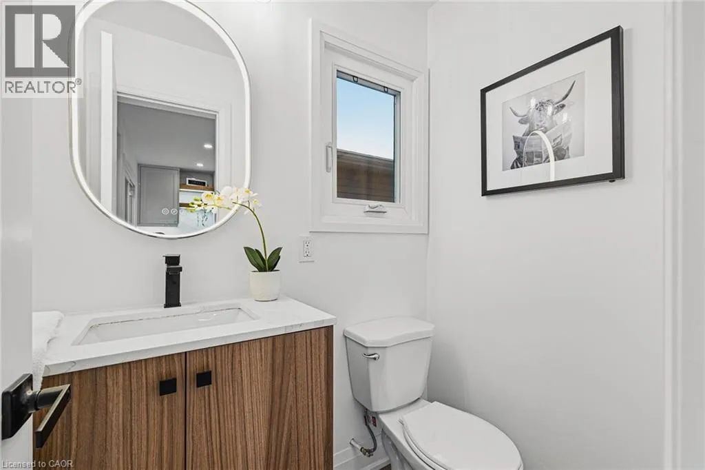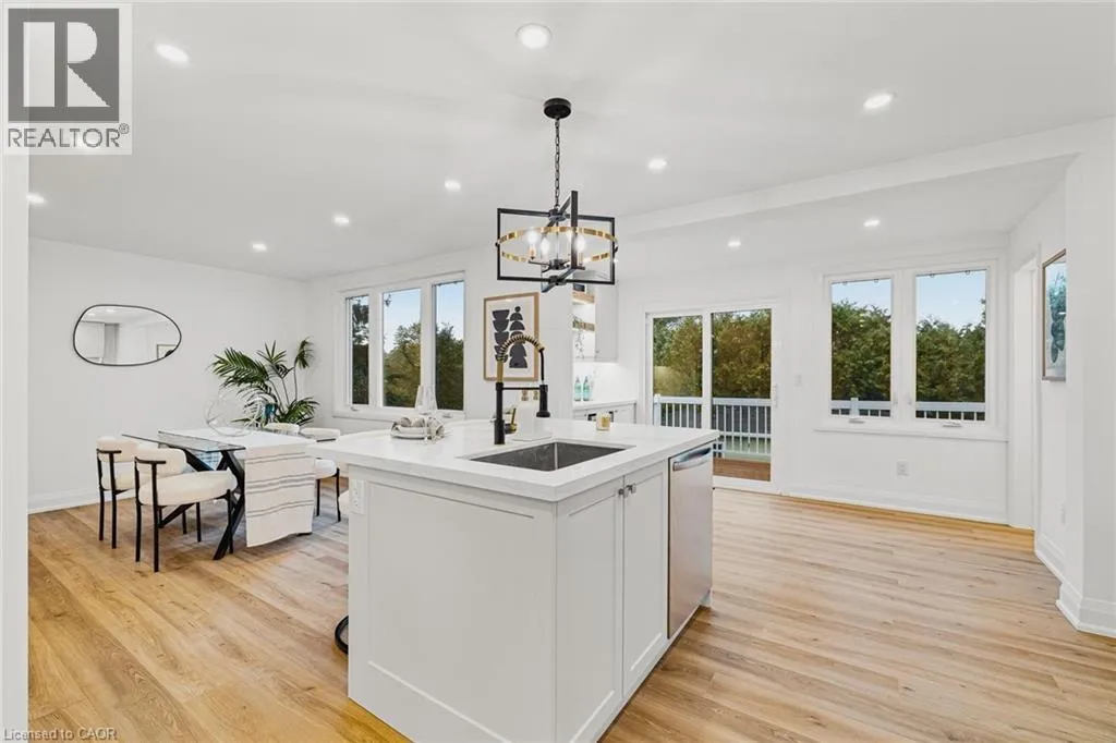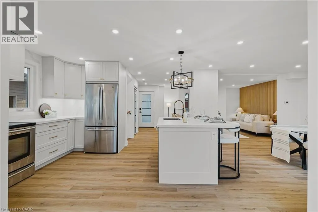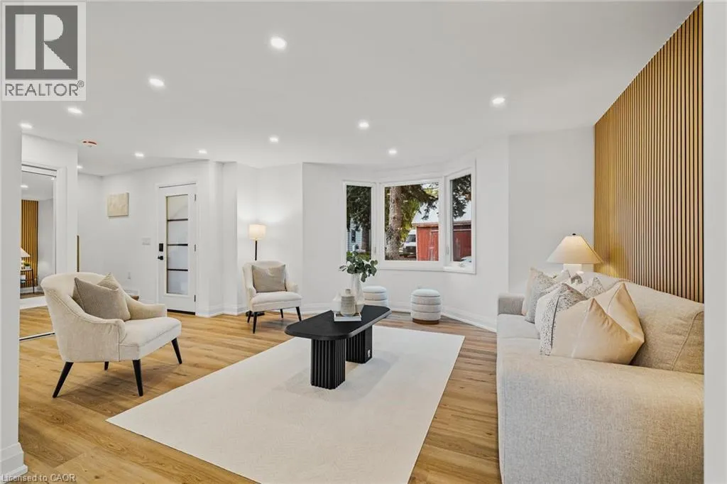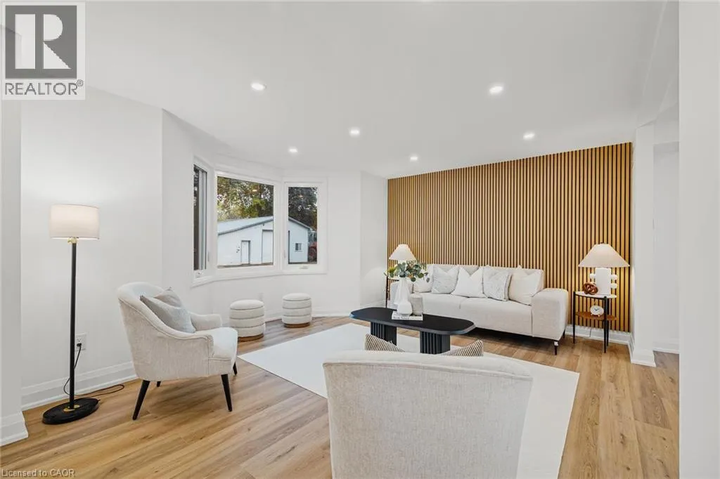 Follow Woolwich St S to Scheifele Pl A restoration of one of Breslau's original homes, this property has features and charm that sets it apart. Professionally renovated, this 3 bed, 3 bath is loaded with high end, modern design both inside and out. Make your entrance into the sunroom which is the perfect entry way/mud room. Open concept living, the living room features bay windows, a dining room and a stunning kitchen with custom and high end design. This kitchen features an island with a breakfast bar, quartz for both the counters and backsplash, a beverage bar, and a sliding patio door leading out the balcony, perfect for BBQ. Powder room on the main floor. Upstairs features 3 bedrooms and a luxury designed bathroom. The door leading to the roof off the primary bedroom leaves possibility to create a private balcony. The second floor luxury bathroom features heated floors, a curbless shower and a soaker tub with a LED mirror and under-cabinet lighting. The basement is fully finished giving you a large Rec room and a 3pc bathroom. The laundry room has been finished for comfort and maximized storage. The exterior features an interlock pathway from the driveway to backyard. Not one but 2 garages with new roofs on both as well as a shed in the backyard. NEW Furnace & NEW windows everywhere. Multi-Use Zoning. This home was brought back to life and redesigned to maximize functionality in one of the most desired areas to live. The perfect location to live in quiet but still close to highways for commuting. Within minutes to Waterloo, Kitchener, Cambridge and Guelph, school nearby, library, parks & more. A perfect home to raise a family. Properties like these don't hit the market often. Book your showing today! (id:27476)
