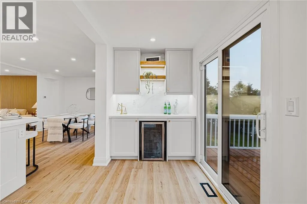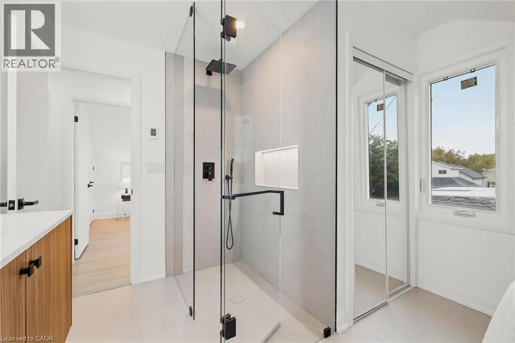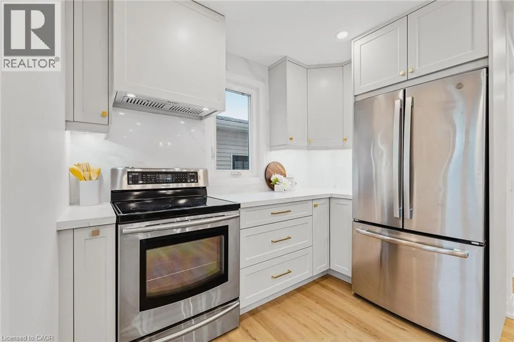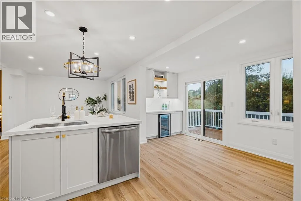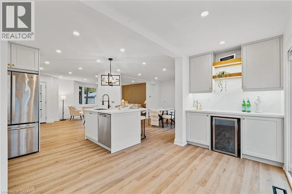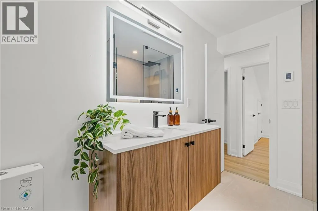 Follow Woolwich St S to Scheifele Pl A restoration of one of Breslau's original homes, this property has features and charm that sets it apart. Professionally renovated, this 3 bed, 3 bath is loaded with high end, modern design both inside and out. Make your entrance into the sunroom which is the perfect entry way/mud room. Open concept living, the living room features bay windows, a dining room and a stunning kitchen with custom and high end design. This kitchen features an island with a breakfast bar, quartz for both the counters and backsplash, a beverage bar, and a sliding patio door leading out the balcony, perfect for BBQ. Powder room on the main floor. Upstairs features 3 bedrooms and a luxury designed bathroom. The door leading to the roof off the primary bedroom leaves possibility to create a private balcony. The second floor luxury bathroom features heated floors, a curbless shower and a soaker tub with a LED mirror and under-cabinet lighting. The basement is fully finished giving you a large Rec room and a 3pc bathroom. The laundry room has been finished for comfort and maximized storage. The exterior features an interlock pathway from the driveway to backyard. Not one but 2 garages with new roofs on both as well as a shed in the backyard. NEW Furnace & NEW windows everywhere. Multi-Use Zoning. This home was brought back to life and redesigned to maximize functionality in one of the most desired areas to live. The perfect location to live in quiet but still close to highways for commuting. Within minutes to Waterloo, Kitchener, Cambridge and Guelph, school nearby, library, parks & more. A perfect home to raise a family. Properties like these don't hit the market often. Book your showing today! (id:27476)
