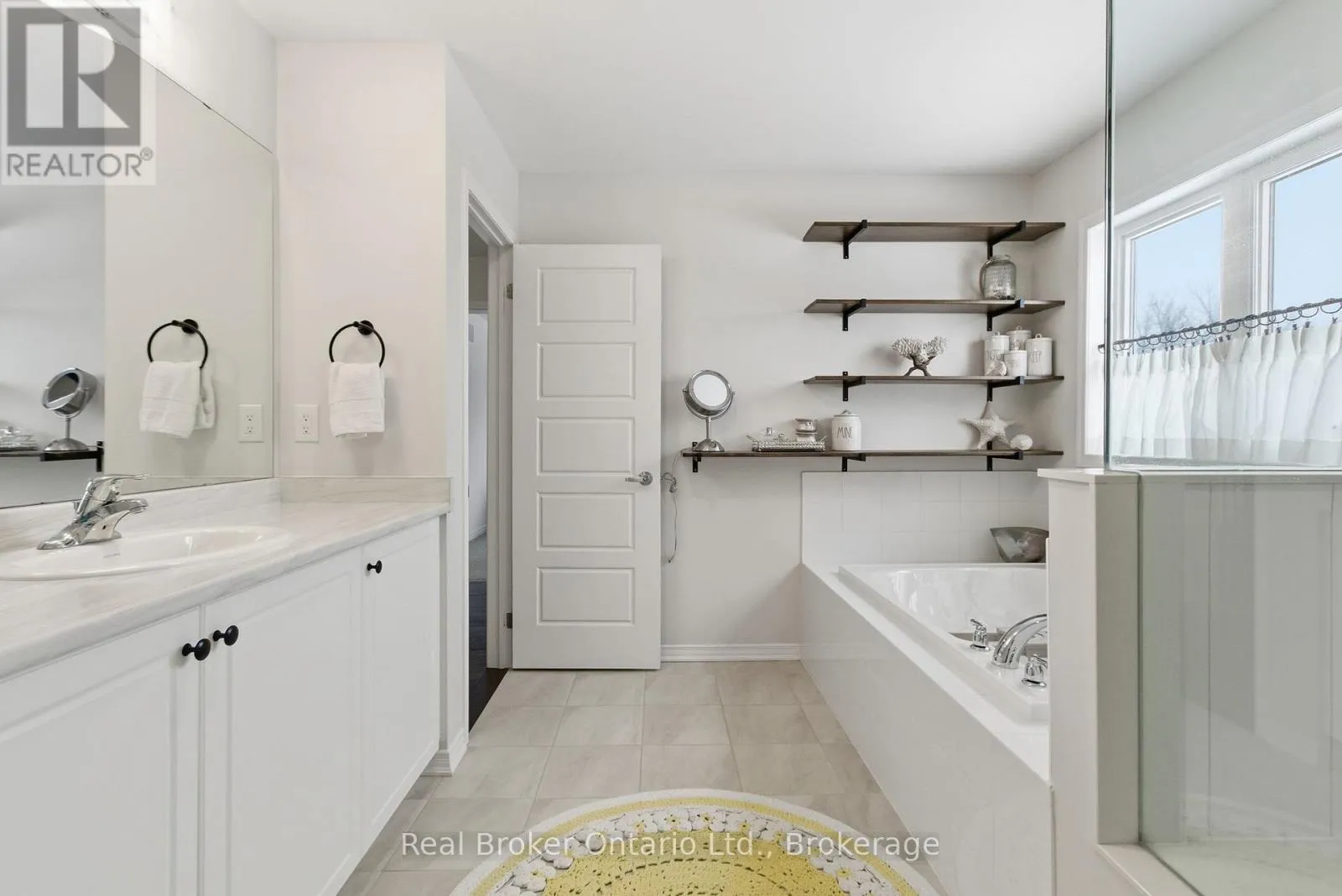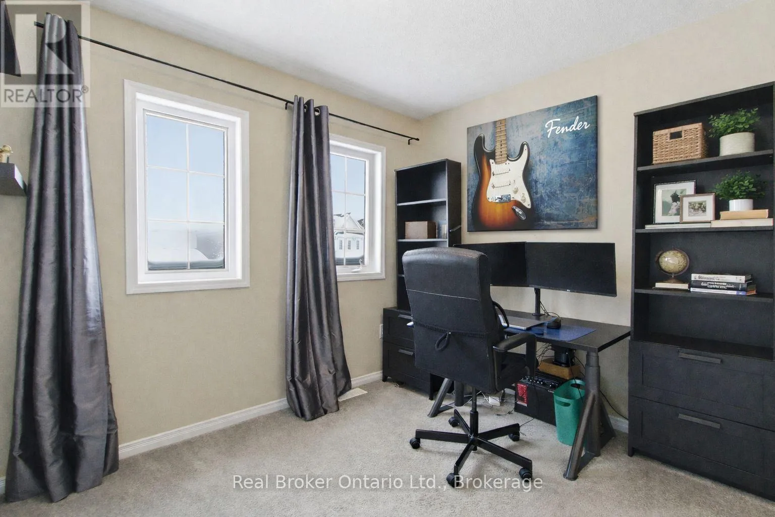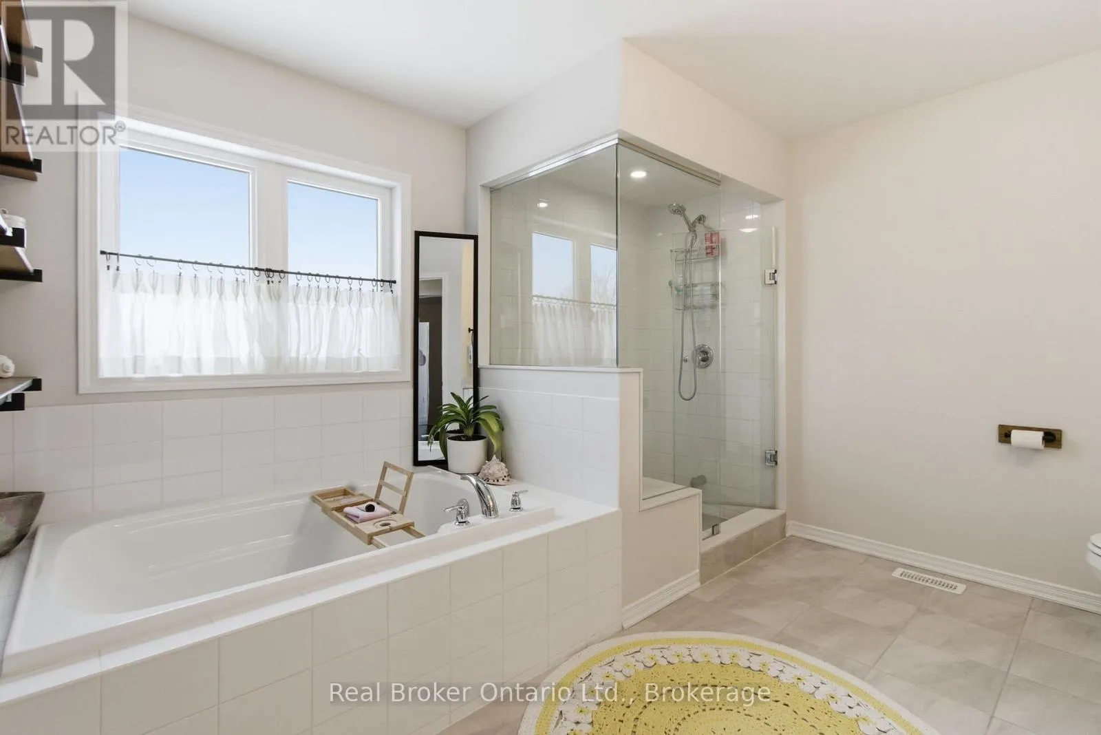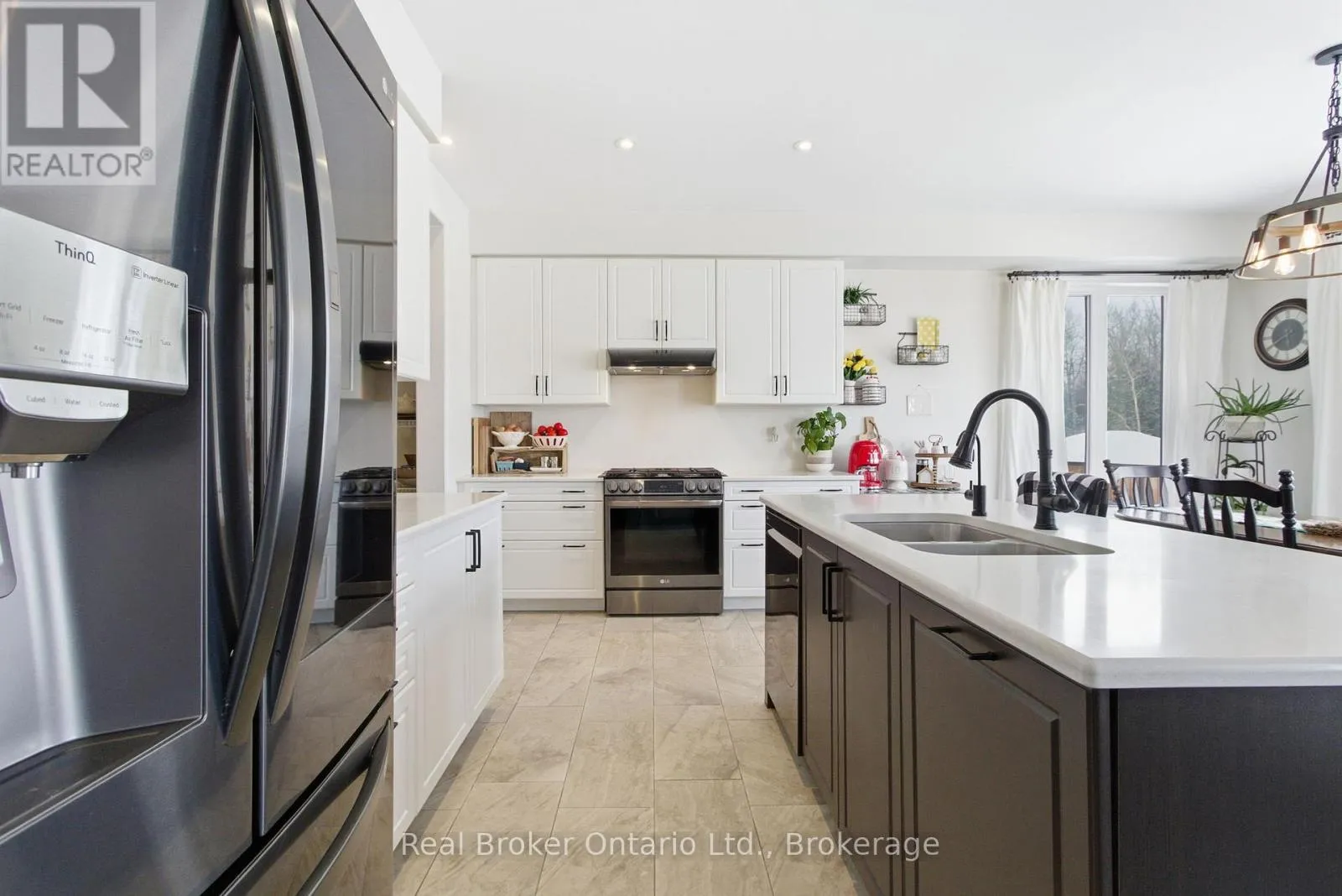 Woolwich St S and Dolman St Rare opportunity to own a stunning detached home on a premium deep lot backing onto lush, protected green space in the highly desirable community of Breslau. This move-in ready residence offers the perfect blend of modern luxury and natural serenity with no rear neighbors for ultimate privacy. The main level welcomes you with a bright, open-concept layout featuring gleaming hardwood floors, contemporary pot lighting, and a designer kitchen that is truly the heart of the home. Boasting crisp white cabinetry, a large contrast island with breakfast seating, premium quartz countertops, and high-end stainless steel appliances, this space is as functional as it is beautiful. The transition from the dining area to the living room is seamless, with oversized windows framing scenic views of the woods behind. Follow the hardwood staircase to the second floor where you will find a highly convenient laundry room and a primary retreat that feels like a private sanctuary, complete with a walk-in closet and a spa-inspired 4-piece ensuite featuring a deep soaker tub and glass-enclosed shower. The upper level features plush carpeting in the bedrooms for added warmth and comfort, creating the perfect cozy retreat for the whole family. Step outside to your private outdoor oasis, where the extra-deep lot features a custom stone patio and a wood-burning fire pit-the ultimate spot for cozy evenings under the stars overlooking the quiet forest. Centrally located for an easy commute to Kitchener, Waterloo, and Guelph, while being steps away from local trails and top-tier schools. Experience the peace of nature without sacrificing city convenience. Your private retreat awaits! (id:27476)