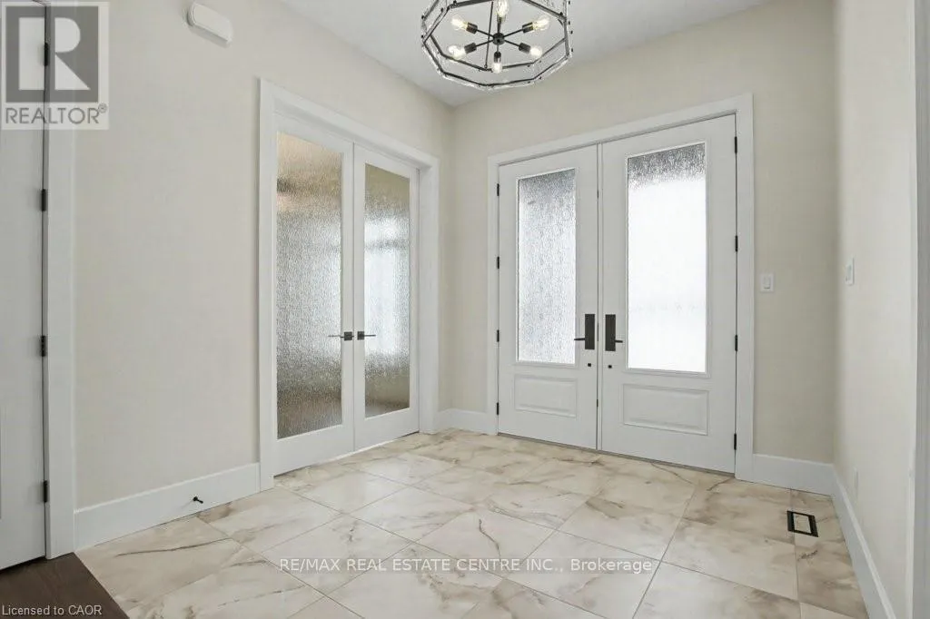 Cross Streets: Maple Street. ** Directions: Herrgott, to Maple, to Albert. Welcome to this newly built custom home offering 2,375 sq ft of thoughtfully designed living space in the charming community of St. Clements, just minutes from Waterloo. This home features 2 bedrooms plus a den, with the den easily functioning as a third bedroom or home office. The open-concept layout is enhanced by 10'4-foot ceilings, with 9-foot primary bathroom ceilings, 8-foot doors, abundant natural light, and pot lights throughout, creating a bright and modern atmosphere. The custom kitchen is a focal point of the home, showcasing a tutor frame design, stone countertops and backsplash, and quality craftsmanship. From the kitchen, enjoy views of the private backyard, lined with mature trees and fencing. Step outside to the covered deck, ideal for outdoor living and entertaining. The home includes a full basement with the floor spray-foamed and roughed-in for in-floor heating, along with direct stair access from the garage. A rare offering, the property boasts an impressive 5-car garage with man doors to both the front and back of the home. Completing the package is a detached 21' x 34' shed featuring 13.5 foot ceilings, a 12-foot garage door, with a man door-perfect for storage, a workshop, or recreational vehicles. This exceptional custom-built home combines modern design, functional spaces, and a peaceful setting in a sought-after rural community close to city conveniences. (Photos may include virtual and AI staging. Some images have been enhanced to illustrate potential and may not reflect the property's current condition - such as landscaping) (id:27476)