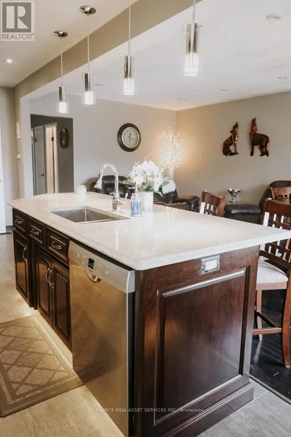 Cross Streets: Arthur Street. ** Directions: HWY 85 which is Arthur Street, in Elmira, go west onto First St W, 2.5 blocks on right hand side. past John Mahood School, and Gibson Park. Come inside this all open concept, fully finished home. A beautiful custom built kitchen with a large Island overlooking the living room. This 3 plus bedroom/office, 2 bathroom house offers a kitchen remodeled in 2016, with all solid cherry wood cabinets, and all new appliances. A pot filler, wall oven, built in microwave, 5 burner gas stove, under-cabinet lighting as well as floor lighting. Cambria quartz countertop and pantry. Two bedrooms and 1 bedroom/office upstairs, and one bedroom downstairs. Bathroom upstairs has a jet tub, while the one downstairs has a walk-in shower. The house was built in 1963, shy of a thousand square feet, fully finished both floors, property is 60 x 130 feet. High efficiency gas furnace, Central air," new in2021", Gas fireplace, Roof replaced with metal, upstairs windows all updated, Central vac system, Security system with monitored smoke alarms. Hydro upgraded to 200 Amp service. Insulated shop, back end of garage, with 60 Amp service, and furnace. One car plus garage, plus 4 car driveway, with parking beside house for large RV or Boat. The backyard has a covered lower patio, with a upper deck, and sunken hot tub, a relaxing pond, with waterfall, 2 sheds and a fire pit. Close to all schools and park. *For Additional Property Details Click The Brochure Icon Below* (id:27476)