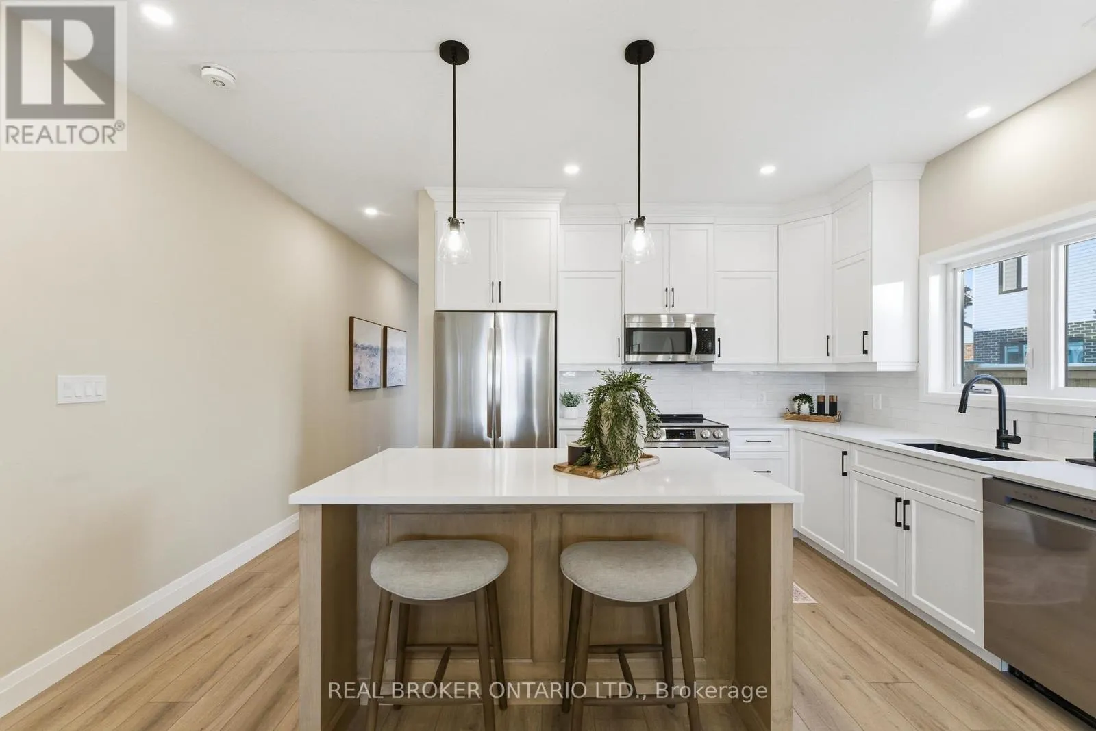 Cross Streets: TIMBER TRAIL & WEYMOUTH. ** Directions: Timber Trail to Woodberry & Entrance is between 137 & 143 Woodberry Cres, Elmira. Welcome to Pine Ridge Crossing, where modern bungalow living meets exceptional craftsmanship in the heart of Elmira's desirable South Parkwood subdivision. These thoughtfully designed homes feature high-quality finishes, including 9-foot ceilings, large windows, and a warm, open-concept main floor anchored by a kitchen that showcases quartz countertops, soft-closing drawers, and floor-to-ceiling custom cabinetry with integrated custom shelving. The main level hosts a serene primary suite with a private ensuite, a versatile second bedroom, main-floor laundry, and an electric fireplace, all leading to a covered porch with peaceful views of the pond. For those seeking extra space, Units 18-23 come with fully finished basements that include an additional bedroom, bathroom, and living area, while Units 26-29 offer the flexibility to finish the basement to your exact specifications, adding the same extra bedroom, bathroom, and living space options. Residents enjoy a truly maintenance-free lifestyle with professional snow removal and landscaping covered, and as a special incentive, the builder is paying all common element fees until January 1, 2027. Whether you choose a move-in-ready design or personalize your space through our curated selection packages, you'll enjoy a quiet small-town feel just 10 minutes from the city; we invite you to experience the quality firsthand by visiting our Model Home at Unit 17, open Thursdays from 4-7 pm and Saturdays from 10 am-1 pm. (id:27476)