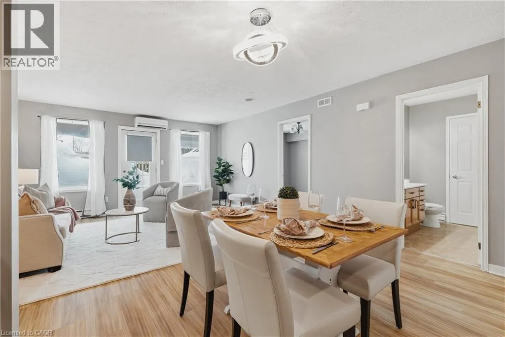 Follow Howick st to Ann St, turn west and follow to the end. Welcome to 10-1028 Ann Street in the quiet village of Wroxeter, located in the Township of Howick, Huron County. This charming two-bedroom, one-bath condo townhouse offers comfortable, one-floor living in a peaceful rural setting, ideal for retirees, first-time buyers, or snowbirds seeking a low-maintenance lifestyle. Thoughtfully designed with an open-concept layout, the living, dining, and kitchen areas flow seamlessly together, creating a bright and inviting space for everyday living and entertaining. Freshly painted with new flooring (2026), the home feels clean, modern, and move-in ready. Year-round comfort is provided by an efficient electric heat pump with air conditioning, and the convenience of in-suite laundry adds to the homeâs practical appeal. Enjoy your private outdoor space, perfect for relaxing and taking in the serene surroundings. The attached garage provides secure parking and additional storage. Condo fees include lawn care and snow removal, allowing you to enjoy a worry-free lifestyle without the upkeep. Nestled on a quiet street in a welcoming small-town community, this property offers the charm of rural living while remaining within reasonable driving distance to surrounding towns and amenities. If youâre looking for comfort, simplicity, and peace of mind, this delightful condo is ready to welcome you home. (id:27476)