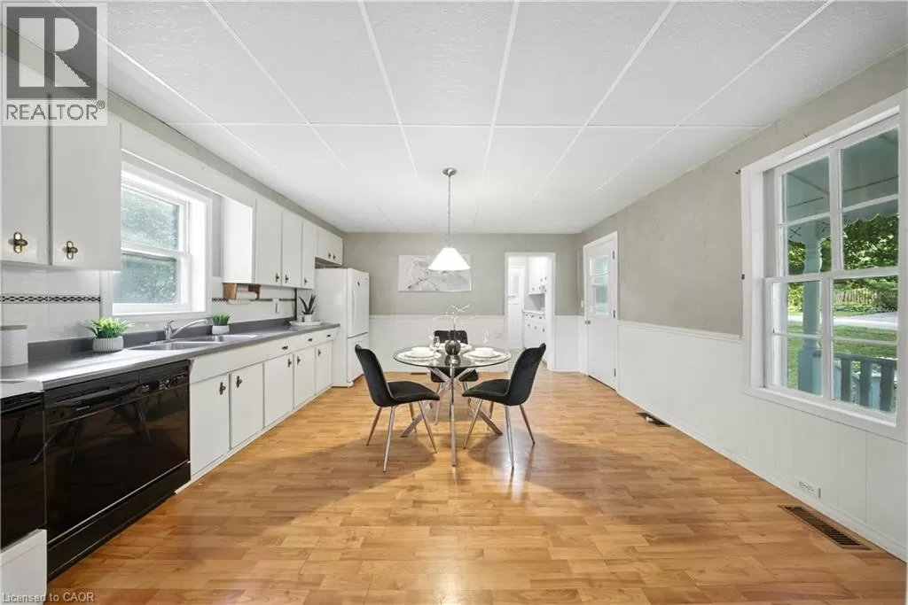 On Gibson ST Charming 1890 Century Home on an Oversized Corner Lot in Wroxeter! This 3-bedroom, 2-bathroom home offers timeless character with original woodwork and architectural details across 1¾ stories. The main floor is practical and well-laid out for daily living, consisting of a family room, living room, dining room, kitchen, and laundry while the upper level offers flexible space for bedrooms, an office, or more. Sitting on 0.32-acre lot (13,928 sq ft), this property boasts mature landscaping, endless potential for gardens or outdoor living, and a detached double car garage heated by a wood stoveâperfect for a workshop or year-round projects. A rare chance to own a piece of local history with room to growâupdate to your taste while preserving its original charm! (id:27476)