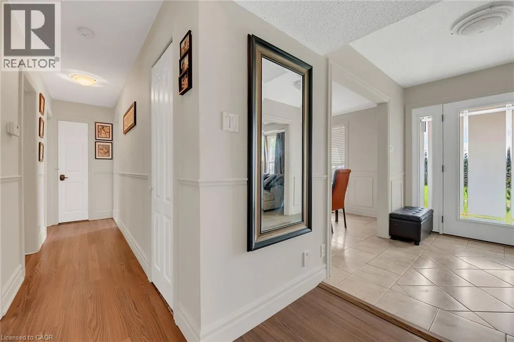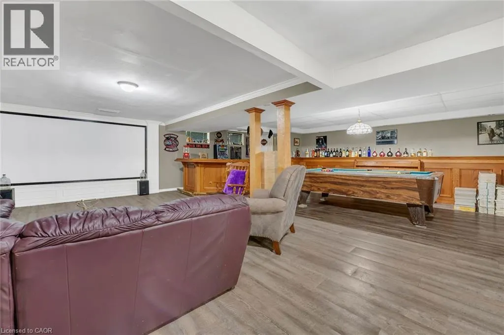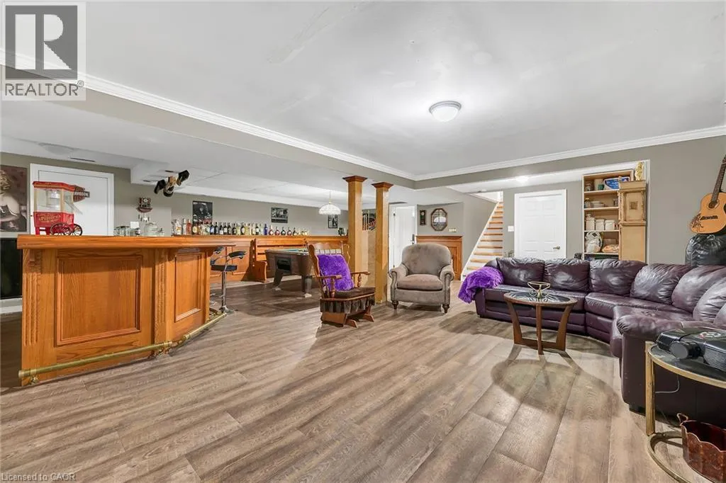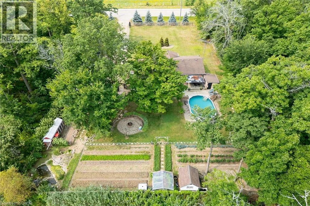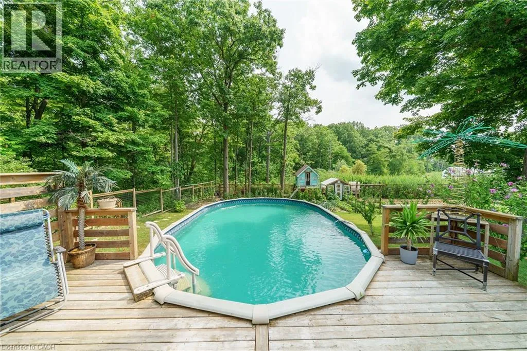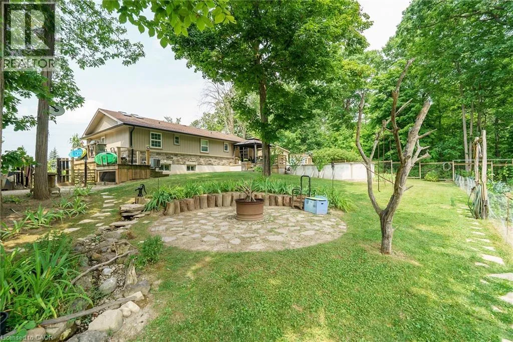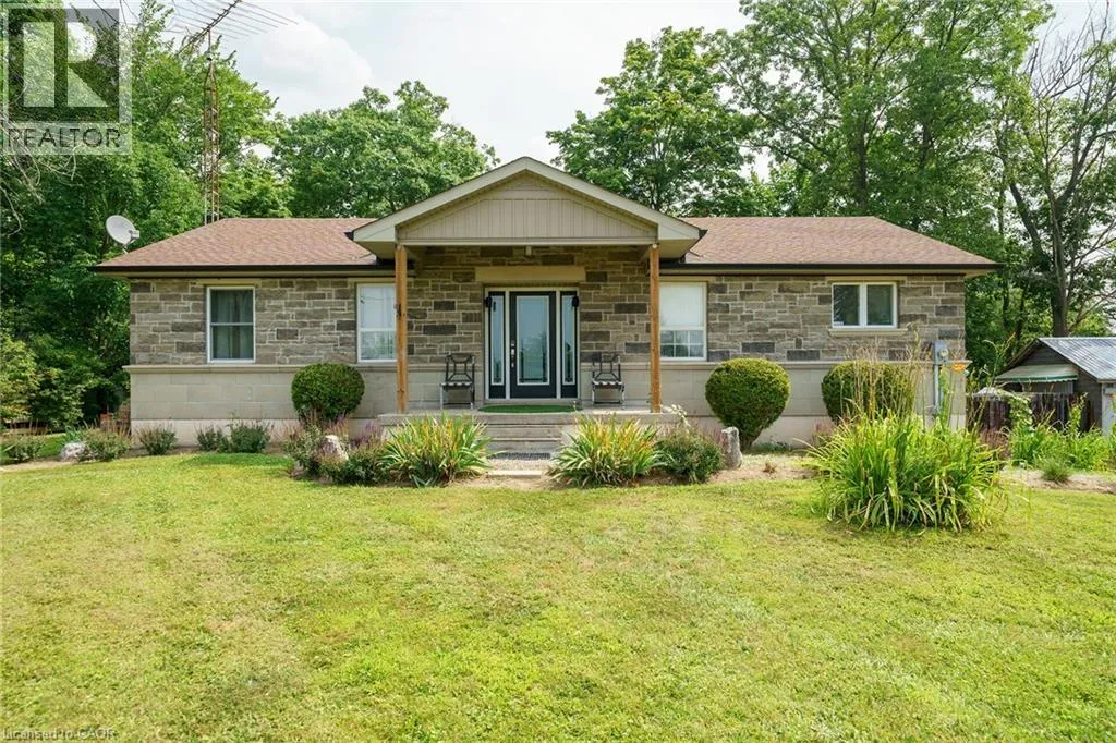 Highway 56 south from Hamilton through Binbrook and through Empire Corners, property on the left side of Highway 56 Experience executive style Rural Seclusion here at 920 Hwy 56 offering prime south of Binbrook location - less than 20 min commute to Hamilton/Stoney Creek Mountain amenities - situated on the southern outskirts of Empire Corners - a quaint Haldimand County Hamlet - abutting an 18 hole golf course with an upscale enclave of Estate homes nearby. Naturally hidden behind majestic pines, hardwoods, mature foliage & native grasses is an extensively renovated 1980 built bungalow positioned magically on 0.72 acre lot incs resort style back yard ftrs 28x18 on-ground swimming pool w/attractive pool shed extending to the organic Gardener's âDreamâ back yard veggie gardens. Over 420sf of tiered decking compliments the stylish vertical vinyl sided exterior boasting premium stone accent skirting (new in 2015) elevating curb appeal to the next level. Grand front foyer introduces 1385sf of tastefully appointed living area ftrs updated modern white kitchen cabinetry, convenient peninsula, WO to side deck & 2 skylights ensuring natural brightness. Design continues to comfortable living room enjoying the ambience of cozy gas fireplace set in floor to ceiling mantel, separate formal dining room, 4pc main bath, elegant primary bedroom boasting patio door deck to pool WO, corner fireplace (AS IS), walk-in closet & 3pc en-suite - completed w/2 roomy bedrooms. Impressive family room highlights 1464sf in-law potential lower level augmented w/wainscot walls, 120 inch wall projector screen & gorgeous custom oak bar. Remaining area incs 2pc bath, multi-purpose room, utility room, cold room & versatile bedroom w/kitchenette possibilities incs on-grade WO. Extras - 16x20 shop/garage w/hydro & metal roof, 10x10 utility shed, 8x8 bunkie, roof-2006, AC-2025, n/g furnace, vinyl windows, 5000g cistern, septic, large gated driveway, flag stone fire-pit, water feature & more! Itâs Time To Get âCountryfiedâ (id:27476)