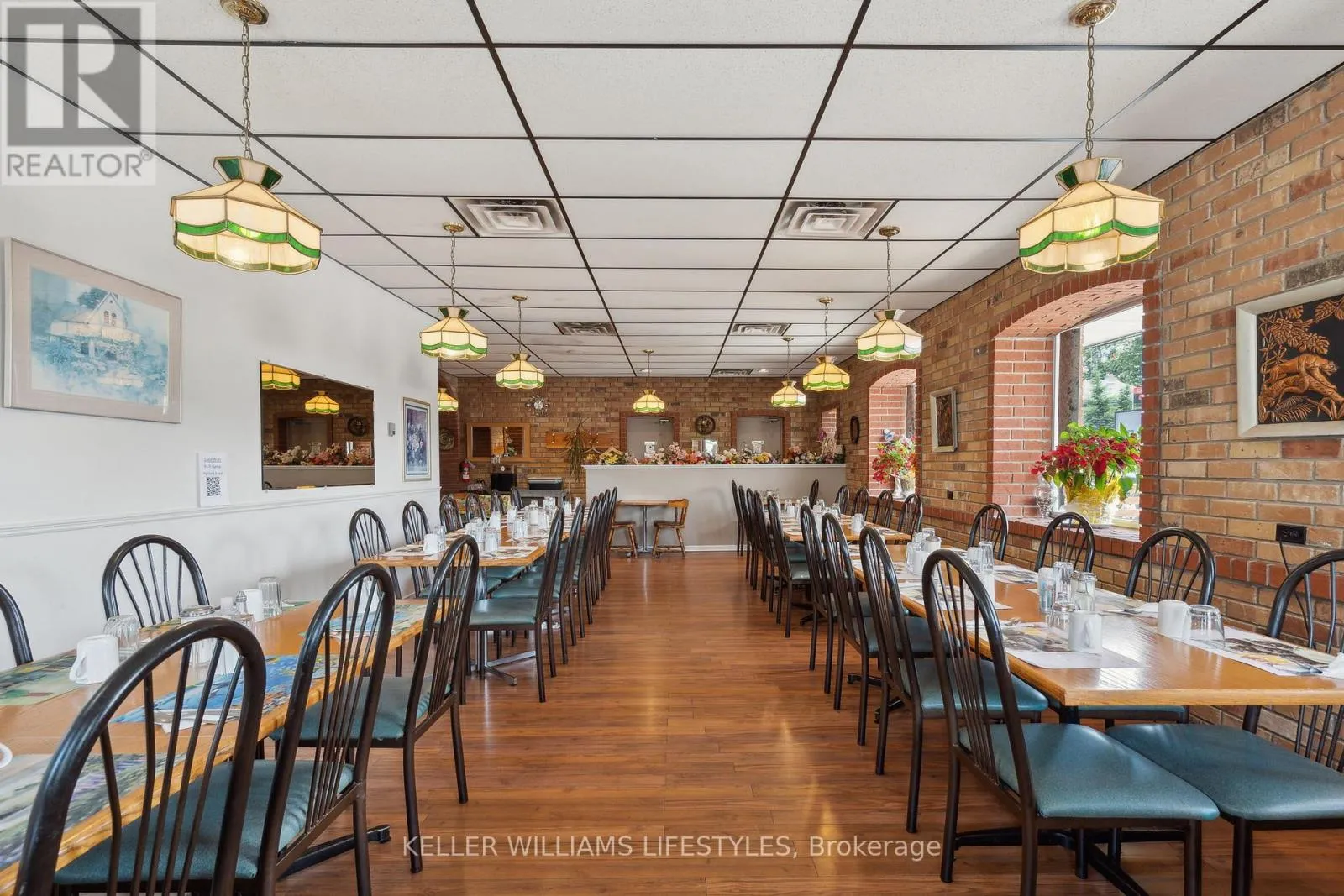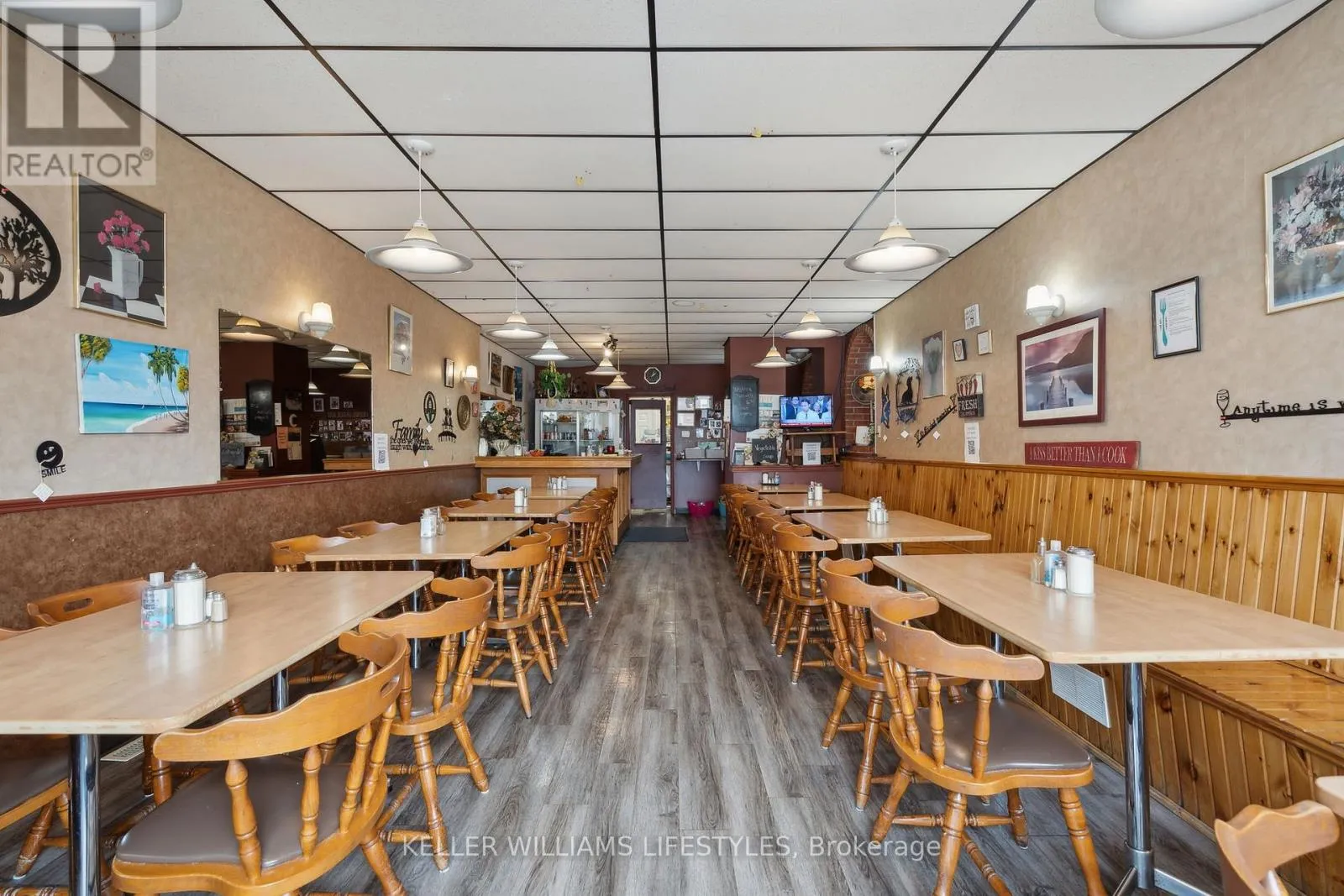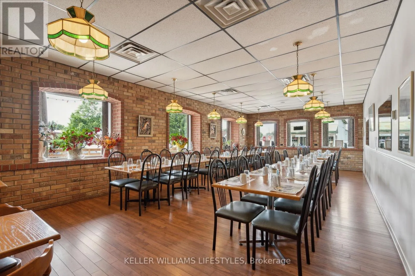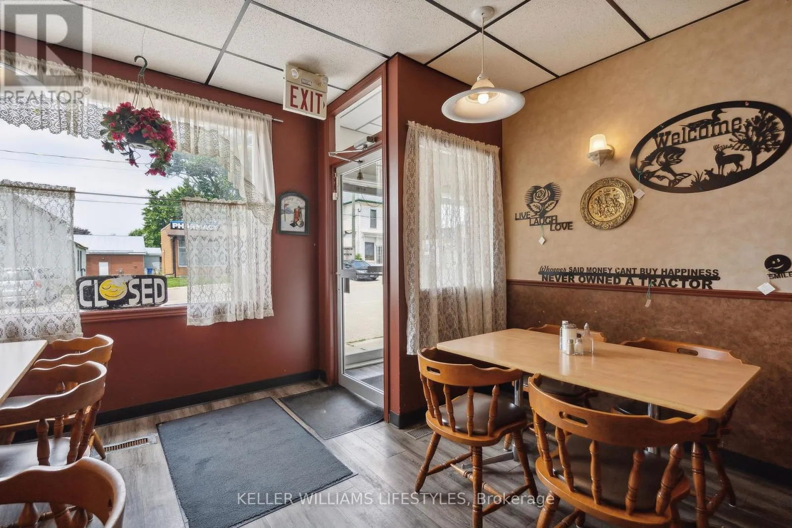 Cross Streets: Huron Street & Commissioner Street. ** Directions: North on 37th line from Dundas Street. On the corner of Huron Street and Commissioner Street. Exceptional Commercial Opportunity in Embro! Seize the chance to own the only restaurant in the village with this prime corner property on Commissioner Street. This well-loved, family-style establishment, seating up to 98 guests, enjoys high visibility and ample parking, making it a favourite for locals and a magnet for passing traffic. Conveniently located near London, Ingersoll, Woodstock, and Stratford, its perfectly positioned to attract a broad customer base. The restaurant comes fully equipped with all the necessary tools and appliances for a thriving business, ensuring a smooth transition for new ownership. It also features a seasonal ice cream shop and a newer outdoor patio! The property also includes a vacant 2-bedroom, 1-bathroom apartment on the upper level, ideal for immediate rental or personal use. Additionally, theres a second framed unit upstairs that can be converted into another apartment or expanded for a larger living space. This is an ideal investment for those looking to run a successful community restaurant while benefiting from residential rental income. The perfect opportunity for an ambitious restauranteur ready to grow a thriving business or an investor seeking a valuable asset, this listing offers a unique opportunity to tap into both commercial and residential markets in a vibrant, small-town setting. (id:27476)