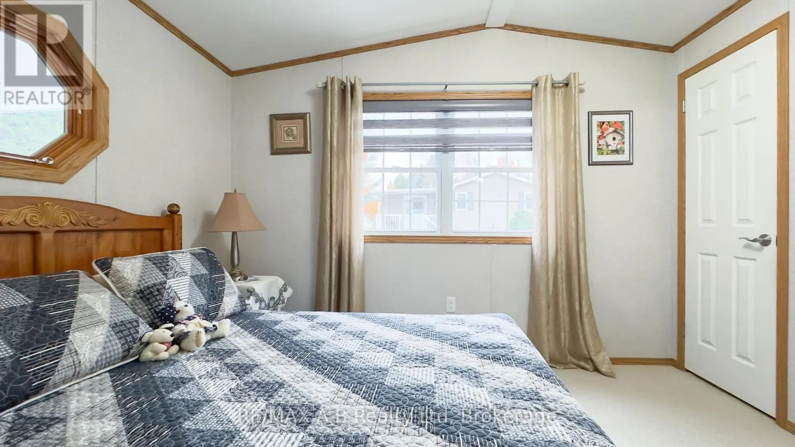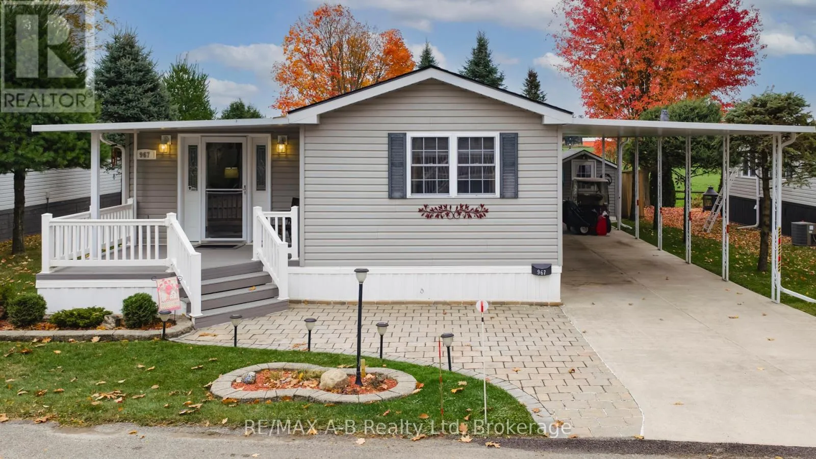 Cross Streets: Road 92/ 31st Line. ** Directions: From road 92 turn south onto 31st line, property located on west side of road. Welcome to this immaculately maintained 2-bedroom, 2-bathroom home with a spacious den, located in the highly desirable Happy Hills Retirement Resort. This charming residence offers comfort, convenience, and resort-style amenities. Step inside to discover a generous living area, and a well-appointed kitchen and dining room, along with in-suite laundry. The den provides excellent flexibility-perfect for a home office, hobby space, or guest room. Outside, enjoy the thoughtfully designed exterior with a concrete driveway, interlocking paver walkway, composite decking, and well appointed rear deck-ideal for relaxing outdoors or welcoming guests. The carport adds both convenience and protection from the elements. Residents of Happy Hills enjoy an incredible lifestyle with access to a recreation hall, indoor heated pool, community events, on-site mail delivery, and secure gated entry-all in a friendly, well-kept neighborhood atmosphere. Don't miss this opportunity to join one of the area's most sought-after retirement communities. This home is move-in ready and waiting for you to make it your own! (id:27476)