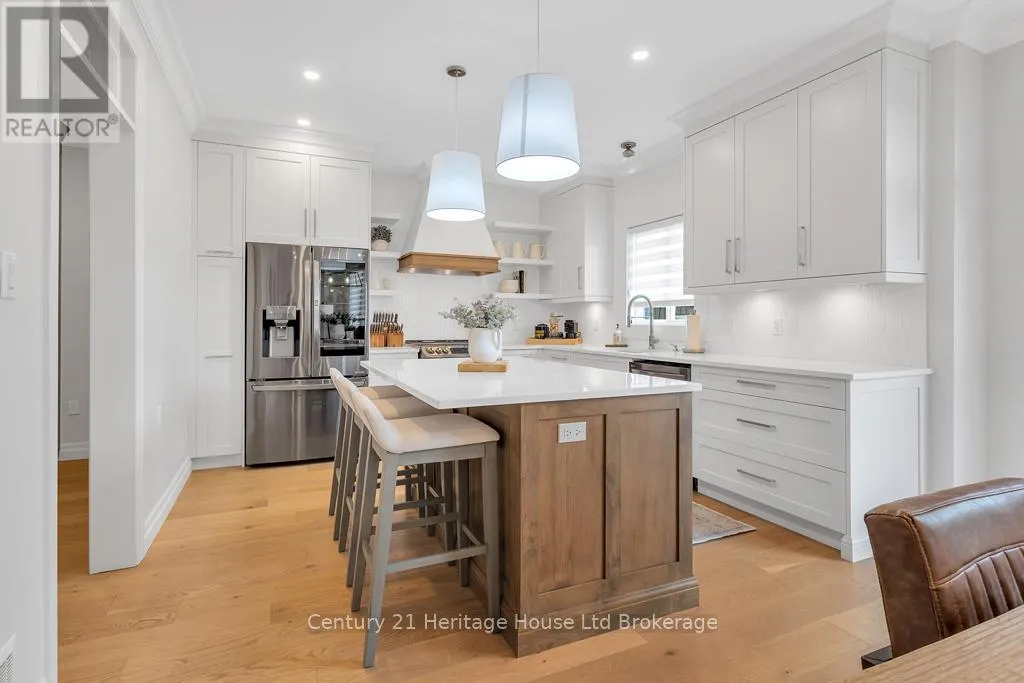 Cross Streets: Boyd Blvd. ** Directions: North side of Thamesford, in Thames Springs Subdivision. Renovated, Elevated and Upgraded to this immaculate 5-Bedroom house on Quiet Crescent - Professionally designed and recreated in 2020 - you will not be disappointed in this one of a kind luxury property. This one-owner, beautifully maintained 4-bathroom, 3 garage home offers over 2,500 sq ft of thoughtfully designed living space, nestled on a peaceful street in a sought-after neighbourhood of Thames Springs Subdivision. Step inside to a stunning main floor completely renovated by Jillian Summers of Upstaging Homes - designer of the Dream Home. Elegant finishes, custom touches, and timeless style create a space that's both luxurious and livable. Upstairs, you'll find three generously sized bedrooms, including a primary retreat/master with custom desk and built in shelves and a seperate dressing room (or 4th bedroom) outfitted with custom built-ins - your dream closet awaits. The fully finished lower level is a versatile space for home gym, teen retreat, or media room. It includes a large open area, bedroom, and full bathroom. Standout features include: Professionally installed security system with door chimes, New garage doors and system (2024), Epoxy-coated garage floor, garage is equipped for two electric car chargers, Main floor laundry hookups, 6 person Hot tub, pergola with TV hookup, garden shed, concrete impressions - pathways, large patio and driveway (approx. $20,000). Complete Renos include Butler pantry, Casey's Kitchen, quartz counters, hardwood floors, crown moldings, built-ins, master bathroom etc. etc. (approx. $200,000). This is a rare opportunity to own a meticulously cared for home with designer upgrades, modern amenities, and room for your family to grow and thrive in small town Thamesford! (id:27476)
