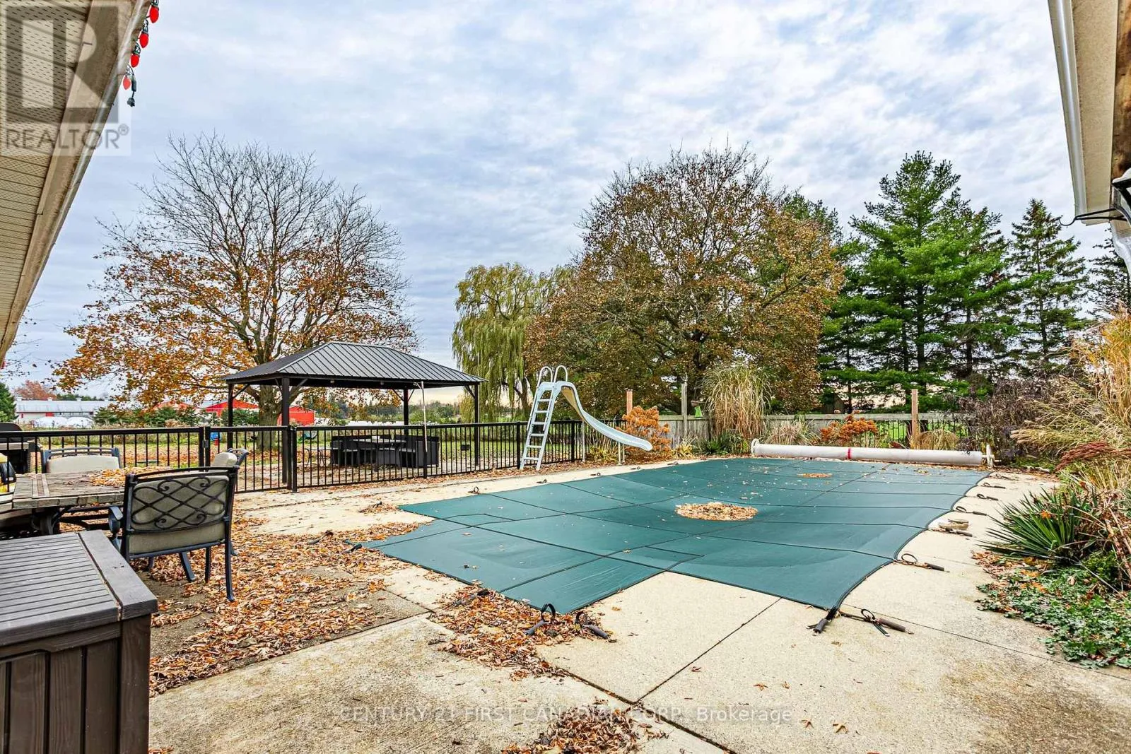 Cross Streets: Rd 84. ** Directions: turn north off of Rd 84, house will be on the left (west) side of the road just north of Kintore. Welcome to country living! This 1768 sq ft bungalow sits on 1.5 acres with a heated in-ground pool, separate fenced area for kids and dogs to play plus room for a large future shop or plot for the avid gardener. Main floor has 3 BR's, 1.5 bath, huge living room with room for formal dining room, large eat-in kitchen with island and updated cupboards with patio doors to the fenced area for easy outside dog access. Main floor laundry with laundry tub right off the pool and garage makes laundry a breeze and the 2 pc bath is easy access right off the pool area. Backyard has a gas bbq hook up, stell gazebo, firepit area plus a pergola at the rear of the property- perfect to just enjoy nature or sit quietly and read a book while sipping your coffee or tea. Basement offers an in-law suite with door access at the top of the stairs straight outside or into the garage off the mud room- just add a door into the kitchen for extra privacy. Basement is fully finished with a family room, 2 BR's, 4 pc bath and eat-in kitchen and separate access to the storage rooms at the bottom of the stairs. Plenty of updates: 200 amp breaker panel, furnace 20', well pump 21', pool pump 23', pool cover 25', pool heater 23', pool fence 24', garage heater 22', fenced play area 19', kitchen cupboards 20', lower suite 22', sump pumps replaced and raised lid access to the septic tanks added too. Property is located just north of Kintore and is central to London, St. Mary's, Stratford, Woodstock and Ingersoll. Community offers local church, AJ Baker Public School and a quick drive to Embro Conservation area on Rd 84 or Fanshawe Conservation area just west of Thorndale. (id:27476)