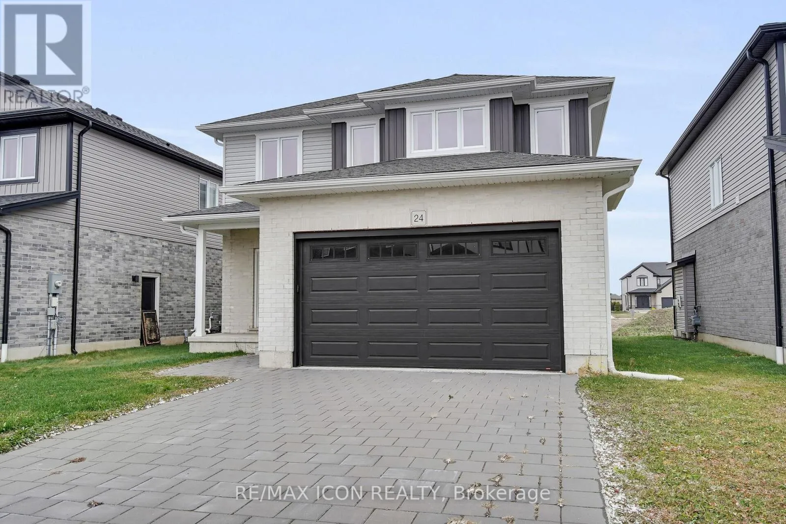 Cross Streets: Ferris Blvd & 15 Line. ** Directions: North on 15 Line, West on Ferris Blvd, South on Rosina Lane. Welcome to 24 Rosina Lane in Thamesford! This beautiful open-concept family home offers rich hardwood floors, large windows for tons of natural light, and main-floor laundry. The spacious eat-in kitchen features granite countertops and an island, opening to a warm great room with a custom gas fireplace. Upstairs you'll find four generous bedrooms, including a primary suite with a soaker-tub ensuite. Enjoy the covered back porch and a 2-car garage in this wonderful family-friendly community. Move-in ready-don't miss it! (id:27476)