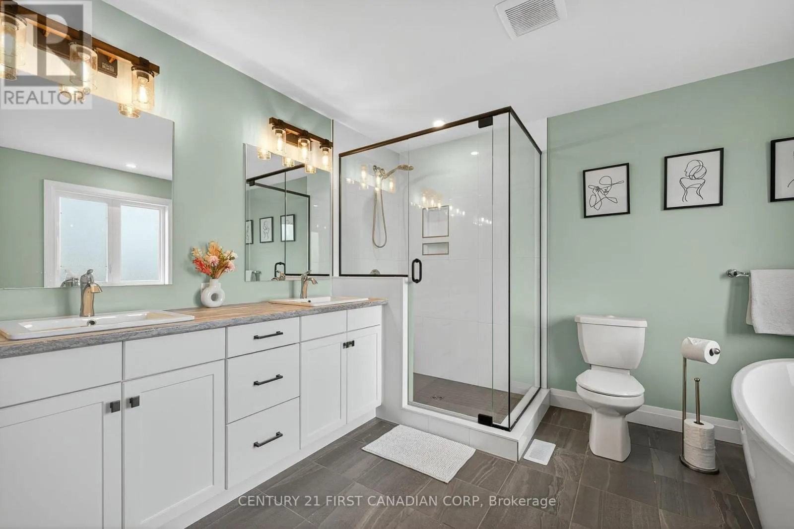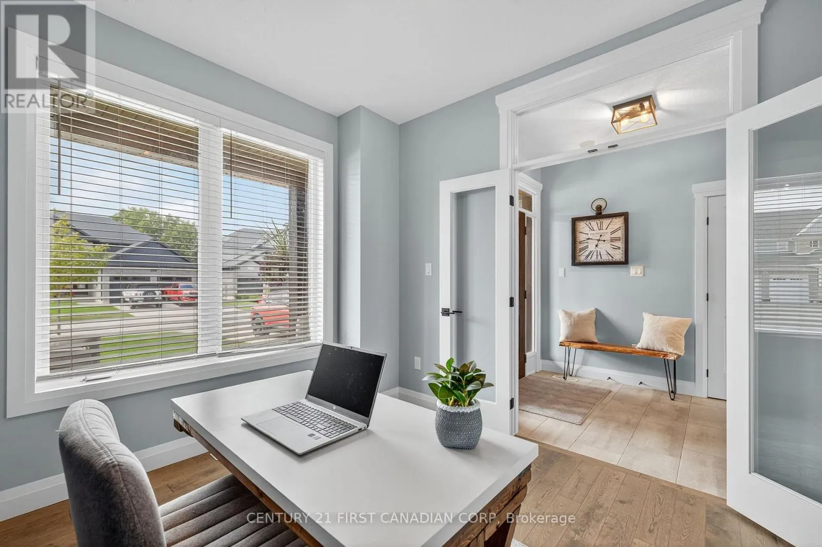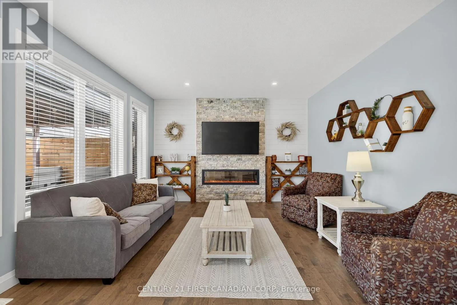 Cross Streets: Darlison Dr. ** Directions: East on Dundas St., right on 15 Line, then left on Darlison Dr. and then right on Thames Springs Cres. BETTER THAN NEW! THIS IS ONE THAT YOU HAVE BEEN WAITING FOR!! Immaculate 2 storey with great curb appeal situated on a private, premium lot in the heart of Thamesford. This 4+1 bedroom, 3.5 bathroom family home provides 2,996 sq. ft. of overflowing luxury living space. Step inside to glamorous modern farmhouse living you can feel as you enter each room. Boasting high quality executive finishes, the main level offers a layout with tremendous ease of flow. Bright, sun soaked living room features cozy electric linear fireplace finished in stone surrounded by shiplap and recessed lighting throughout. Beautifully appointed shaker style kitchen finished with Quartz countertops, valance lighting, sideboard with live edge countertop, island with breakfast bar and stainless steel appliances. Spacious main floor office with stunning feature wall. Luxury master retreat with spacious walk-in closet and lavish spa-like ensuite with soaker tub and custom glass shower. Upper level boasts oversized bedrooms complimented by generous closets, making this the perfect family home. Convenient second floor laundry room with built-in cabinetry. Fully finished lower level features expansive family room, additional bedroom, sitting area and 3 piece bathroom. Enjoy your backyard oasis complete with HEATED ABOVE GROUND SWIMMING POOL surrounded by sundeck and private concrete patio, perfect for entertaining or family gatherings. Relax on the adorable front porch, perfect for enjoying that morning cup of coffee or evening glass of wine. Located close to all amenities including shopping, restaurants, great schools, playgrounds, major highways and Cobble Hills Golf Club. Just a short 10 minute drive to London and 12 minutes to Woodstock, come experience what this tight knit community has to offer. This is your opportunity to stop thinking about small town living and finally call this tranquil setting home! (id:27476)