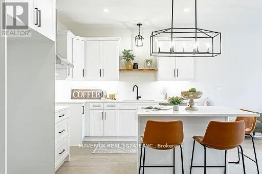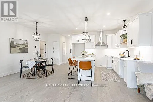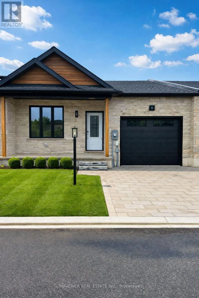 Cross Streets: Middleton St and Brock St. ** Directions: Take Hyw 2 to the heart of Thamesford, head south on Middleton toward the arena. Take you first left on Brock st and arrive home at the first lane on your right. Welcome Home to River Valley Place. Set on a quiet private road this modern bungalow delivers the ease of main floor living with thoughtful upgrades. Nine foot ceilings lift the sightlines and invite natural light, creating a spacious feel for daily life. Enjoy the peace of mind of freehold ownership paired with the convenience of a Parcel of Tied Land condo ownership over the private road. This structure keeps condo fees low at approx sixty dollars per month. The great room flows naturally between living, dining, and kitchen. Three quarter inch wide plank hardwood warms the principal spaces, while ceramic tile in high traffic and wet areas keeps maintenance easy. A tailored feature wall adds modern warmth and refined character without overpowering the room, giving the space a finished, intentional look.The kitchen blends utility and craft. Soft close drawers feel solid and quiet. Live edge open shelving adds artisan texture and everyday convenience for glassware, and greenery. Prep space is generous and clear sightlines keep everyone connected. Upgraded plumbing and layered lighting support bright task work and relaxed evenings with equal ease. Daily chores are simpler in a laundry and mudroom treated with the same care as the kitchen, where live edge shelving and cabinetry create organized, good looking storage. The primary suite is restful and practical, with soft light and sensible storage. Baths continue the theme of upgraded plumbing and lighting. Secondary bedrooms flex for guests, work, or hobbies. Step outside to a ten by twelve rear deck for morning coffee or evening grilling. The fully fenced yard offers privacy, space for pets, and low hassle care. Community comforts include an onsite mailbox and the security of a tucked away setting. Recreation is close at hand with indoor gymnasium style spaces at the nearby recreation centre and future multi use outdoor sports courts, plus quick access to Highway 2 for easy connections. (id:27476)
