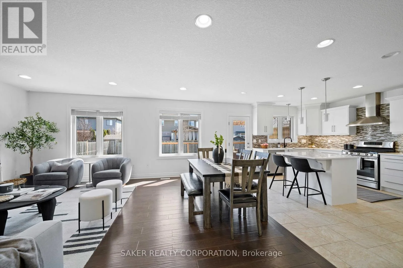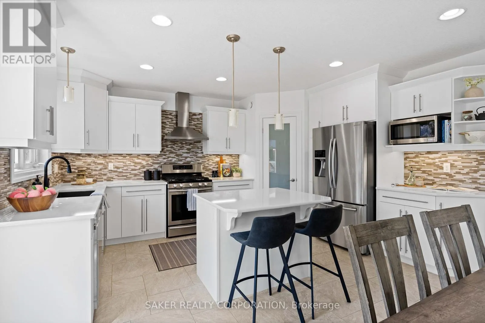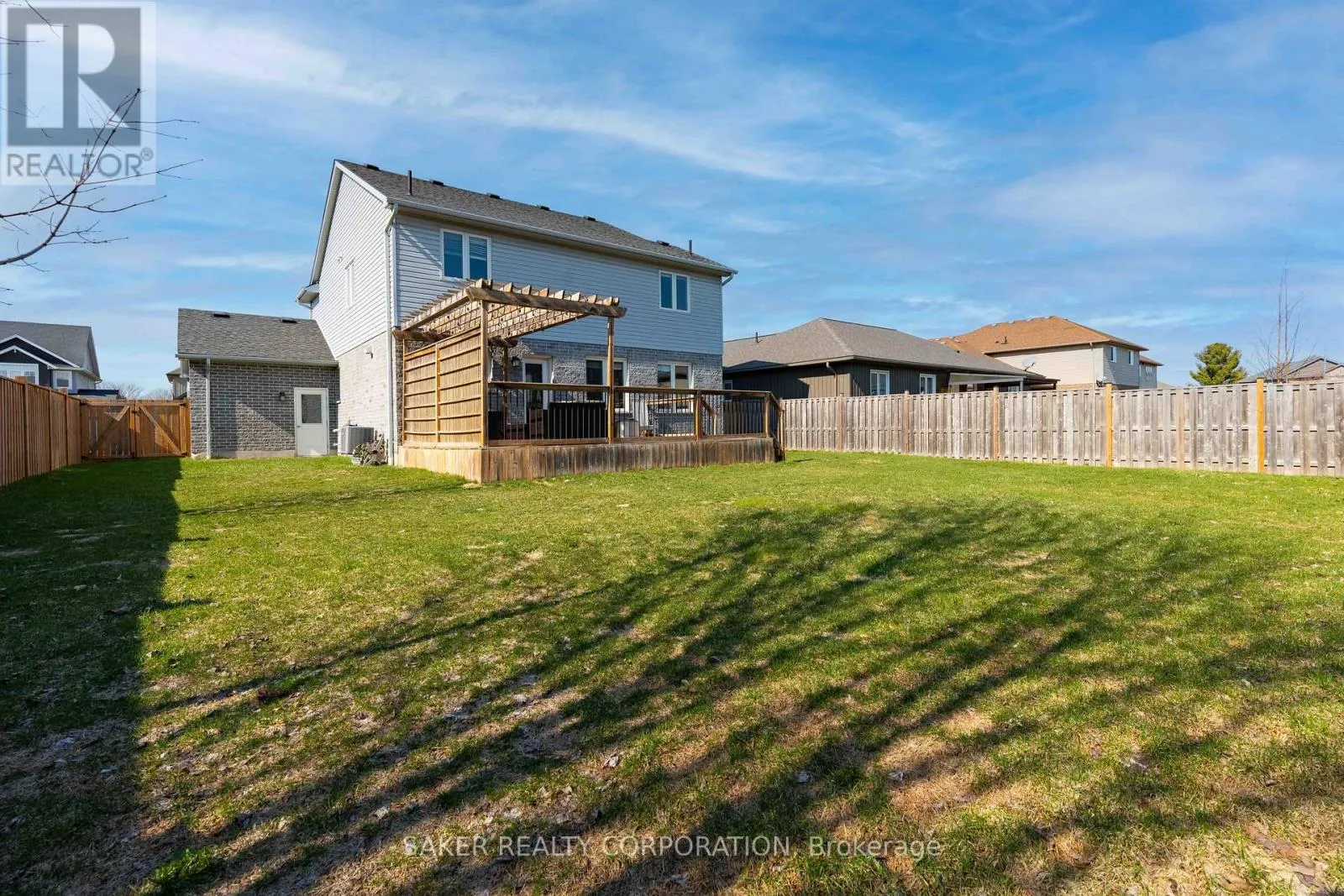 Middleston St & Dundas St The perfect family home set on a quiet crescent in the Village of Thamesford, just a 10-minute drive from London. Escape the hustle of the city and settle into a peaceful, family friendly neighbourhood. Situated on a premium 62 ft wide lot, this property offers a triple car garage, a massive concrete driveway, a fully fenced yard, and a spacious deck with a built in pergola: perfect for entertaining. Step inside and you'll immediately notice the difference. This home shows like a model home. It is bright, well maintained, and thoughtfully designed with modern, high end finishes throughout. The kitchen is a true standout, featuring crown molding, a subway tile backsplash, valance lighting, a walk-in pantry, and stunning quartz countertops with an island to entertain. The open concept kitchen and living area is completed with a cozy fireplace. The ideal space for both everyday living and hosting. Upstairs, enjoy the convenience of second floor laundry and a spacious primary retreat with vaulted and tray ceilings, dual walk-in closets, and a luxurious ensuite with a corner tub, glass shower and double sinks. Additional features include a covered front porch, a grand staircase, ceramic tile and hardwood flooring throughout most of the home, four bathrooms and a functional mudroom with direct garage access. The oversized insulated triple car garage offers incredible flexibility. Park your vehicles and toys or create the ultimate workshop/man cave. The fully finished lower level adds even more living space, complete with an additional bathroom and a room with an egress window that can easily serve as a 4th bedroom. Come see this one for yourself today! (id:27476)