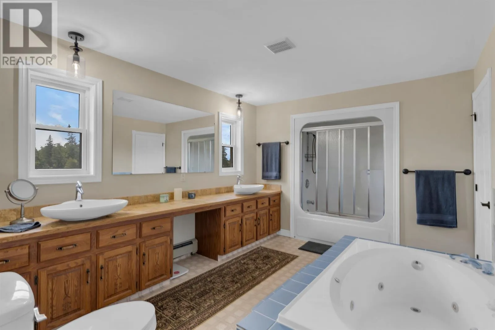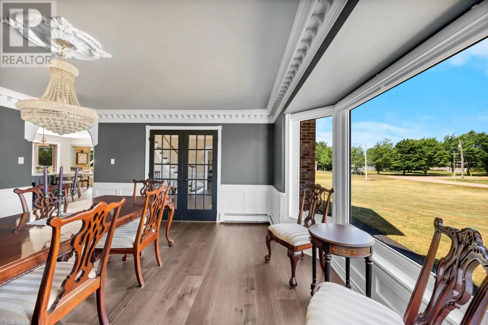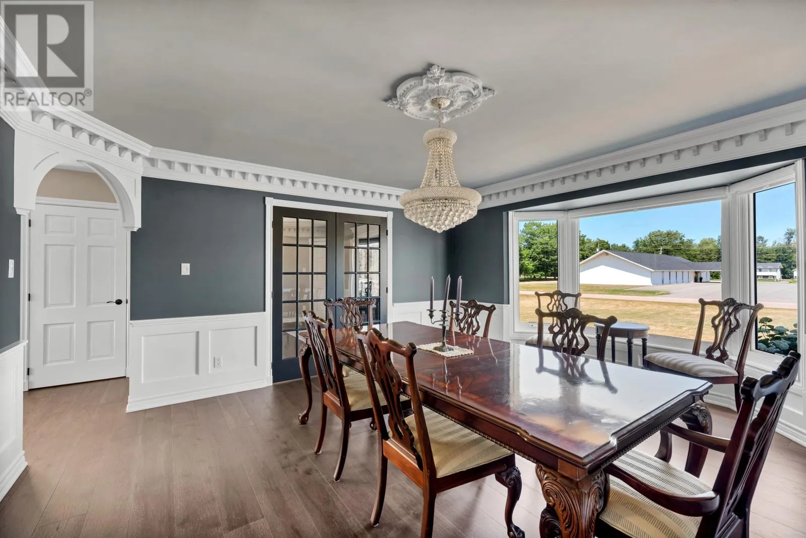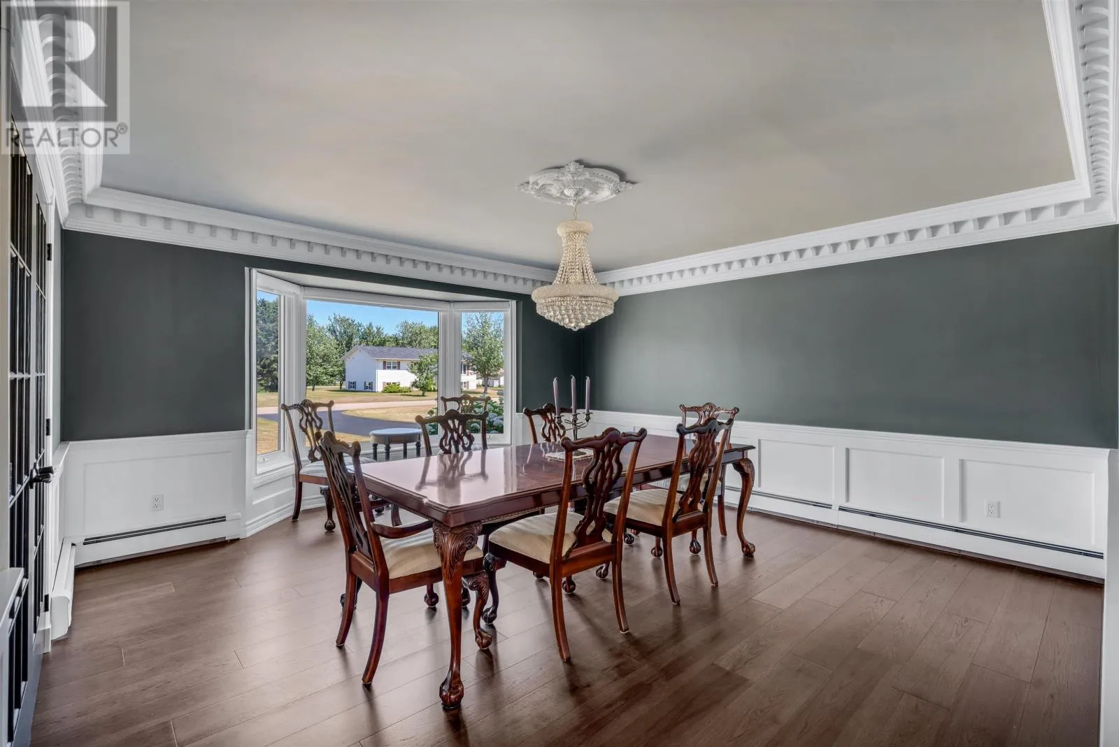 #25 on Elizabeth Drive, Alberton, off of Main Street Welcome to 25 Elizabeth Drive, Alberton - a beautifully designed executive home set on a private 1.91 acre lot. This stunning property offers refined living with luxury finishes, generous space, and exceptional privacy. Step into the grand foyer with cathedral ceilings and a sweeping staircase. The formal dining room features a bay window, elegant detailing, and a statement chandelier-perfect for entertaining. The professionally designed kitchen includes all new custom cabinetry, imported quartz countertops, a large island, and a secondary dining area with access to a private backyard deck. The main level also offers a spacious living room with a home theatre setup, a cozy family room with pellet stove, a full bathroom, and a laundry room with storage. Upstairs, the large primary suite features a walk-in closet, private sitting area, and access to the full bath. Three additional bedrooms provide ample space for family or guests. The basement includes an open gym area (equipment and flooring not included), a utility room, and direct access from the garage-ideal for a future in-law suite or guest space. The attached 4 car garage offers room for vehicles, storage, or a workshop. Surrounded by mature trees, the lot offers privacy and space to expand. Located minutes from schools, clinics, shopping, golf, and beaches-with nearby access to boating, kayaking, and more. (id:27476)
