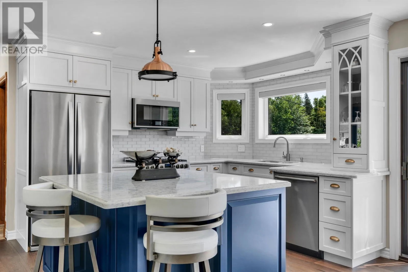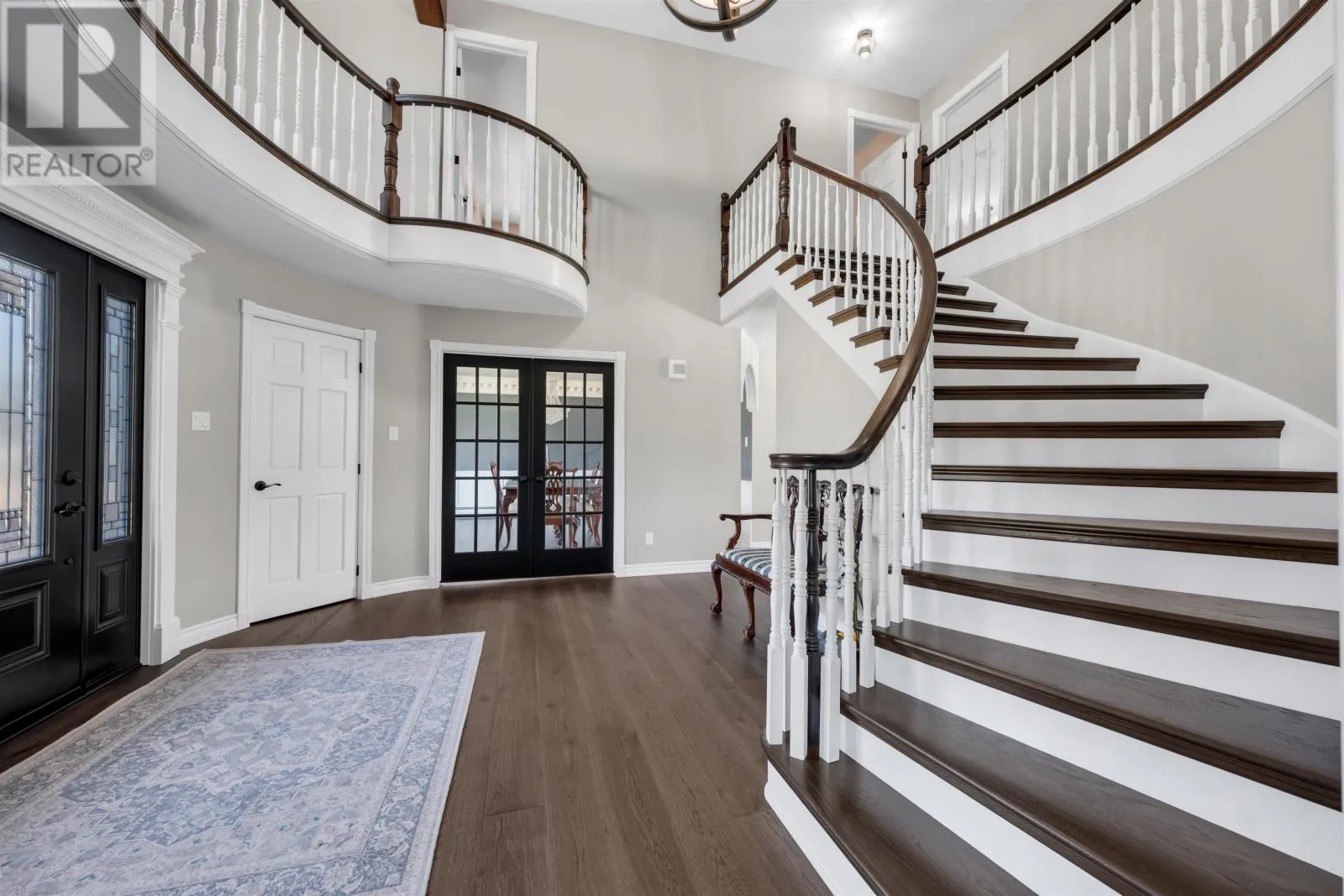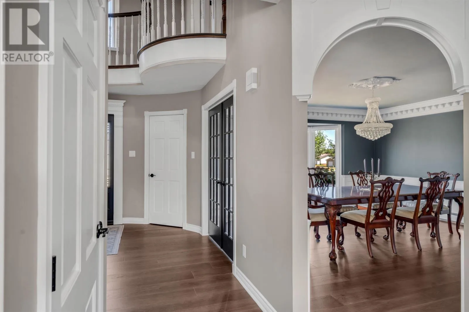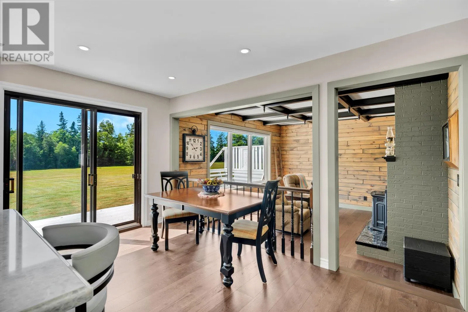 #25 on Elizabeth Drive, Alberton, off of Main Street Welcome to 25 Elizabeth Drive, Alberton - a beautifully designed executive home set on a private 1.91 acre lot. This stunning property offers refined living with luxury finishes, generous space, and exceptional privacy. Step into the grand foyer with cathedral ceilings and a sweeping staircase. The formal dining room features a bay window, elegant detailing, and a statement chandelier-perfect for entertaining. The professionally designed kitchen includes all new custom cabinetry, imported quartz countertops, a large island, and a secondary dining area with access to a private backyard deck. The main level also offers a spacious living room with a home theatre setup, a cozy family room with pellet stove, a full bathroom, and a laundry room with storage. Upstairs, the large primary suite features a walk-in closet, private sitting area, and access to the full bath. Three additional bedrooms provide ample space for family or guests. The basement includes an open gym area (equipment and flooring not included), a utility room, and direct access from the garage-ideal for a future in-law suite or guest space. The attached 4 car garage offers room for vehicles, storage, or a workshop. Surrounded by mature trees, the lot offers privacy and space to expand. Located minutes from schools, clinics, shopping, golf, and beaches-with nearby access to boating, kayaking, and more. (id:27476)