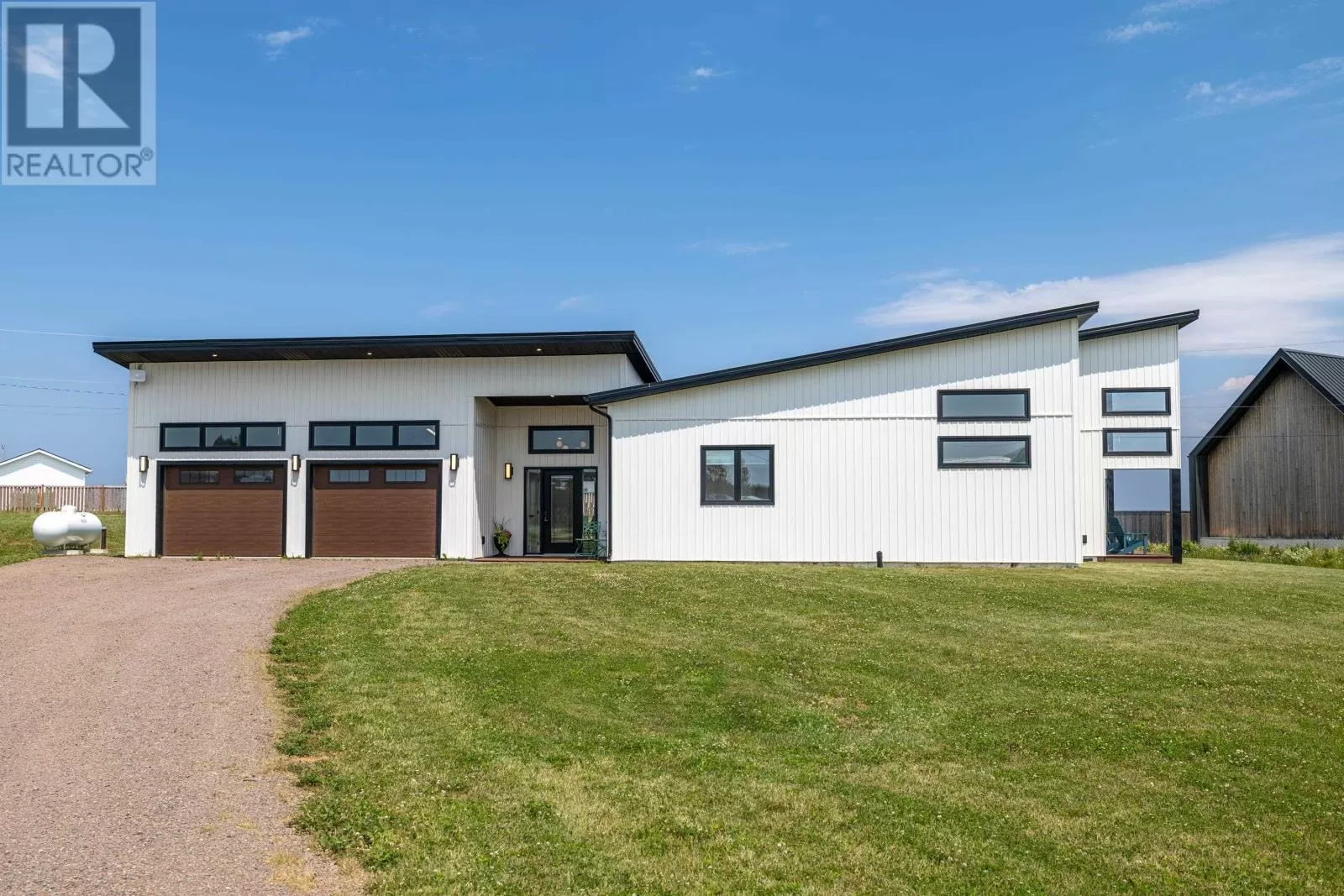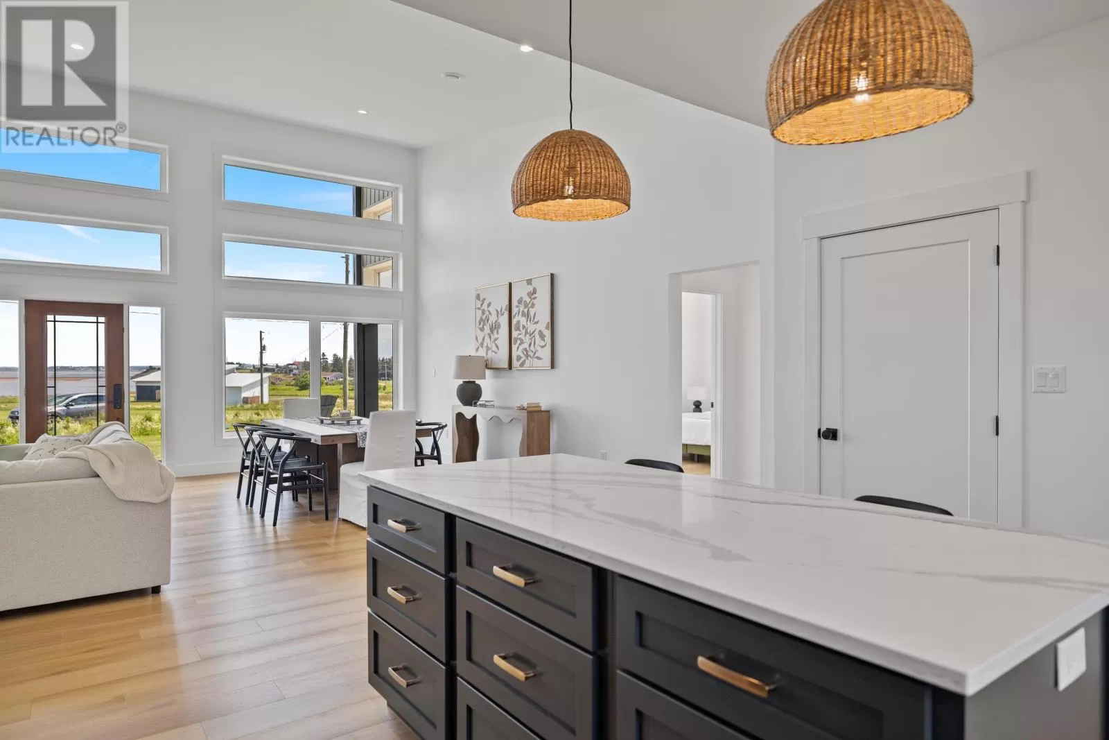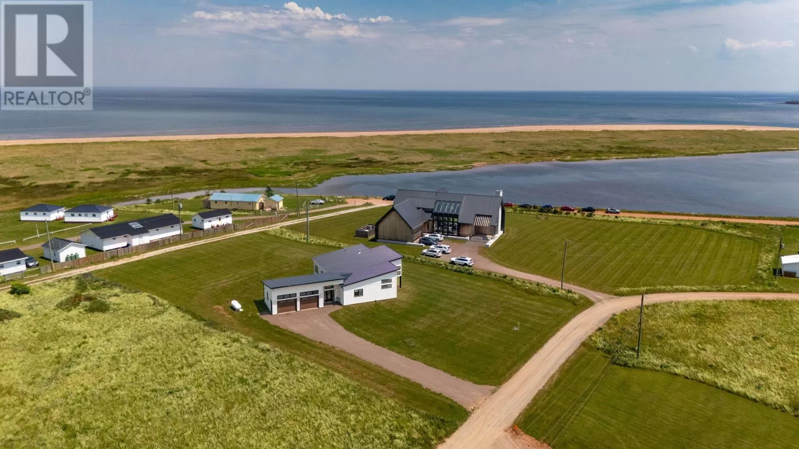 Rte 6, right on Buntain Rd to Lighthouse Lane, to Sunrise Drive. Rustico Dunes subdivision Welcome to your dream coastal retreat in Rustico, Prince Edward Island! Nestled within a high end community, along the pristine shores of Barrachois Beach, this exquisite 4-bedroom, 2.5-bathroom beach house is a perfect blend of luxury and tranquility. As you approach the property, the charming exterior captivates with its coastal-inspired design, featuring a combination of clean white siding and large windows that invite the stunning sea views inside. Upon entering, the bright and airy open-concept living space immediately welcomes you. The expansive floor to ceiling windows bathe the interior in natural light, and offer views of the ocean. The spacious living room is a cozy haven, complete with a black ship-lap propane fireplace, 16 ft ceilings, and wood floors. The gourmet kitchen boasts high-end, sleek quartz countertops, custom cabinetry, and hook up for a propane stove, making it a haven for culinary enthusiasts. Enjoy casual meals at the breakfast bar, or savor family dinners in the adjacent dining area, which opens onto a spacious deck overlooking the beach. The four bedrooms are thoughtfully designed to provide comfort and privacy. The master suite with 16 ft ceilings is a serene escape, featuring an ensuite bathroom with a luxurious soaking tub, walk-in shower, and a walk-in closet. On the opposite side of the house are the three additional bedrooms that all offer cozy retreats for family and guests, and the guest bathroom. Outside, the property is a true oasis. Just steps away is the beach access which ensures that the calming sounds of the waves are never far away. With modern amenities, breathtaking views, and access to the sandy shores, this beach house in the most sought after location in PEI, presents an unparalleled opportunity to embrace the coastal lifestyle. Seize the chance to make this haven your own and experience the epitome of seaside living in Prince Edward Island. (id:27476)