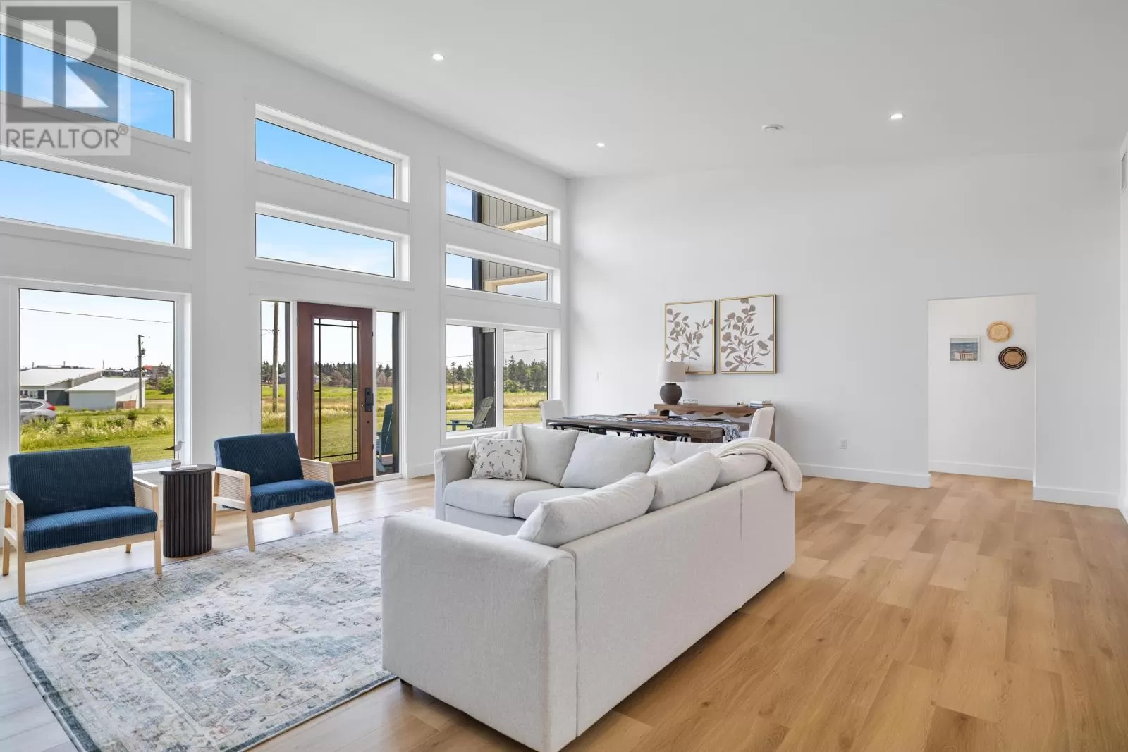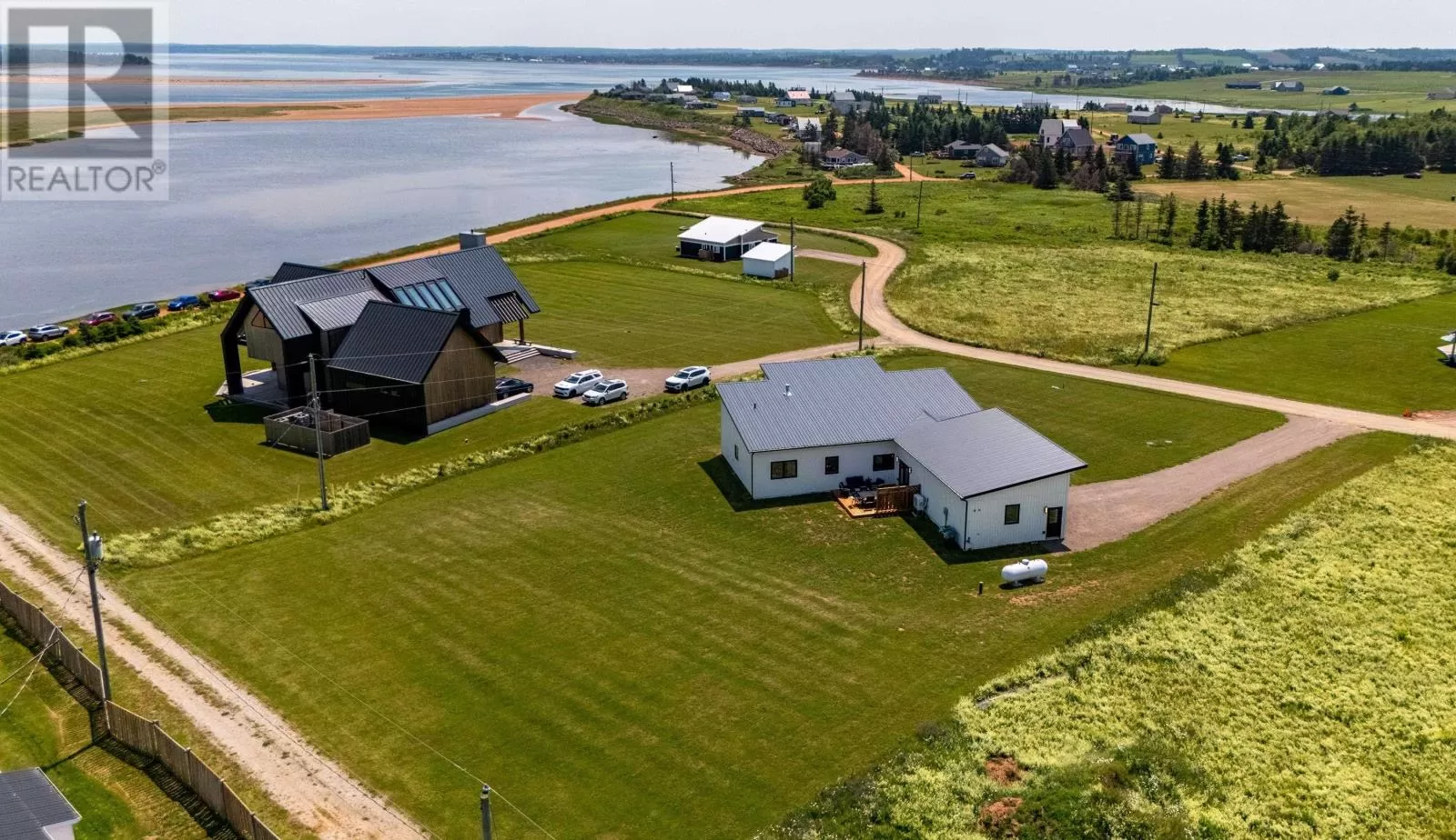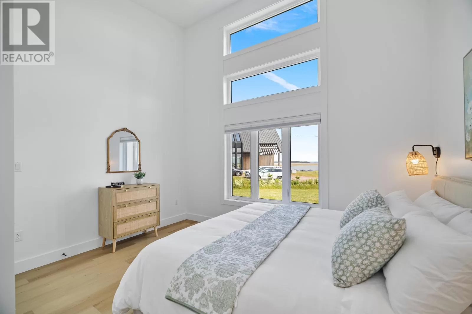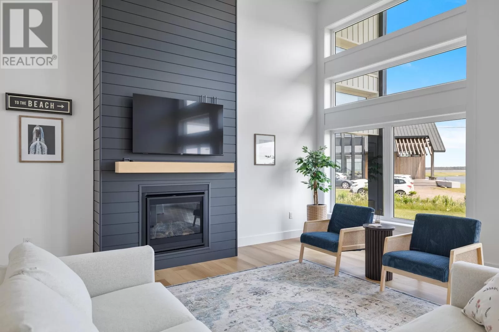 Rte 6, right on Buntain Rd to Lighthouse Lane, to Sunrise Drive. Rustico Dunes subdivision Welcome to your dream coastal retreat in Rustico, Prince Edward Island! Nestled within a high end community, along the pristine shores of Barrachois Beach, this exquisite 4-bedroom, 2.5-bathroom beach house is a perfect blend of luxury and tranquility. As you approach the property, the charming exterior captivates with its coastal-inspired design, featuring a combination of clean white siding and large windows that invite the stunning sea views inside. Upon entering, the bright and airy open-concept living space immediately welcomes you. The expansive floor to ceiling windows bathe the interior in natural light, and offer views of the ocean. The spacious living room is a cozy haven, complete with a black ship-lap propane fireplace, 16 ft ceilings, and wood floors. The gourmet kitchen boasts high-end, sleek quartz countertops, custom cabinetry, and hook up for a propane stove, making it a haven for culinary enthusiasts. Enjoy casual meals at the breakfast bar, or savor family dinners in the adjacent dining area, which opens onto a spacious deck overlooking the beach. The four bedrooms are thoughtfully designed to provide comfort and privacy. The master suite with 16 ft ceilings is a serene escape, featuring an ensuite bathroom with a luxurious soaking tub, walk-in shower, and a walk-in closet. On the opposite side of the house are the three additional bedrooms that all offer cozy retreats for family and guests, and the guest bathroom. Outside, the property is a true oasis. Just steps away is the beach access which ensures that the calming sounds of the waves are never far away. With modern amenities, breathtaking views, and access to the sandy shores, this beach house in the most sought after location in PEI, presents an unparalleled opportunity to embrace the coastal lifestyle. Seize the chance to make this haven your own and experience the epitome of seaside living in Prince Edward Island. (id:27476)