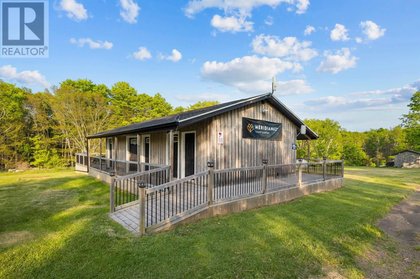 Turn off Trans Canada Highway into Stratgartney provincial park. Take the first right up to the gated area. It will be left open, then continue on that road until you reach the property. A truly rare opportunity to own a one of it's kind hospitality business nestled in the heart of PEIs scenic Strathgartney National Park. Meridian 63 is set on 19.4 acres of leased parkland, this staycation retreat includes four modern, year-round cabins, and a main outbuilding featuring renovated restrooms, storage, and a spacious updated communal kitchen. With the purchase of these shares, youll acquire ownership of all four cabin buildings, and a renewable 10-year lease with PEI National Parks with full access to the main building and the entire 19.4-acre site. Perched atop a hill with panoramic views stretching to Charlottetown and overlooking the stunning Bonshaw River, this property offers direct access to some of PEIs most prestigious trails and riverfront, perfect for eco-tourism and year-round adventure seekers. The business boasts a reputable brand and excellent online reviews. With space and demand for expansion, this is a future-forward investment. This opportunity is seeking business minds alike, that have a vision and plan for this unique operation. Ideally located just 5 minutes from Cornwall, 10 minutes from the artisan village of Victoria, and only 15 minutes to Charlottetown, it blends nature, community, and convenience. (id:27476)