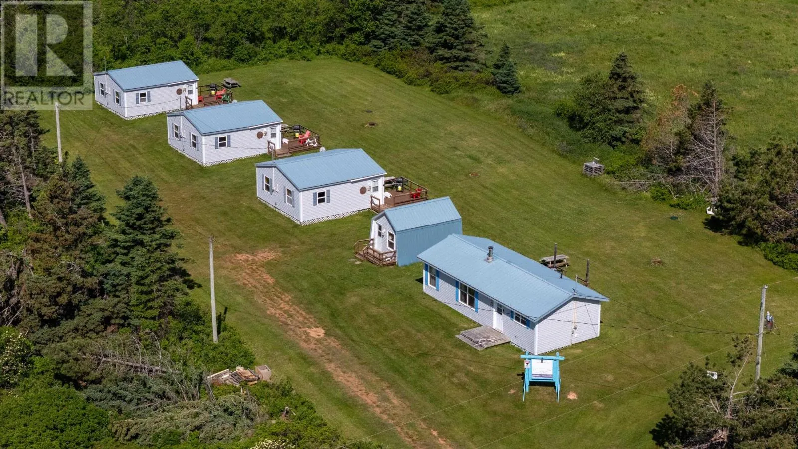 From RTE 16 Northside Rd, turn onto Cable Head Rd and follow to end, turn left onto RTE 336 and follow taking left fork then turn right onto Turret Bell. Cottages are located on left hand side. Welcome to your own slice of East Coast paradise! This charming cottage rental business is nestled just steps from the shoreline and spread across a lush green landscape with stunning ocean views. This unique property offers four fully turnkey cottages nestled among the trees on a picturesque red dirt road - providing guests with an authentic Island experience. Each cottage features a cozy living room, a separate kitchen, two bedrooms, and a full bathroom, all designed with warm wood-paneled interiors and rustic charm décor. The setting is peaceful and private, making it a perfect getaway for vacationers seeking both comfort and nature. Guests will enjoy the close proximity to some of the area's most popular attractions, including Greenwich National Park, Mysa Nordic Spa, Rick's Fish N Chips, and St. Peter's Landing. Whether they are seeking relaxation, adventure, or a taste of Island culture, everything is just a short drive away. The property also includes a storage building and a pump house, which support an on-site laundry service making guest changeovers efficient and convenient. This is a fantastic opportunity for those looking to invest in a ready-to-go hospitality business or create their own peaceful retreat on Prince Edward Island. (id:27476)