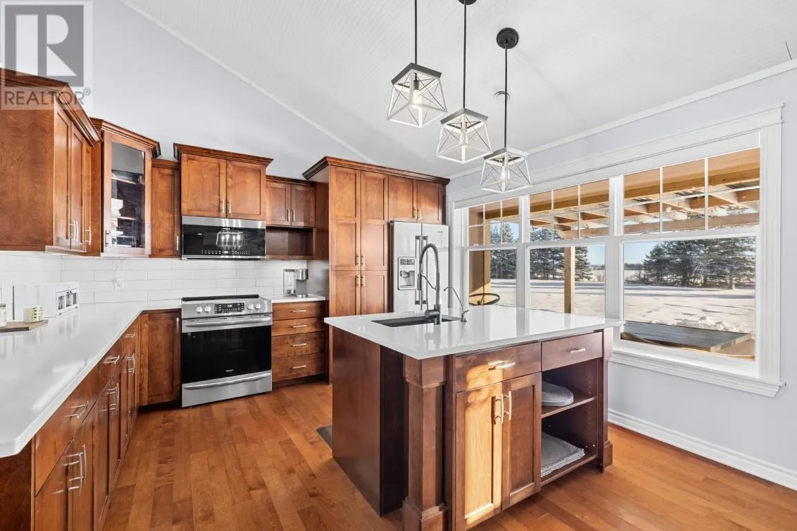 Welcome to your dream home! This exquisite home is perfectly positioned to capture breathtaking views of the ocean and the iconic Confederation Bridge. Step inside to discover a bright, open-concept living space designed to maximize natural light and showcase the stunning coastal scenery. Cathedral ceilings add to the space by creating an airy, open ambience. Whether hosting intimate dinners or lively celebrations, this home offers seamless flow and thoughtful design. Wake up to the sound of the waves in the main-floor primary suite, featuring a beautiful en-suite with a walk-in shower, clawfoot bathtub, and dual sink vanity. The well-appointed second bedroom offers both comfort and flexibility, making it an ideal space for family, guests, or even a stylish office. The second level of the home provides a third bedroom and a large rec room. Elevate your lifestyle with this versatile entertainment room, designed for relaxation and recreation. Whether you're hosting movie nights, game days, or casual get-togethers, this expansive space offers endless possibilities. Adjacent to the lounge is a spacious third bedroom that provides privacy and comfort. This home has been thoughtfully enhanced with extensive upgrades, including a newly installed Vicwest True Nature metal tile roof, a Viessmann propane boiler, an Old Hickory 12 x 24 shed, and much more. In addition, enjoy the best of coastal living with two exclusive paths to the beach! Whether you're seeking a year-round retreat or a luxurious vacation getaway, this is a rare opportunity to own a piece of paradise. Don't miss the chance to experience coastal living and breathtaking sunsets-schedule your private viewing today. (id:27476)