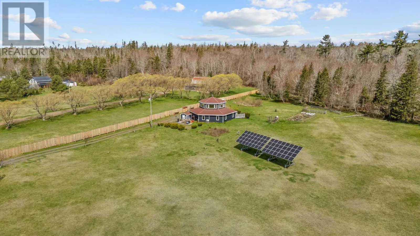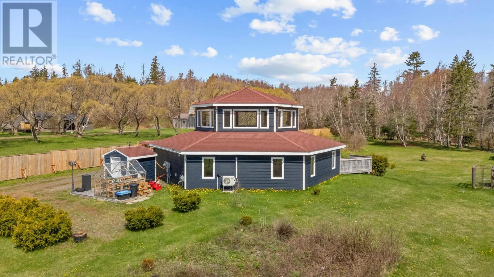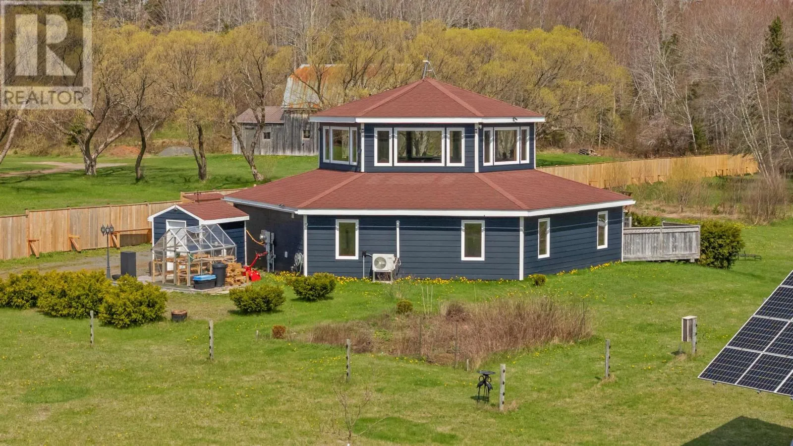 Welcome to 5225 - 48 Road, in the Head of Cardigan in Eastern PEI. This 3-bed, 2-bath home, often referred to as ?Hexagon Haven?, truly is a special haven. This one of a kind home, boasting over 2100 sq. ft. of quality construction, is tucked away on 5 gorgeous acres. Off-grid, self-sustaining and AFFORDABLE LIVING is possible here, with solar energy and an ideal set up for homesteading. The layout and material used allow for a cozy feel, yet it is large enough to suit all your needs. A brand new, very valuable solid wooden fence, will give you ample privacy and enjoyment of your property. This property would make an ideal and unique vacation rental, setting it apart from other rentals, for the savvy investor (also, some contents and yard equipment may be negotiable, so it?s a potentially turn-key rental). EXTRAS that make this property even better: a brook at the back of the property, it's own mature wooded area where you can lay in the hammock enjoy the sounds of birds and the bubbling brook, accessible walk-in bathtub (and extra wide bathroom door), gorgeous upstairs window-filled room with panoramic views, 4 storage sheds, gardens, reverse osmosis water system in the kitchen, ideal property to have animals or chickens if desired. Be unbothered when the power goes out here (generator set up + solar). Your life here will feel like you are living in a very warm, special, expansive, yet cozy vacation property ! Only 10 mins to the town of Montague and 30 mins to Charlottetown. Note: Be sure to click on the video link. (id:27476)