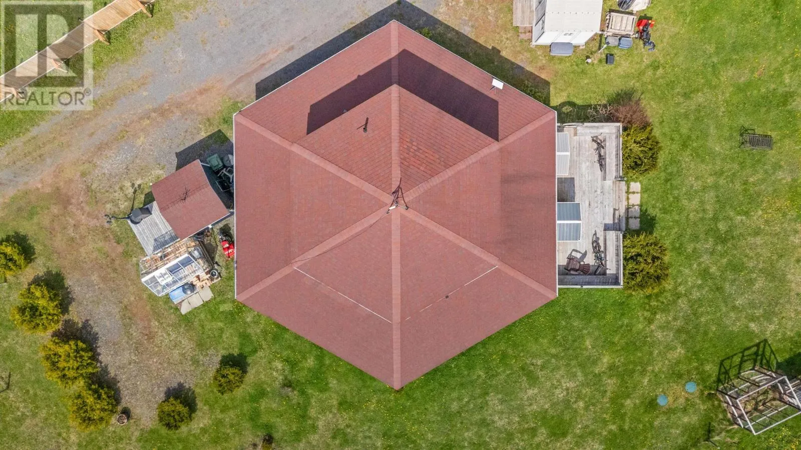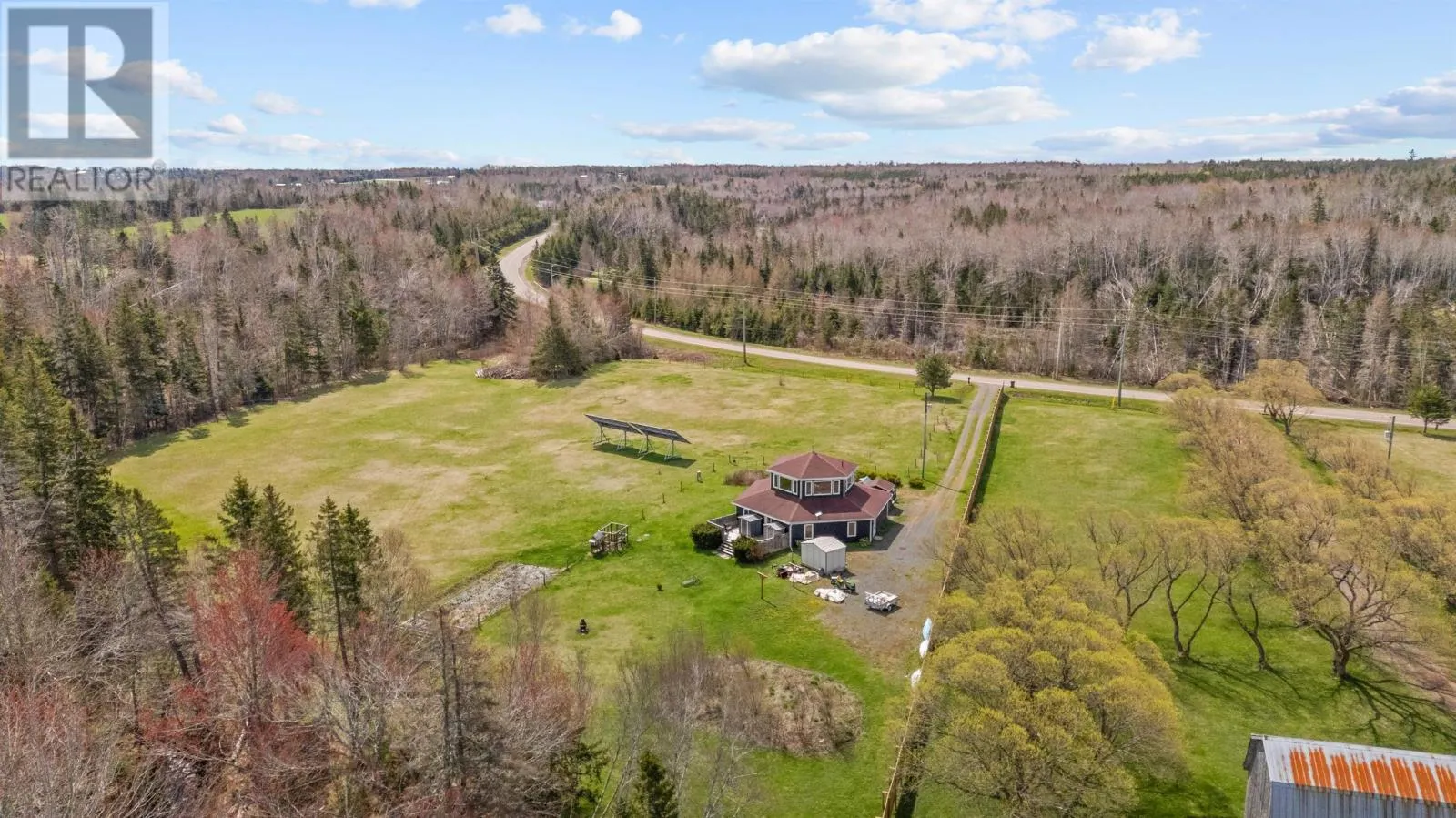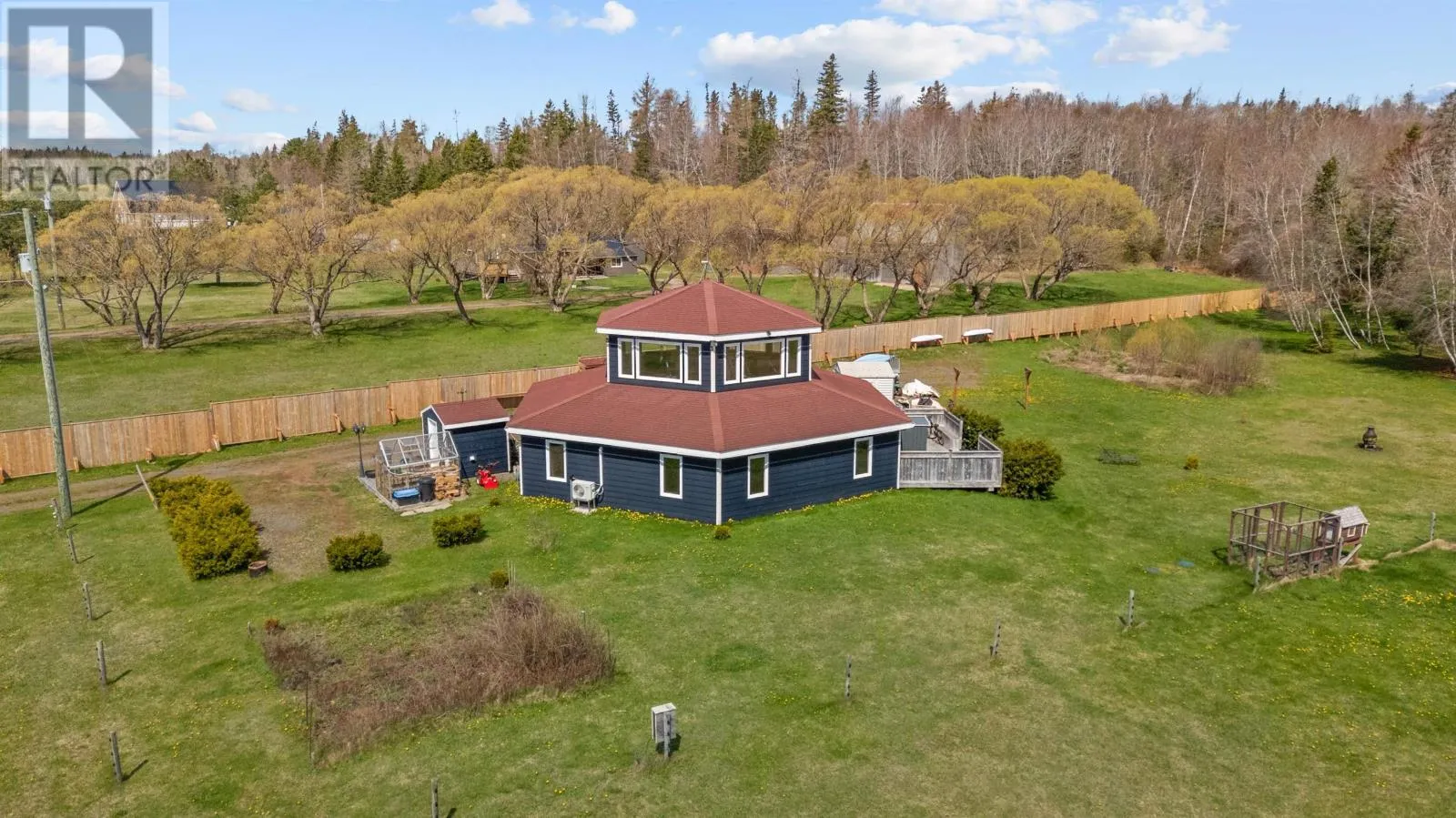 Welcome to 5225 - 48 Road, in the Head of Cardigan in Eastern PEI. This 3-bed, 2-bath home, often referred to as ?Hexagon Haven?, truly is a special haven. This one of a kind home, boasting over 2100 sq. ft. of quality construction, is tucked away on 5 gorgeous acres. Off-grid, self-sustaining and AFFORDABLE LIVING is possible here, with solar energy and an ideal set up for homesteading. The layout and material used allow for a cozy feel, yet it is large enough to suit all your needs. A brand new, very valuable solid wooden fence, will give you ample privacy and enjoyment of your property. This property would make an ideal and unique vacation rental, setting it apart from other rentals, for the savvy investor (also, some contents and yard equipment may be negotiable, so it?s a potentially turn-key rental). EXTRAS that make this property even better: a brook at the back of the property, it's own mature wooded area where you can lay in the hammock enjoy the sounds of birds and the bubbling brook, accessible walk-in bathtub (and extra wide bathroom door), gorgeous upstairs window-filled room with panoramic views, 4 storage sheds, gardens, reverse osmosis water system in the kitchen, ideal property to have animals or chickens if desired. Be unbothered when the power goes out here (generator set up + solar). Your life here will feel like you are living in a very warm, special, expansive, yet cozy vacation property ! Only 10 mins to the town of Montague and 30 mins to Charlottetown. Note: Be sure to click on the video link. (id:27476)
