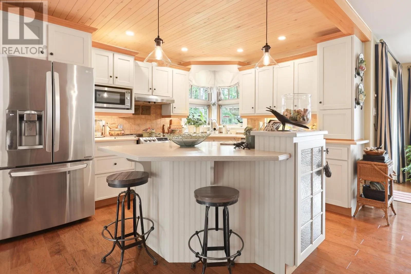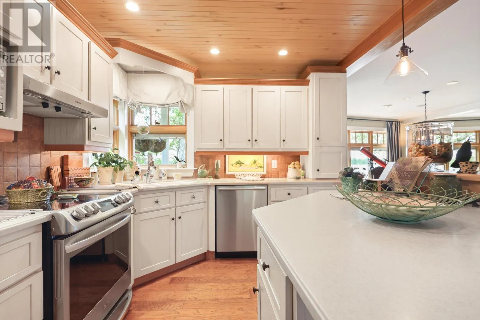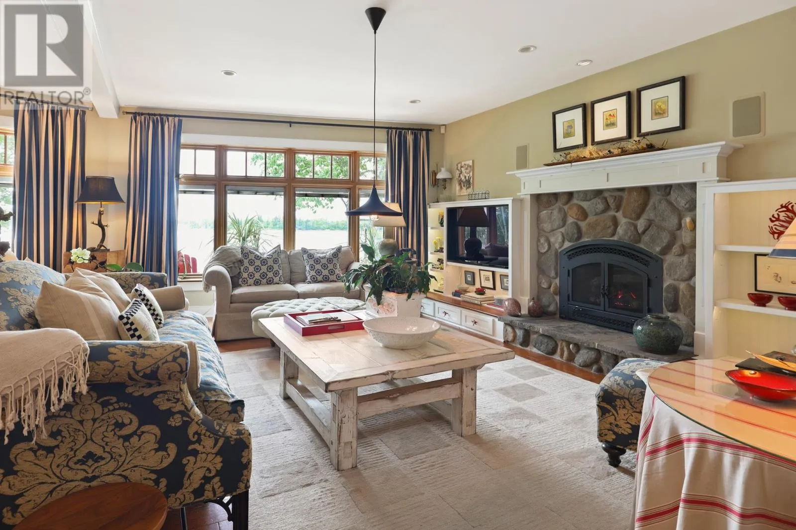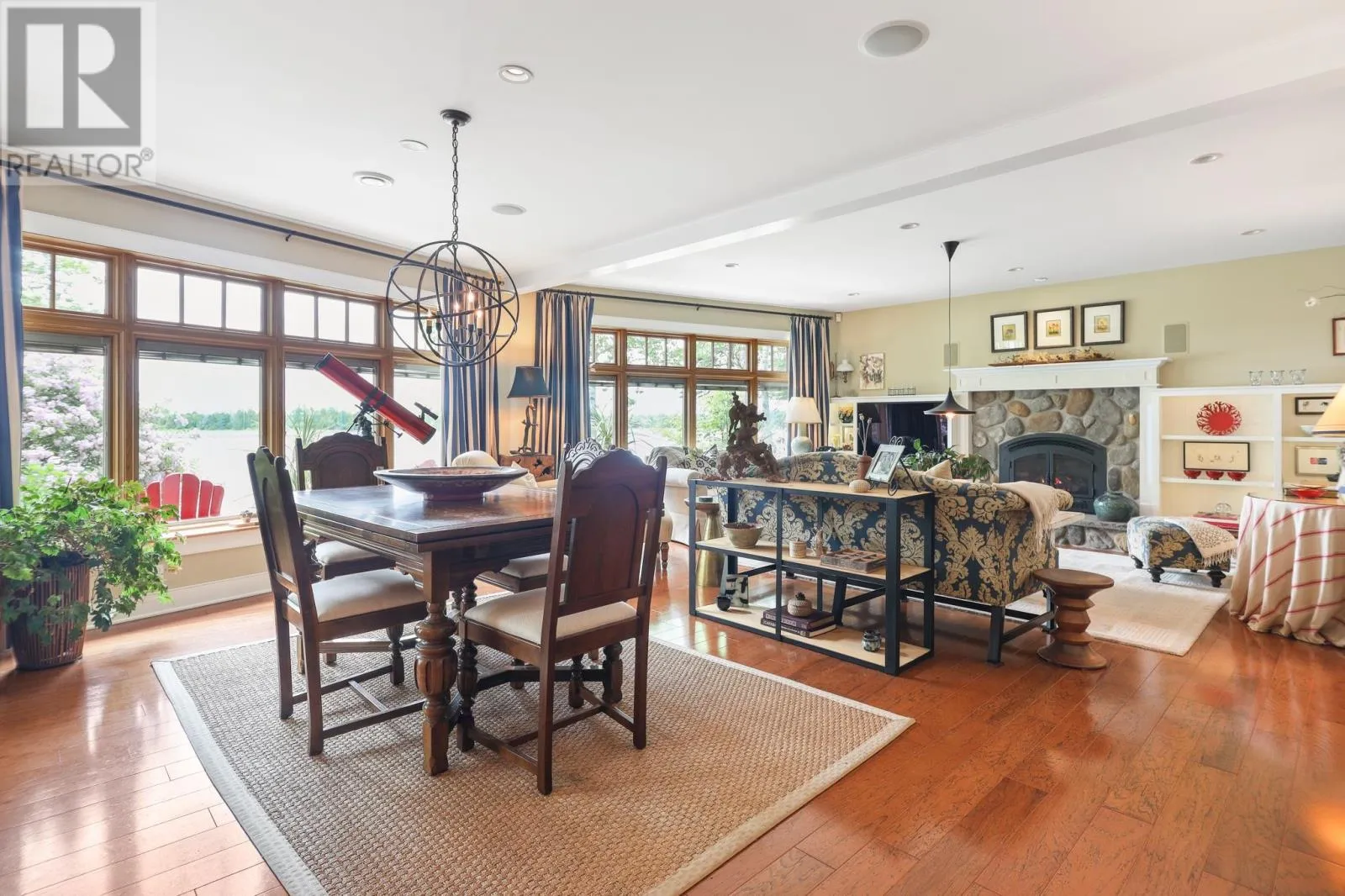 Travel West on Route 12, turn right onto Ferry Drive, then turn left onto Acorn Drive, house on right. You have just discovered a destination waterfront property that is the perfect blend of comfort, style, and luxury. Meticulously maintained, this 3 bedroom home offers 1980 square feet of thoughtfully designed living space and is nestled on the scenic shore of Mill River. Boasting breathtaking views and direct access to the beach and your very own 180 ft private dock, ideal for boating, kayaking, swimming, or simply soaking in the serene surroundings. Inside this 2 story home features open concept kitchen, dining, and living areas, creating an inviting atmosphere for both family living and elegant entertaining. High quality finishes, in floor heat, a cozy fireplace, and large windows with triple pane glass filling the space with natural light and million dollar views. A main floor bedroom and laundry room add to the practical appeal, making it ideal for families, retirees, and if desired, single level living. Adding exceptional value and versatility is a detached carriage house with oversized two car garage with in-floor heat and upstairs a one bedroom suite, perfect for a guest retreat, or income generating rental, this space mirrors the main home?s craftsmanship and attention to detail. This is a rare opportunity to own a truly exceptional waterfront property that offers luxury living in a peaceful natural setting, it is a must see for the discerning buyer. (id:27476)