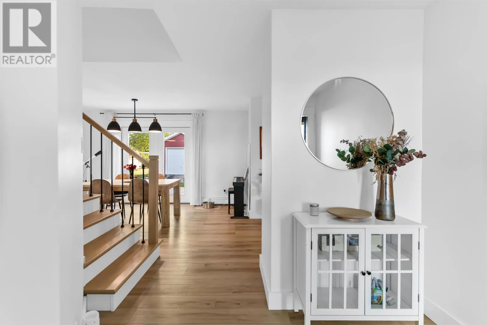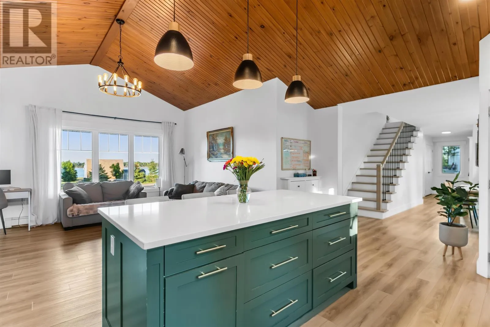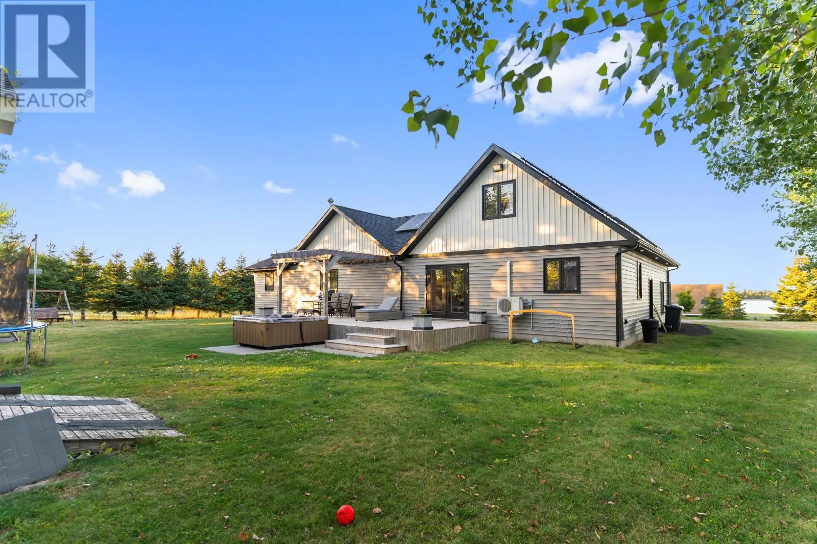 Built in 2004 and fully renovated in 2021, this 3-bedroom, 2.5-bath home combines modern design with relaxed coastal living in one of Cascumpec?s most desirable locations. Enjoy water views and community access to Mill River, just minutes from beaches, Mill River Golf, and the conveniences of Alberton and O?Leary. Step inside to a bright foyer leading to an airy great room with a shiplap fireplace as its centerpiece. The custom kitchen features quartz countertops, stainless steel appliances, deep-green shaker cabinetry, open shelving, and a warm tongue-and-groove ceiling. The dining area opens to a 28Ã12 deck with pergola and hot tub, while a mudroom, laundry, and half bath complete this level. Two bedrooms and a full bath offer an ideal setup for family or guests. Upstairs, the private primary suite captures water views and includes a large walk-in closet and a spa-like ensuite with freestanding tub, black-framed glass shower, and double vanity. The lower level adds versatile living space with room for a family room, gym, or studio, plus generous storage and a pantry/cold room. An attached 24Ã24 double garage and a 16Ã12 shed provide excellent utility. Energy-smart features include roof-mounted solar panels, an efficient heat pump, and oil-fired hot water rads ? reducing costs and increasing comfort. This turnkey property offers the best of modern living in a beautiful coastal setting ? ready to move in and enjoy. (id:27476)