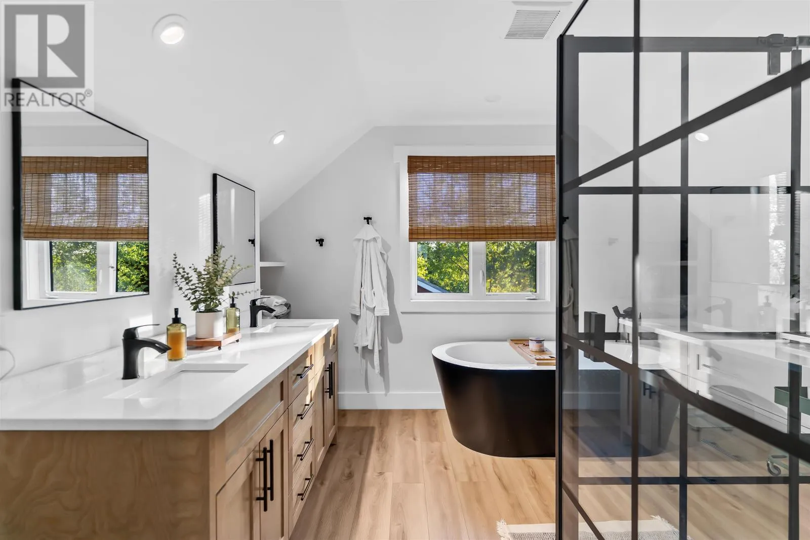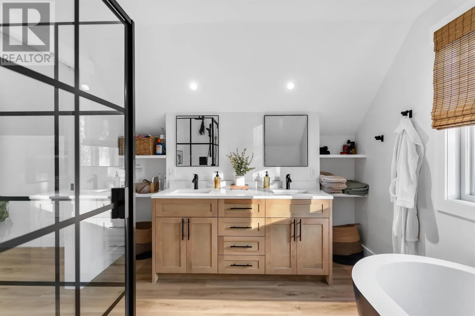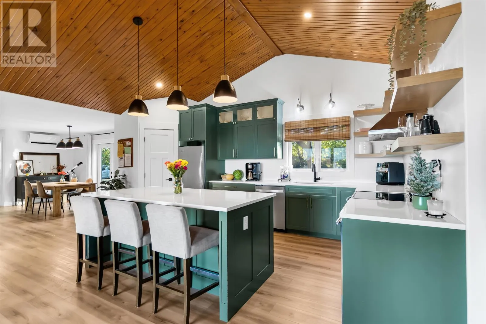 Built in 2004 and fully renovated in 2021, this 3-bedroom, 2.5-bath home combines modern design with relaxed coastal living in one of Cascumpec?s most desirable locations. Enjoy water views and community access to Mill River, just minutes from beaches, Mill River Golf, and the conveniences of Alberton and O?Leary. Step inside to a bright foyer leading to an airy great room with a shiplap fireplace as its centerpiece. The custom kitchen features quartz countertops, stainless steel appliances, deep-green shaker cabinetry, open shelving, and a warm tongue-and-groove ceiling. The dining area opens to a 28Ã12 deck with pergola and hot tub, while a mudroom, laundry, and half bath complete this level. Two bedrooms and a full bath offer an ideal setup for family or guests. Upstairs, the private primary suite captures water views and includes a large walk-in closet and a spa-like ensuite with freestanding tub, black-framed glass shower, and double vanity. The lower level adds versatile living space with room for a family room, gym, or studio, plus generous storage and a pantry/cold room. An attached 24Ã24 double garage and a 16Ã12 shed provide excellent utility. Energy-smart features include roof-mounted solar panels, an efficient heat pump, and oil-fired hot water rads ? reducing costs and increasing comfort. This turnkey property offers the best of modern living in a beautiful coastal setting ? ready to move in and enjoy. (id:27476)