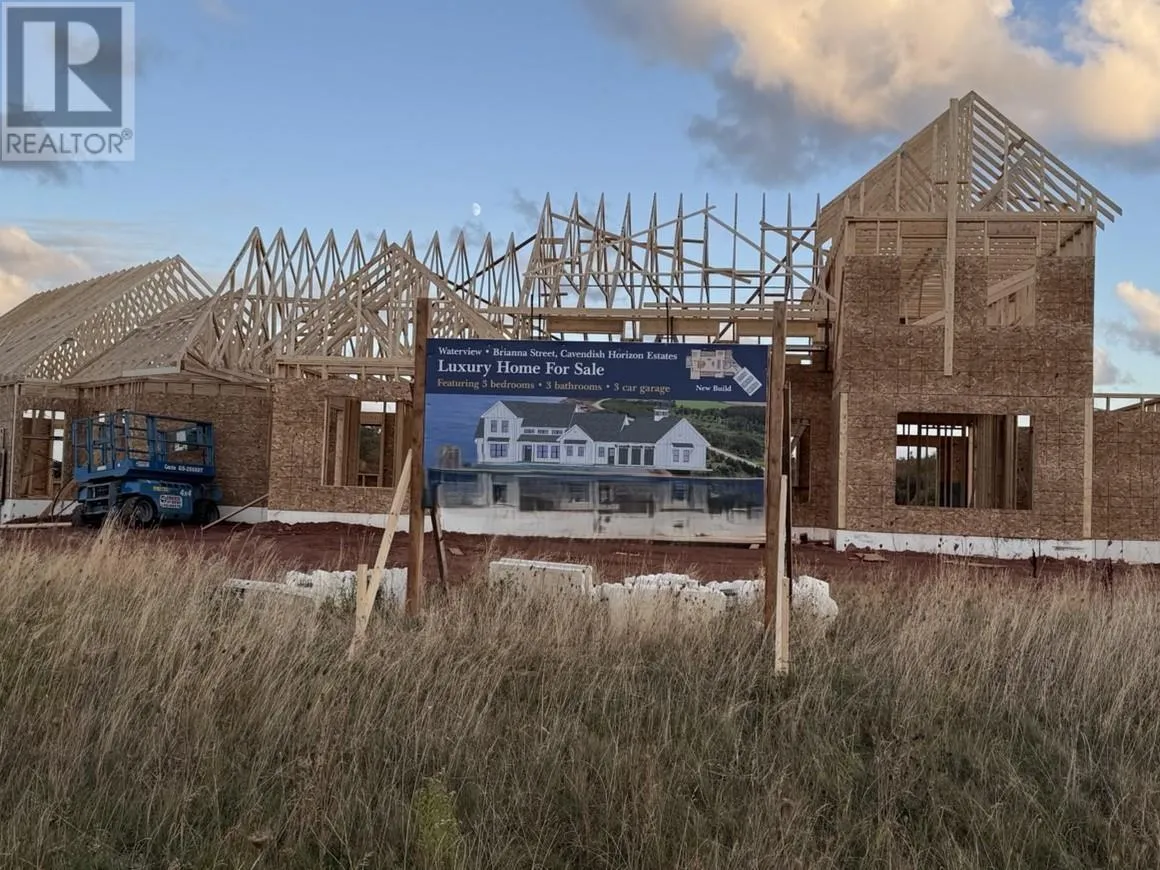 Take RTE 6 to Cavendish Horizons Estates Discover Your Dream Home at 11 Brianna Street. Nestled in the breathtaking Cavendish Horizons Estates, this stunning property sprawls over 1.3 acres of coastal elegance at every turn. As you step through the grand foyer, you are welcomed by soaring ceilings and an open-concept design that seamlessly connects the living spaces, creating a warm and inviting atmosphere. Prepare to be wowed by the chefs kitchen, an absolute masterpiece featuring a jaw-dropping 13 foot island, exquisite quartz countertops, custom cabinets, and stainless steel appliances. The kitchen flows effortlessly into the dining and living areas, making it the perfect space for entertaining guests or enjoying family gatherings. Step outside to discover three covered decks, ideal for grilling and soaking in the stunning surroundings. Retreat to the primary bedroom, a sanctuary of comfort and complete with an impressive ensuite featuring a custom shower, relaxing soaker tub, and a spacious walk in closet. Convenience is key on the main level, where you'll also find a den/study, laundry room, mudroom, and a three car garage with large windows that frame picturesque water views, perfect for car enthusiasts or transforming into your personal fitness haven. Venture upstairs, where your guests will be treated to breathtaking ocean views from the beautifully appointed bedrooms, complemented by a third bathroom for their convenience. Outside, embrace the beautiful surroundings and nearby beaches, tee off at local golf courses, or explore the walking and biking trails. Indulge in fresh seafood at local restaurants or unwind with live music at nearby venues. Each evening, watch as the sky transforms into a canvas of vibrant hues, casting a warm golden glow in the horizon. Located just minutes from North Rustico and a short 30 mins drive to Charlottetown airport. With covenants and restrictions in place to protect your investment, you can personalize your dream home by selecting your favorite designer finishes. (id:27476)