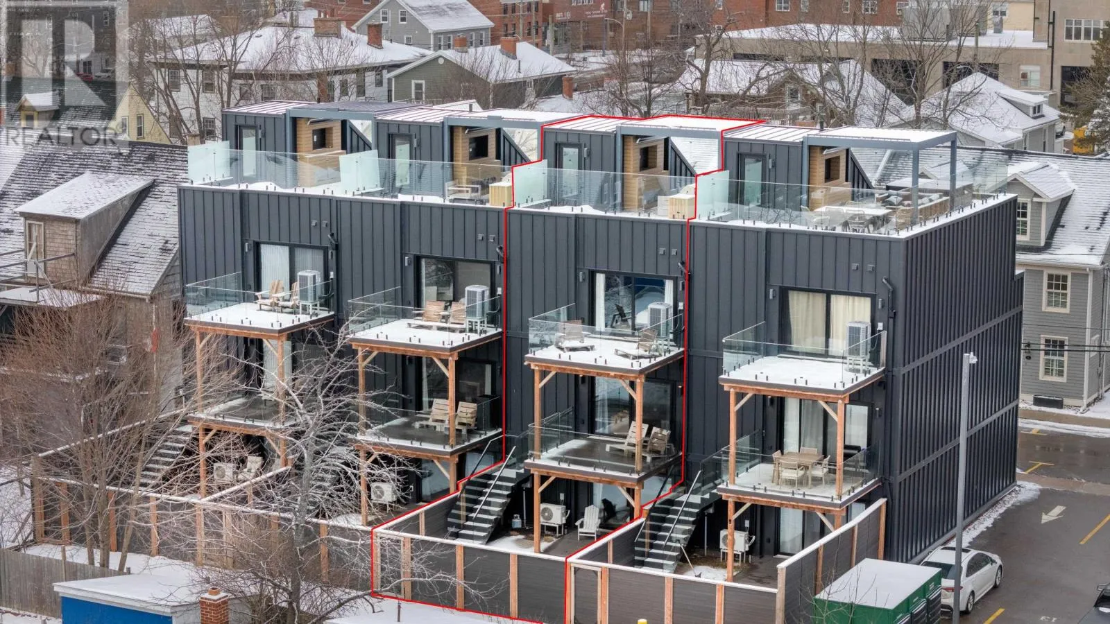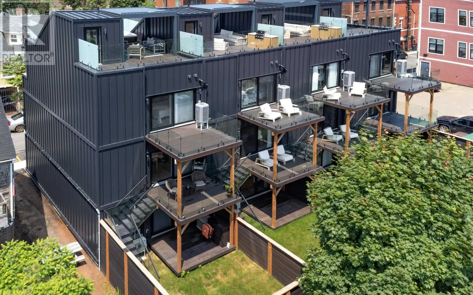 Nestled in the heart of downtown Charlottetown, 64 Dorchester is a luxurious 3-bedroom, 3-bathroom townhouse offering over 2,100 sq. ft. of impeccably designed living space. Spanning four levels, this home blends indoor and outdoor living with five 12-foot patio doors leading to private decks on every level. The main floor features a spacious guest suite with a private patio and a spa-inspired ensuite, complete with a custom-tiled shower and frameless glass. The second floor is the heart of the home, with an open-concept kitchen, dining, and living space ideal for connection and relaxation. The chef-inspired kitchen includes sleek quartz countertops, high-end appliances, and a dedicated bar area. The living area flows to balconies at the front and back, perfect for entertaining or unwinding, while a conveniently located powder room adds practicality. The third-floor primary suite is a serene retreat, featuring custom built-ins, a private deck, and a spa-like 5-piece ensuite with a wet room, soaker tub, dual sinks, and elegant finishes. An additional bedroom on this floor offers versatility and access to front and back balconies, extending the home?s indoor-outdoor living experience. The private rooftop terrace is the crown jewel of this home, designed for year-round enjoyment. It includes a motorized pergola, built-in barbecue, mist fireplace, hot tub for six, and breathtaking views of Charlottetown?s skyline. An attached heated garage with epoxy-coated floors and an additional parking space in front provide year-round convenience and peace of mind. Completed in 2022, this freehold townhouse is steps from Charlottetown?s finest dining, boutique shopping, and the waterfront. Thoughtfully designed with sophistication, exclusivity, and effortless living in mind, 64 Dorchester is more than just a home?it defines a lifestyle. (id:27476)