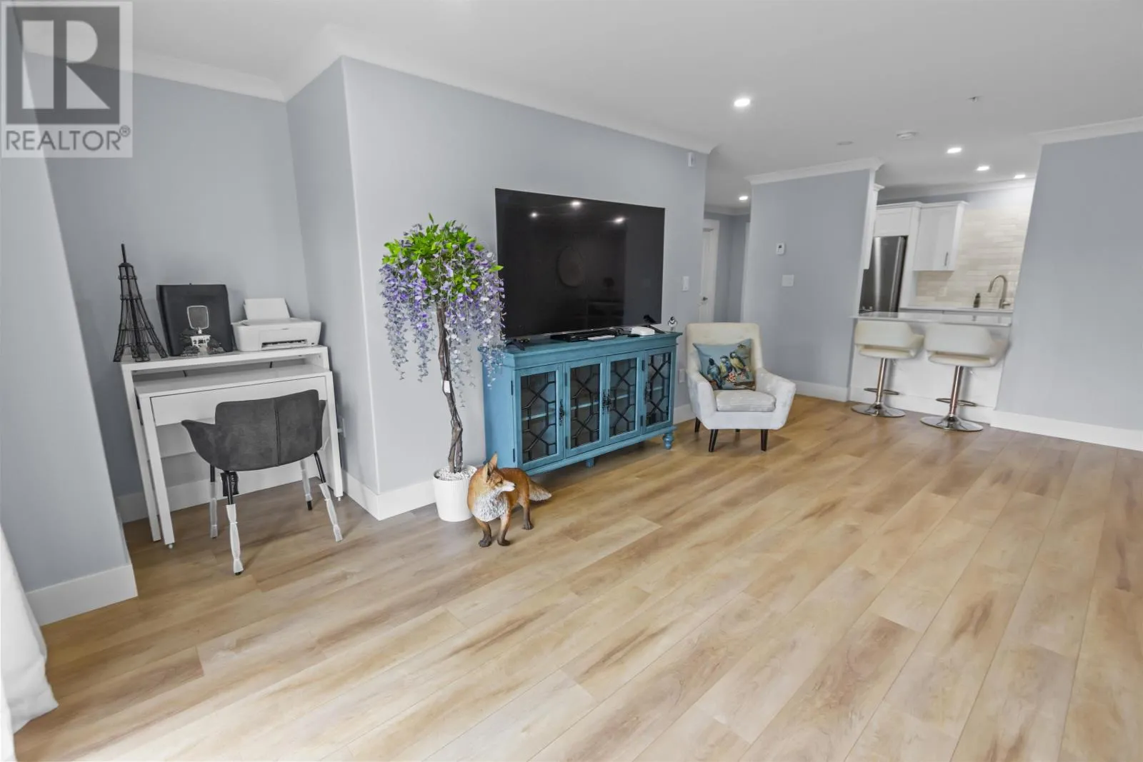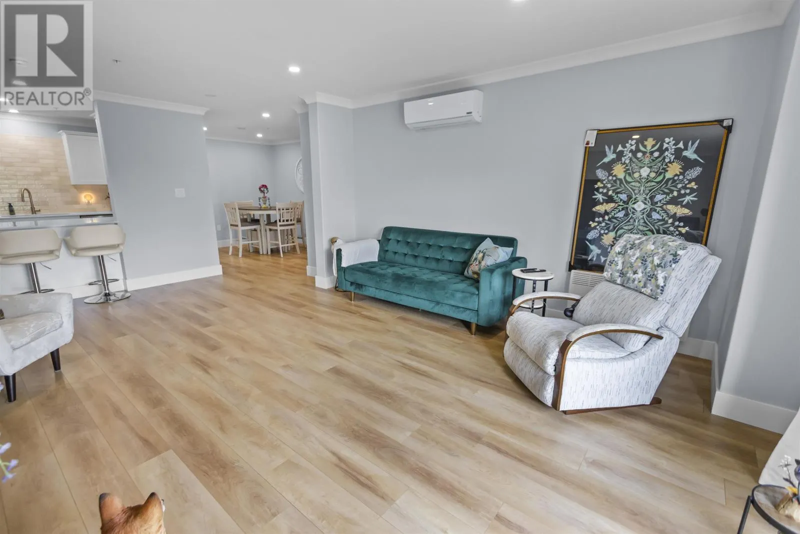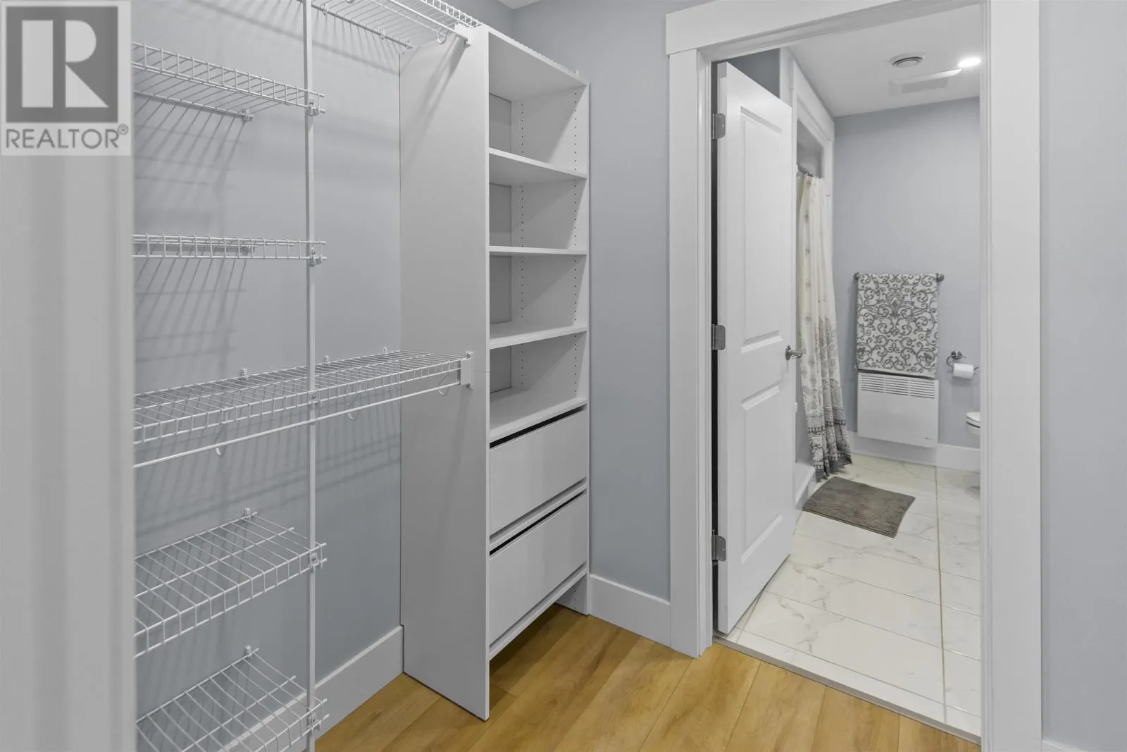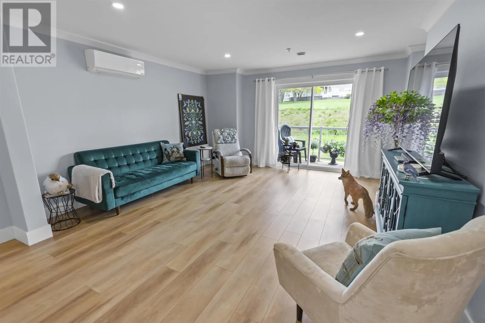We invite you to view this well designed two-bedroom, two full bathroom condominium, featuring upgrades. This inviting home boasts an open-concept main living area, with crown molding throughout. The separate dining area flows seamlessly into the spacious living room, which opens to a patio, offering lovely grounds and tree views. The kitchen has stainless steel appliances and has been upgraded with artisan white tiles. In-unit laundry facilities includes extra storage cupboards. The master bedroom closet features added shelving for stylish storage. This unit has laminate and ceramic floors and all counters are quartz. The unit has two heating systems and air conditioning. There is an assigned parking spot, plus this is a security building, fully equipped with a central fire panel sprinkler system for your peace of mind and safety. The unit is protected by a Lux Home warranty, which will protect your unit for several years to come. This condominium, situated in the desirable East Royalty neighborhood, offers convenient proximity to schools, the downtown area, and nature trails. Don't miss the opportunity to make this beautiful condo your new home. All measurements are approximate and should be verified by the Buyer(s). (id:27476)