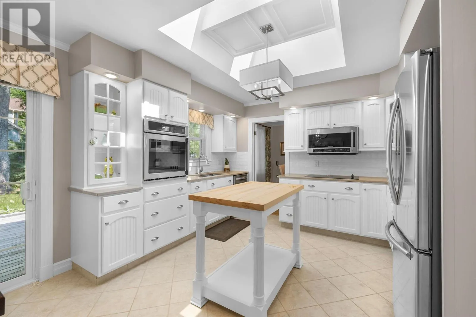 Tucked away in the sought after subdivision of Lewis Point on a quiet dead-end street with scenic water views of the North River, this beautifully updated 4-bedroom, 2-bath home offers the perfect blend of space, comfort & location. Just minutes to downtown Charlottetown, schools and shopping, this side split home provides both convenience and a peaceful lifestyle. Step inside to a spacious main floor featuring a bright living room, formal dining area, and eat-in kitchen that opens to the back deck - ideal for morning coffee or evening BBQ's surrounded by mature trees and colourful flower beds. Upstairs, you will find three well-appointed bedrooms and a large full bathroom, while the lower level features a cozy family room, second full bathroom with laundry, and a fourth bedroom or ideal home office. There's also a fourth lower level offering untapped potential for extra living space or storage plus a 23x24 double car garage. Recent updates include a new roof & skylights, kitchen & stone countertops, new appliances, two efficient heat pumps, a new paved driveway, new garage floor, newer chimney liner and fibreglass oil tank. Quality finishes are found throughout, and the exterior is equally impressive with landscaped gardens, brick walkways and curb appeal in every season. Don't miss the chance to own a move-in ready home in one of Charlottetown's most desirable neighbourhoods. (id:27476)