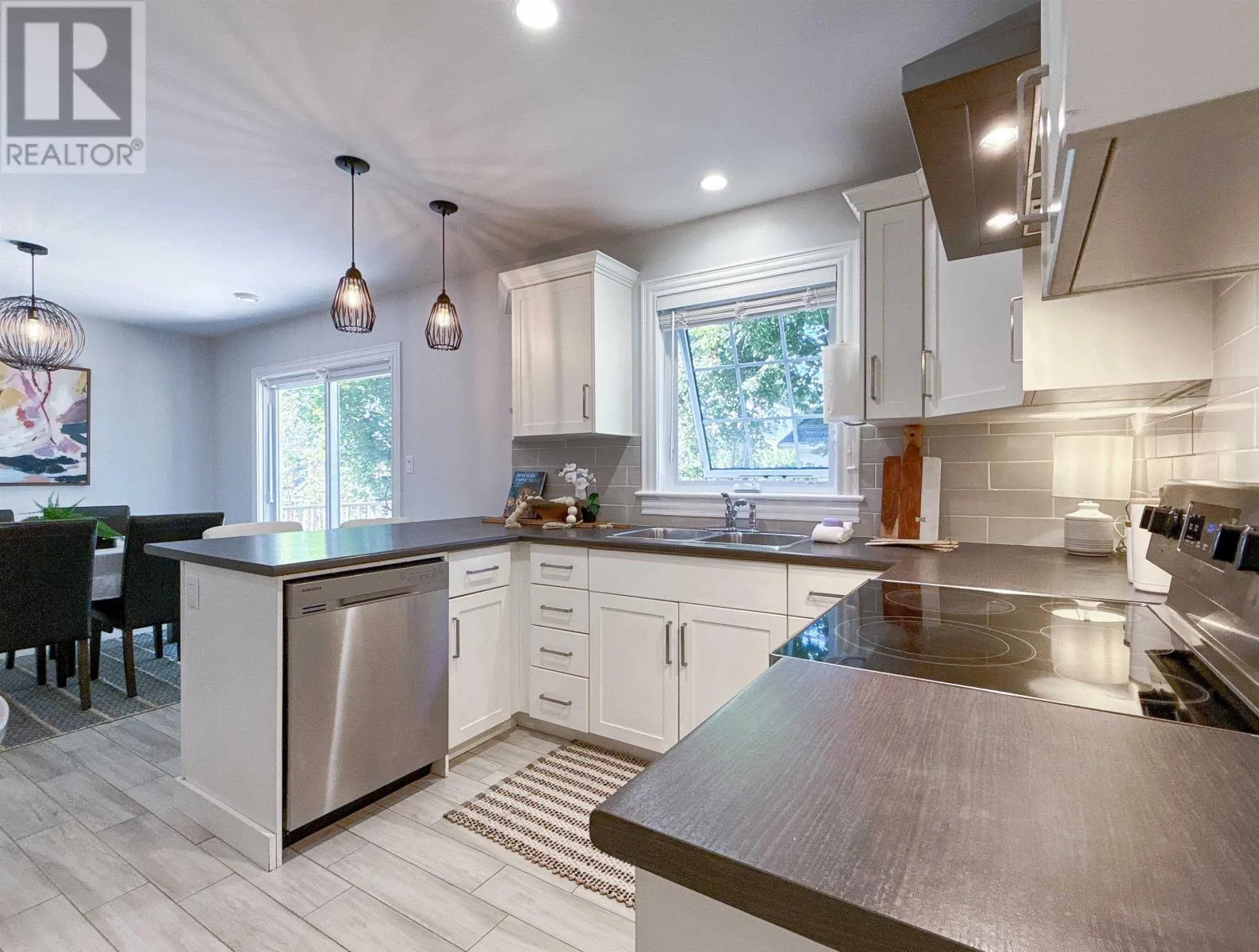 Click the virtual tour link to view this home. Welcome to this three-bedroom, 2.5-bath home in one of the city?s most sought-after areas, featuring a bright and spacious kitchen with a built-in breakfast nook, a dining area that opens onto a large deck overlooking a semi-private yard with mature shade trees, and a comfortable layout with a unique floor plan across all three levels. The primary bedroom includes a walk-in closet and full ensuite bath, while the generous recreation room provides space for a half bath or additional storage. A single-car garage offers convenient parking, and the home is available fully furnished for immediate occupancy. Ideally located close to city parks, just five minutes from major shopping areas, and within the Spring Park, Queen Charlotte, and Colonel Gray school districts, it also provides easy access to a nearby strip mall, pharmacy, grocery stores, and restaurants. Please note the current owner is a non-resident. All measurements are approximate and should be verified by the purchaser. (id:27476)