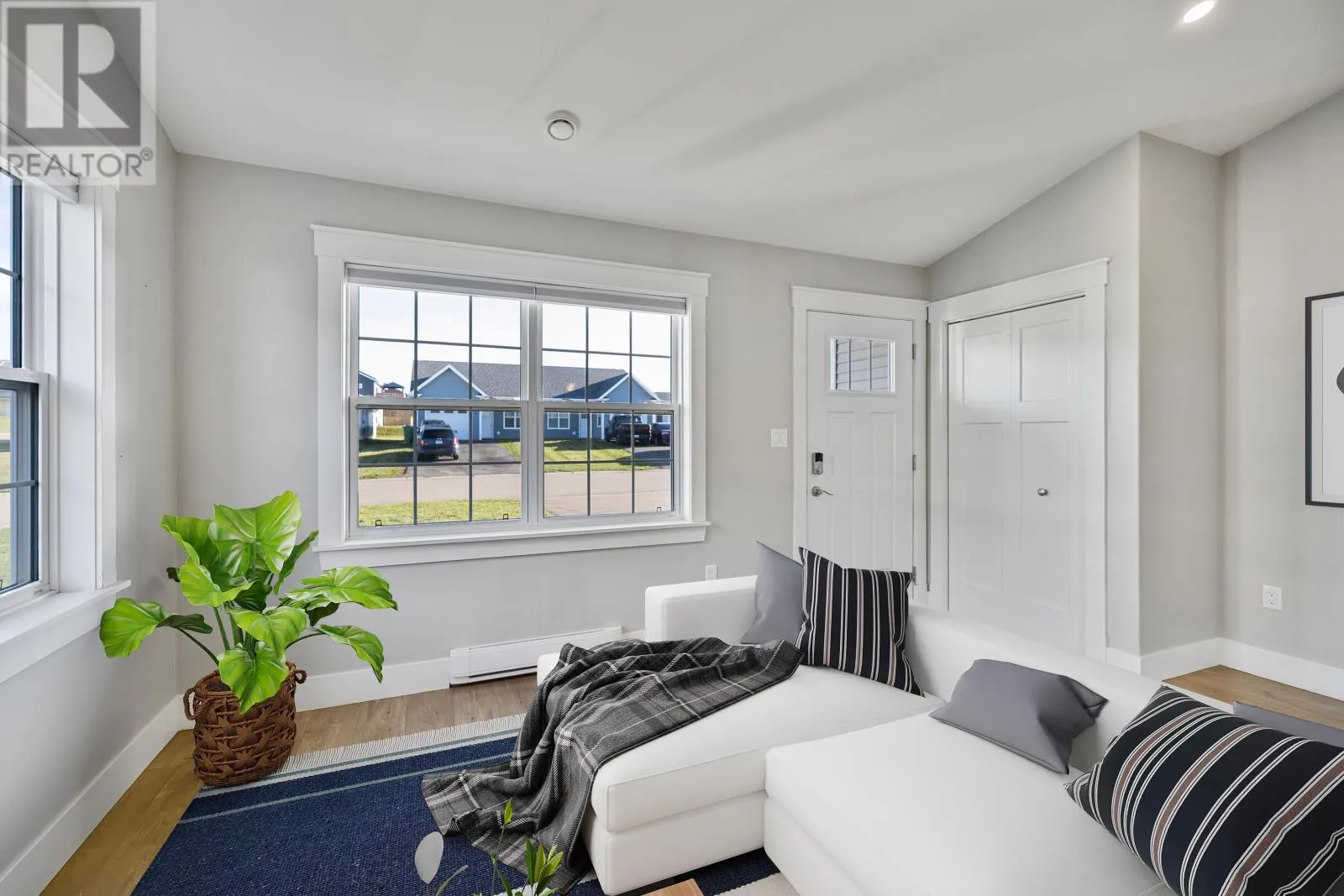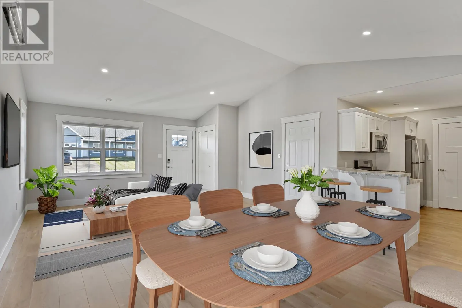 Welcome to 24 Holmes Lane, a beautiful semi-detached home offering comfort and style in a quiet, family-friendly neighborhood. This 3-bedroom, 2-bathroom home features an inviting open-concept main floor with vaulted ceilings, creating a bright and airy living space. The living/dining areas flow with ease into the kitchen, all designed for modern living. Kitchen is complete with white shaker cabinetry, a raised eating bar and walk-in pantry, providing extra space for kitchen and household items. The primary bedroom has a 4 piece ensuite bath and the two additional bedrooms offer multiple options for a home office space or fitness area. Large windows throughout the home allow for an abundance of natural light, enhancing the warm and welcoming atmosphere. Enjoy the convenience of a heated single-car garage with room for storage, as well as a large lot that provides the luxury to garden, play, or relax on the private deck. Ideally located within the sought after Lucy Maud Montgomery School system and just minutes from all the amenities of Charlottetown, this property offers the perfect balance of tranquility and city convenience. Whether you're a first-time buyer, downsizing, or searching for a well appointed family home, 24 Holmes Lane is ready for you. Please note that some photos have been virtually staged. All measurements are approximate and should be verified by the Buyer if deemed necessary. (id:27476)
