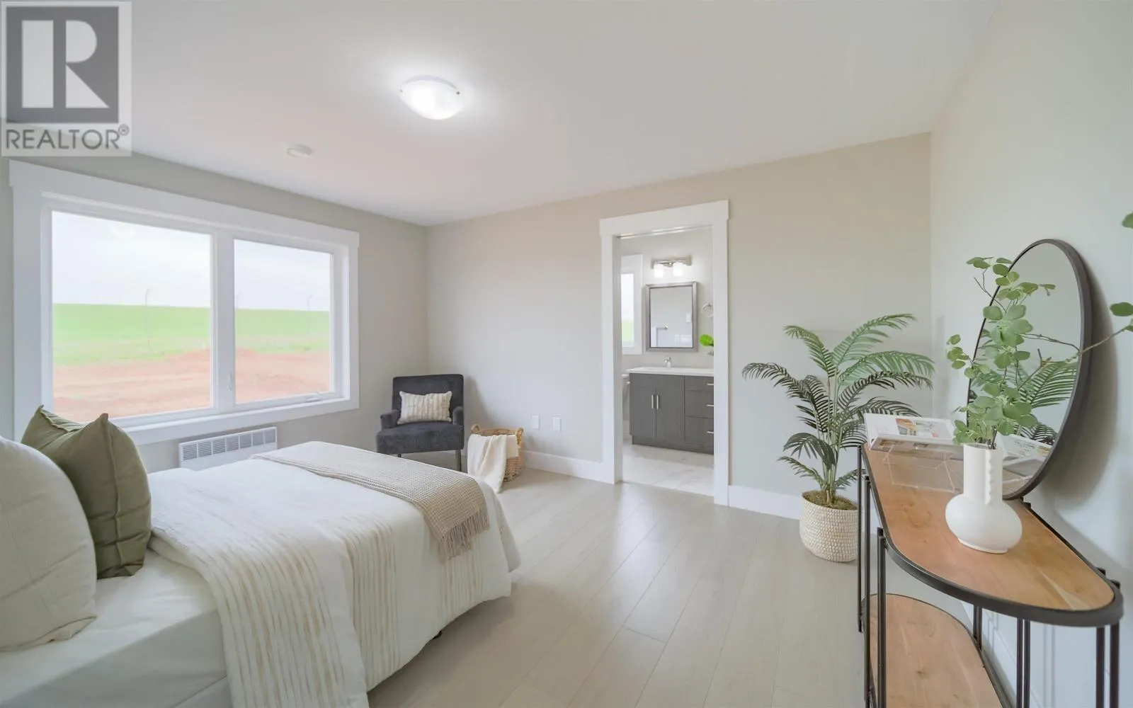 Modern Semi-Detached Home ? One-Level Living at Its Best! Welcome to this beautifully crafted built semi-detached home offering stylish, modern finishes and the convenience of one-level living. This thoughtfully designed half-duplex features an attached heated single-car garage and a bright, open-concept layout ideal for any lifestyle. Step inside to find a spacious living and dining area that flows seamlessly into a custom-built kitchen, complete with contemporary cabinetry, stainless steel appliances, and a large island with seating?perfect for entertaining or casual family meals. The primary bedroom is a true retreat, featuring a walk-in closet and a beautifully appointed ensuite. Two additional generously sized bedrooms and a second full bathroom provide plenty of space for family, guests, or a home office. Additional highlights include energy-efficient LED pot lighting and a heat pump for year-round comfort. Whether you?re a first-time buyer, investor, or looking to downsize, this home checks all the boxes. Don't miss this opportunity to own a move-in-ready home in a great location! (id:27476)