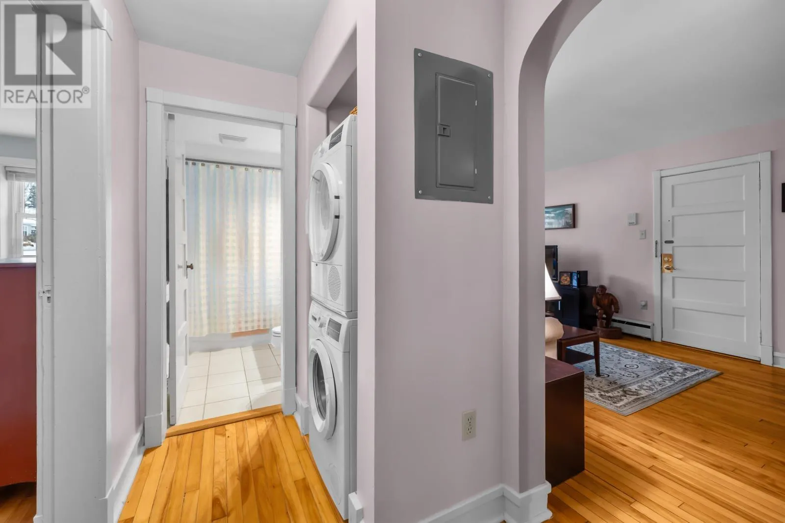 Welcome to Windsor Green Condominium, ideally located in the sought-after Brighton neighbourhood. This well-maintained building is just a 5?7 minute walk to Downtown and Victoria Park, offering exceptional convenience in a quiet residential setting. This spacious bottom-level suite features both north and south exposure, allowing for excellent natural light throughout the day. With two separate entrances, the layout offers added privacy and flexibility?perfect for everyday living or hosting guests. Inside, you?ll find a thoughtfully designed, open-concept living space with custom finishes throughout. Hardwood flooring flows seamlessly through the unit, complemented by a large living room. The updated bathroom is bright and functional, while the convenience of an in-suite washer and dryer adds everyday ease. 2 large bedrooms with 2 windows. Condo fees are $456 per month and include heat, hot water, and maintenance. The building is heated by a municipal steam system, providing stable condo fees that are not affected by fluctuating oil prices. The seller also has access to one garage parking space available for $40 per month. A unique and comfortable condo in a prime location?ideal for those seeking low-maintenance living with character and convenience. (id:27476)
