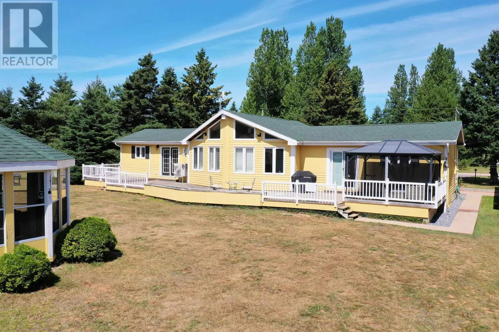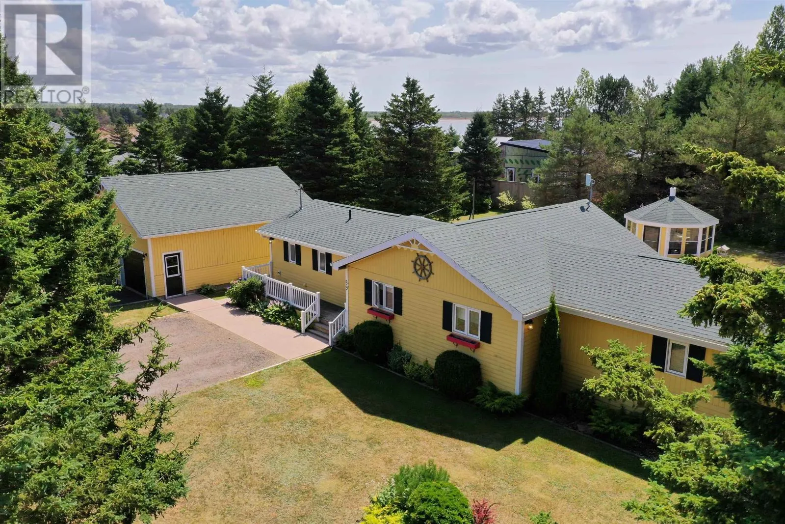 Turn on to Gordon Cove Road and the property will be on the left This inviting year-round home is nestled in a peaceful waterfront subdivision, perfectly situated along the sought-after Charlotte's Shore centrally located between Summerside and Charlottetown and just a short drive from the Confederation Bridge. Set on a spacious double lot that borders a common area, the property offers privacy, convenience, and multiple driveways for ample parking. An underground wired fence is in place perfect for your pets to stay within the the property boundaries. Outdoor living is at its best with a large back deck, wired gazebo, cozy fire pit, and beach access just steps away. The double detached garage is wired, heated, and features a dedicated workshop and rear storage area, ideal for hobbyists or extra space. A charming Bunkie (dedicated parking), currently a successful Airbnb rental, offers flexibility as a guest suite, income property, or accommodation for a family member. Inside, the home boasts a bright and modern kitchen with quartz countertops, patio doors to the back deck, and French doors opening to the sun-filled living room with vaulted ceilings and oversized windows. A double-sided propane fireplace adds warmth and ambiance, connecting the living space to the spacious primary suite.The primary bedroom offers its own patio doors to the deck, two walk-in closets, and a full ensuite bath for ultimate comfort. Two additional bedrooms, a second full bathroom, and a utility/laundry room complete the main level. One of the bedrooms features a separate exterior entrance, perfect for a home office or studio. Flooring and trim had just been updated in two bedrooms, this home is move-in ready and full of possibility for families, retirees, or anyone seeking peaceful coastal living with modern comforts. (id:27476)