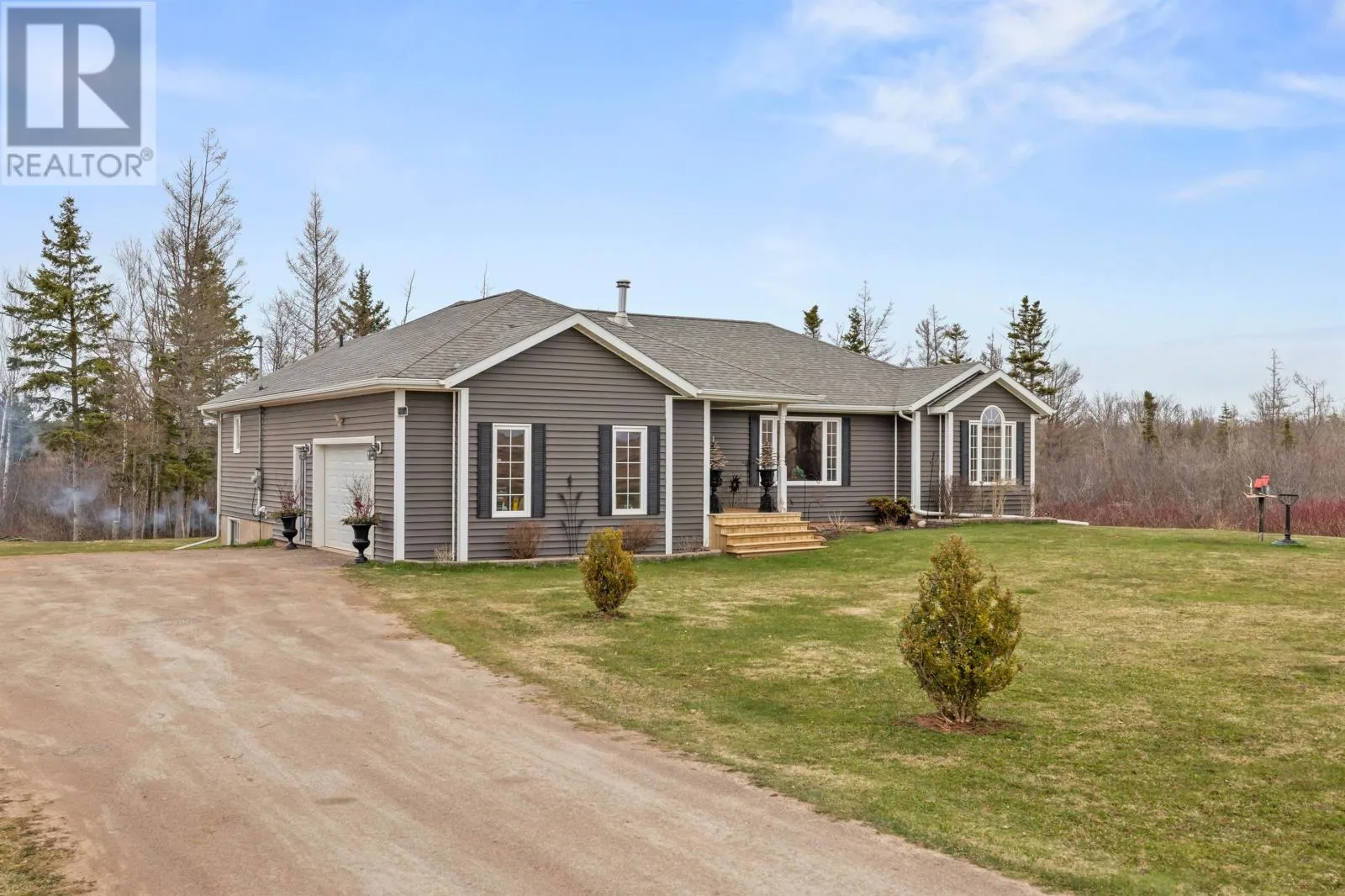 Welcome to 222 Murphy Road, a beautiful 5-bedroom rancher nestled in the woods on a 3-acre piece of land that borders the Indian River sanctuary. This spacious and inviting property offers modern updates and charm and is located just outside of Kensington and only 15 minutes from Summerside. Step inside to a bright, open entrance with vaulted ceilings that flow into a spacious open concept living room, kitchen, and dining area. The living room features a functional wood fireplace, while the kitchen features new stainless-steel appliances and modern finishes. Off the dining area, the French doors lead out to a gorgeous new 3-season fully enclosed sunroom?ideal for relaxing and taking in the tranquil surroundings. The main level also features a laundry room, three generously sized bedrooms, two bathrooms, including a primary suite with a large walk-in closet and an ensuite complete with a jacuzzi tub and separate shower. Fresh interior paint and new flooring flow throughout the entire home, adding a refreshed feel. Downstairs, the bright lower level is recently renovated and includes two additional bedrooms, a home office, and an expansive open-concept area that can serve as a rec room or family space. The home is equipped with in-floor radiant heat, new heat pumps on both levels, and wired for a generator for peace of mind. Enjoy the large double-car garage, a backyard shed for extra storage, and a peaceful setting just minutes from all amenities in Kensington. Don?t miss your chance to own this move-in ready home that truly has it all! (id:27476)