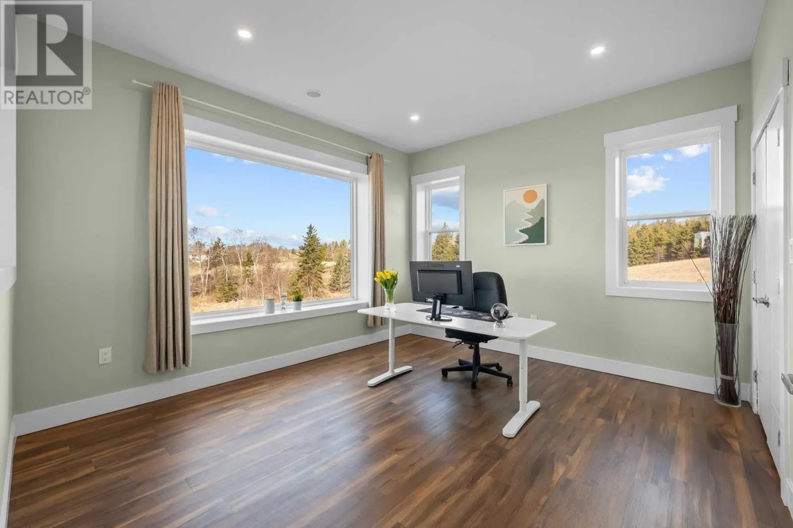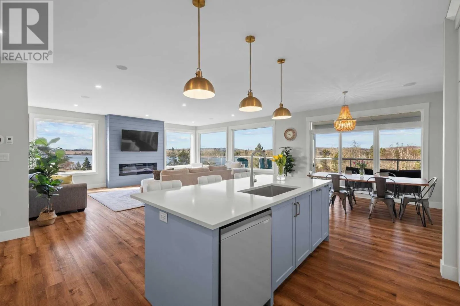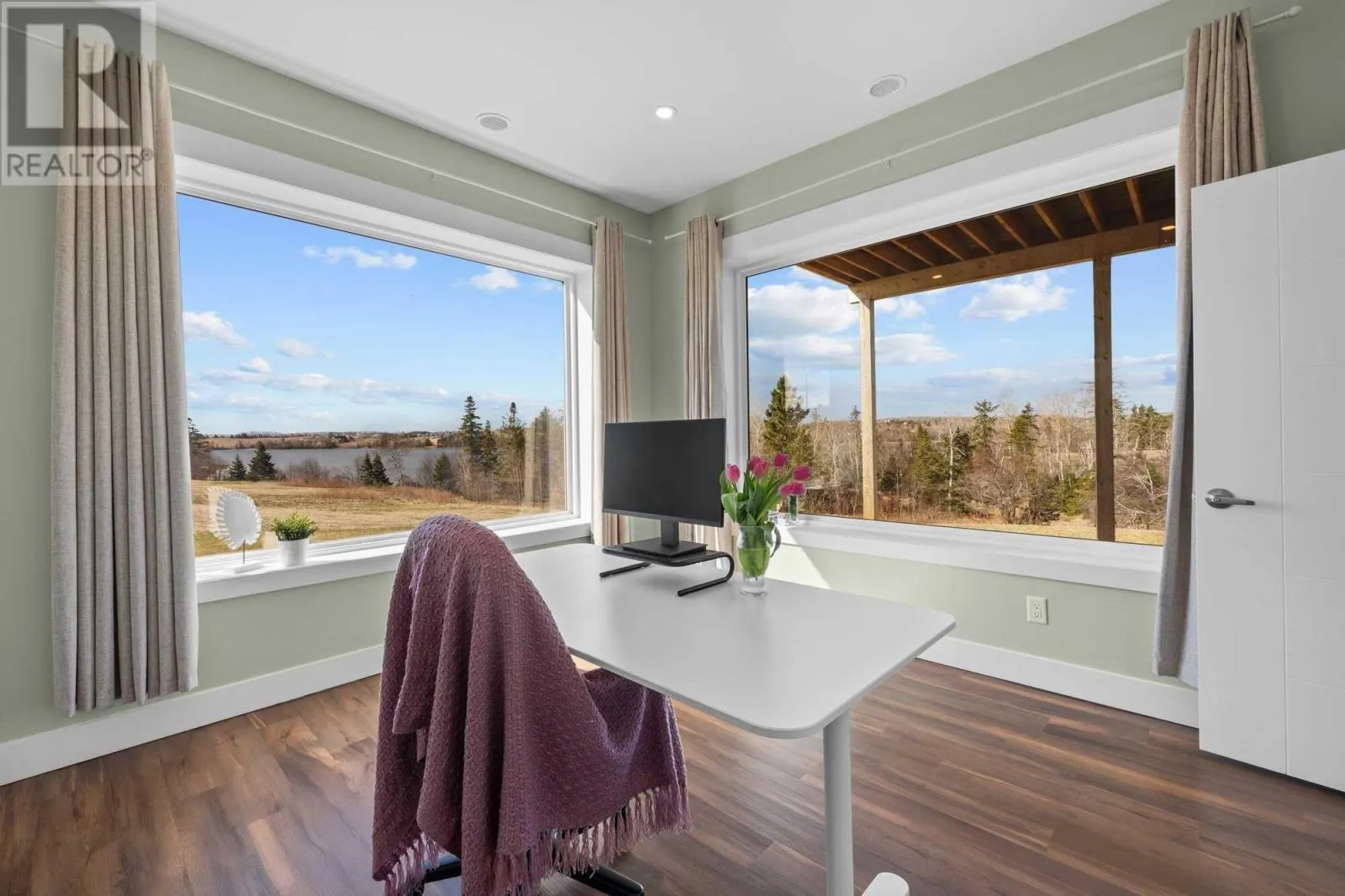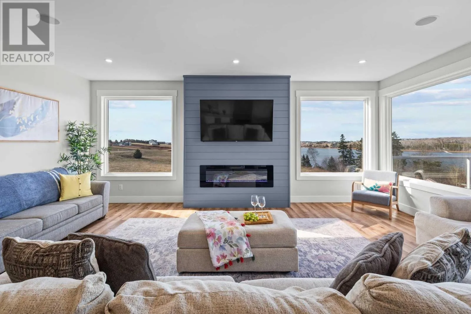 Clyde River Rd to Alexander Dr When Viewing This Property On Realtor.ca Please Click On The Multimedia or Virtual Tour Link For More Property Info.Nestled on a spacious lot in the prestigious Dunedin Estates of Clyde River, this custom-built home offers breathtaking panoramic views of the West River. Imagine waking up to the gentle shimmer of the water and ending your day with stunning sunsets, all just a convenient 12-minute drive from vibrant Charlottetown. Experience an enhanced sense of airiness with 9-foot ceilings flowing throughout the entire home. This residence features 5+1 bedrooms, 3 bathrooms, and a versatile layout perfect for family living or working from home. The heart of this home is the 780 sq ft custom-designed golf simulator/home theatre with soaring 14-foot ceilings, an entertainer's dream. Practicality meets luxury with a walk-out basement, walk-in pantry and mudroom. For fitness enthusiasts, a dedicated gym/rec room offers the perfect space to stay active. (id:27476)