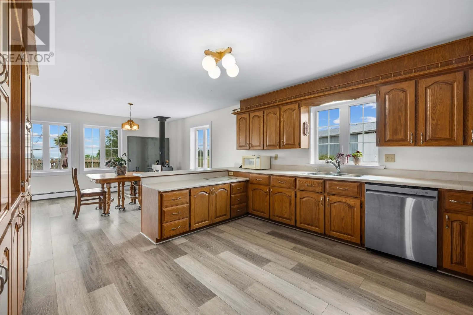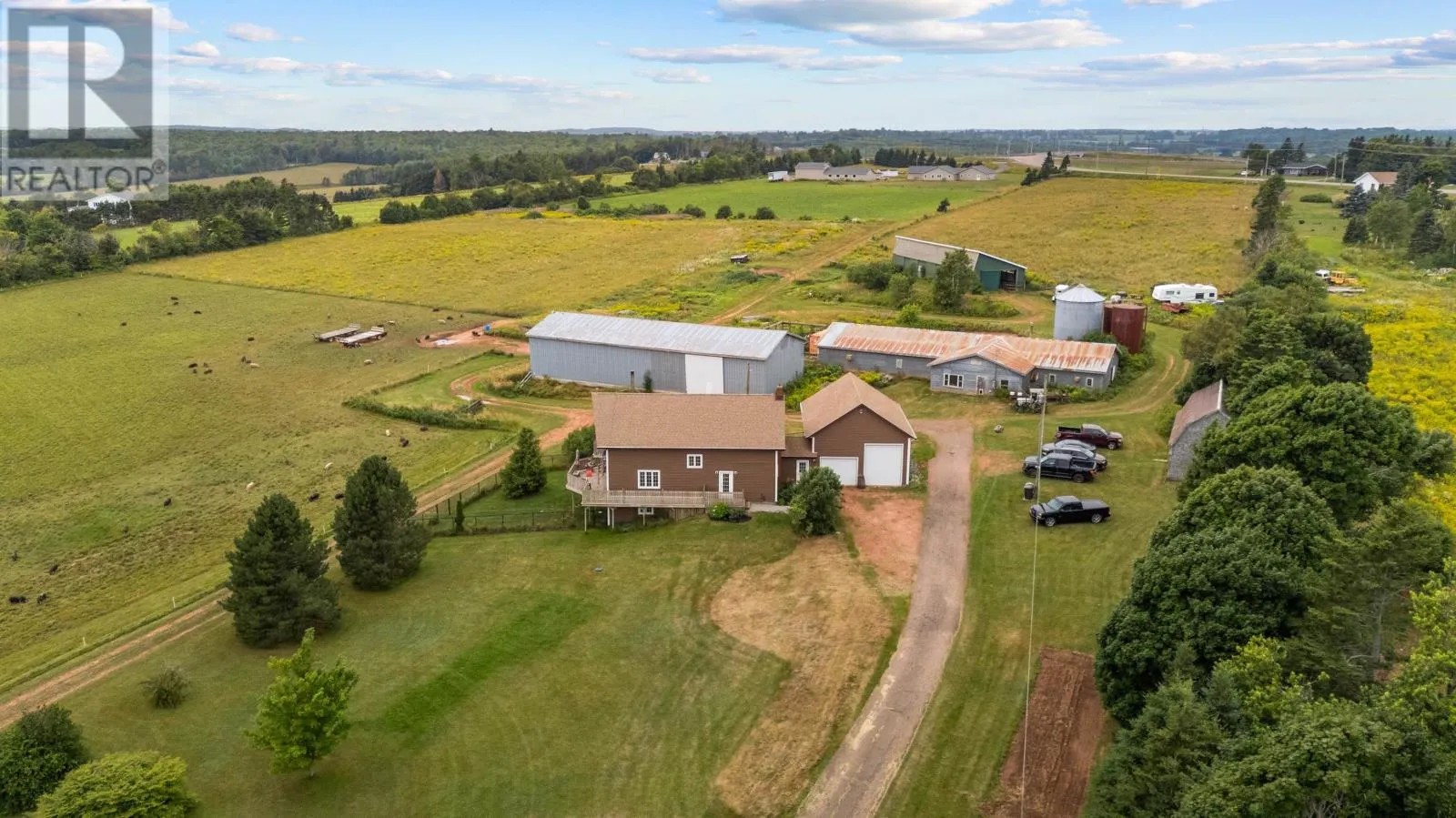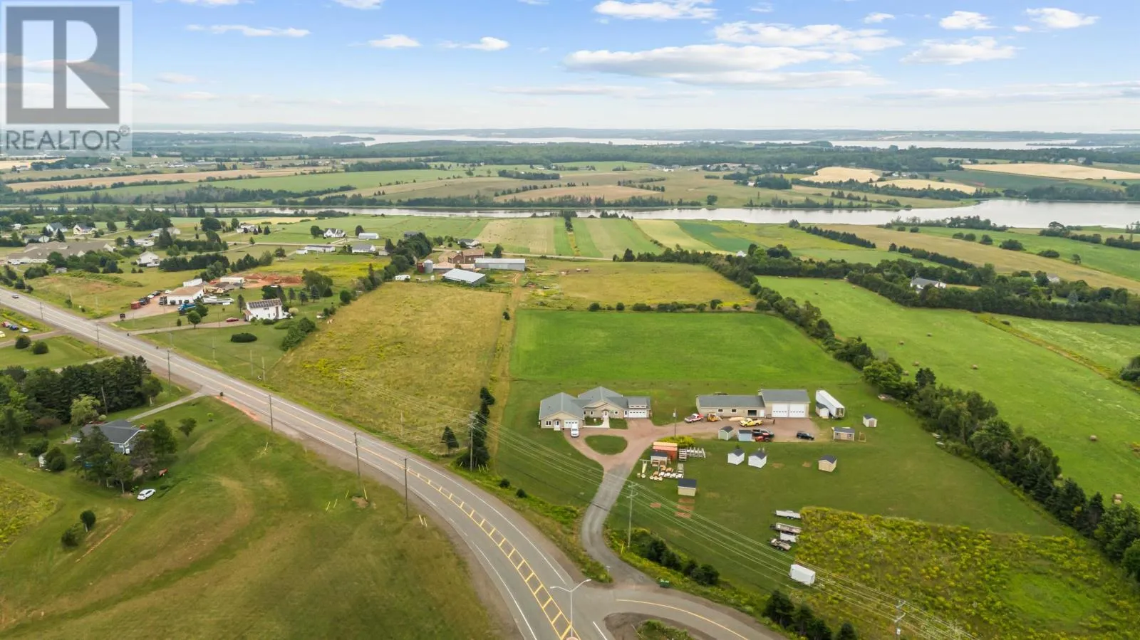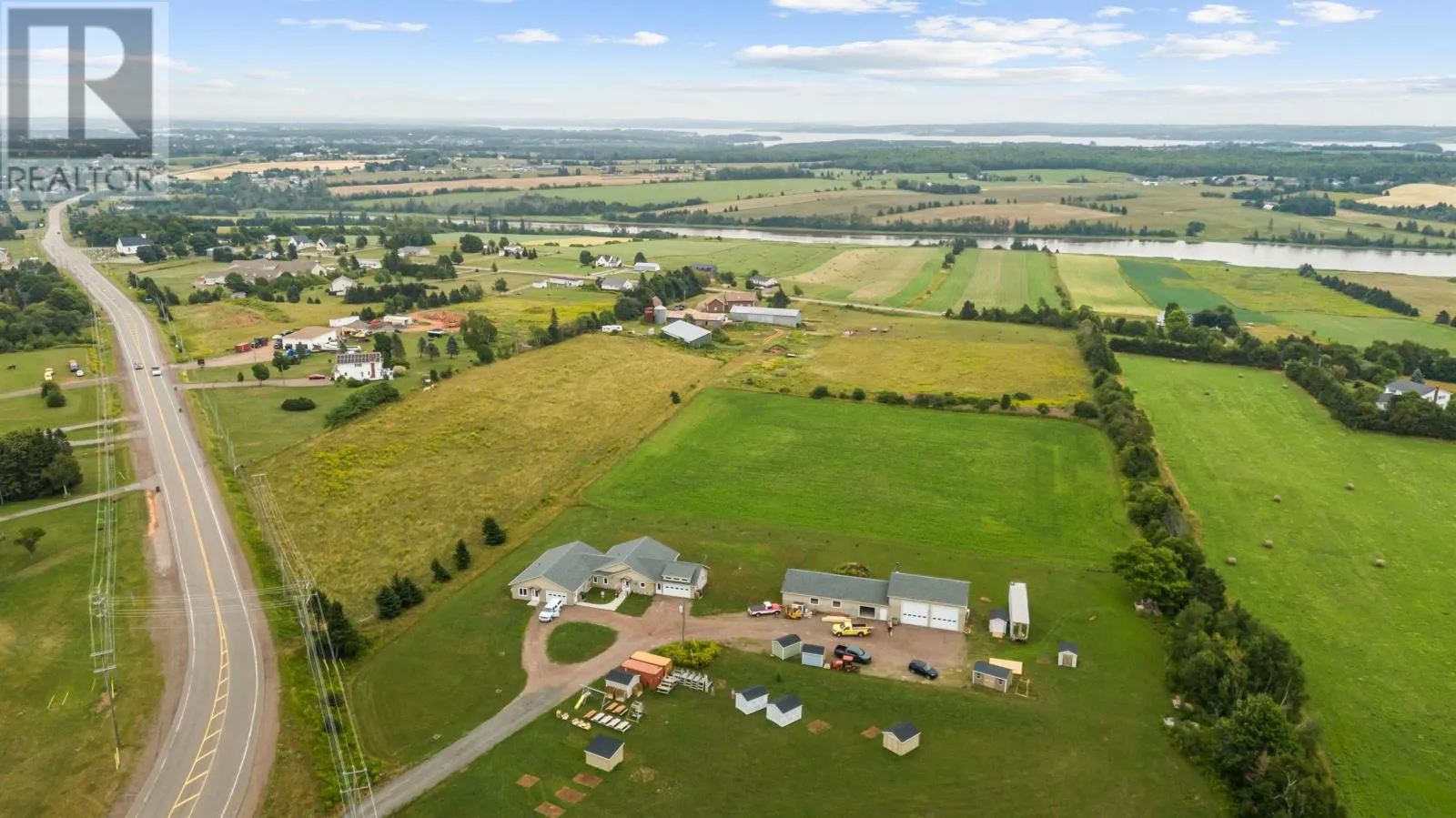 Set in PEI?s countryside, 653 Clyde River Road is a scenic property offering a rural lifestyle just minutes from Cornwall and a short drive to Charlottetown. With 15.4 acres , and a charming, spacious home, this property brings comfort, functionality, and natural beauty together. The home sits high on the lot, offering panoramic views of the surrounding hills and river. The main floor is open and filled with natural light. A wood fireplace adds warmth to the living area, flowing directly into a classic country kitchen with solid wood cabinetry. Off the main entry, a built-in home office with custom shelving offers a quiet and functional space for remote work, study, or creative pursuits. Outside off the living room is a gated wraparound deck with views of the Clyde River. The home includes a laundry room with a half bath. The basement has a large workshop with double walkout doors, and a dedicated wood storage area. The walkout leads to a fenced-in back yard. Upstairs features three bedrooms and two full bathrooms, including a generous primary suite with a large ensuite and direct access to a private deck ? the perfect place to enjoy sunrises and quiet evenings overlooking the water. The main bathroom provides ample cabinet space and storage. The double car garage attached to house with separate entryway features 14-foot ceilings, and perfect for use as a workshop or additional storage. Recent updates include fresh paint throughout, all new flooring, new fiberglass oil tank, and a new roof. Well-equipped for agricultural use, the property includes multiple barns and three operational grain tanks. This hobby farm has infrastructure and acreage offering possibilities for other ventures in farming. A rare offering of acreage, water views, outbuildings, and a well-appointed country home all in one. (id:27476)