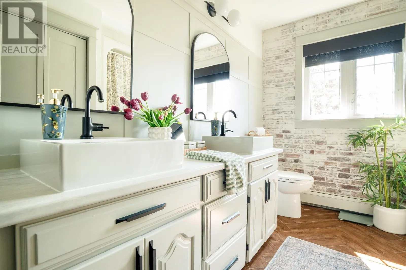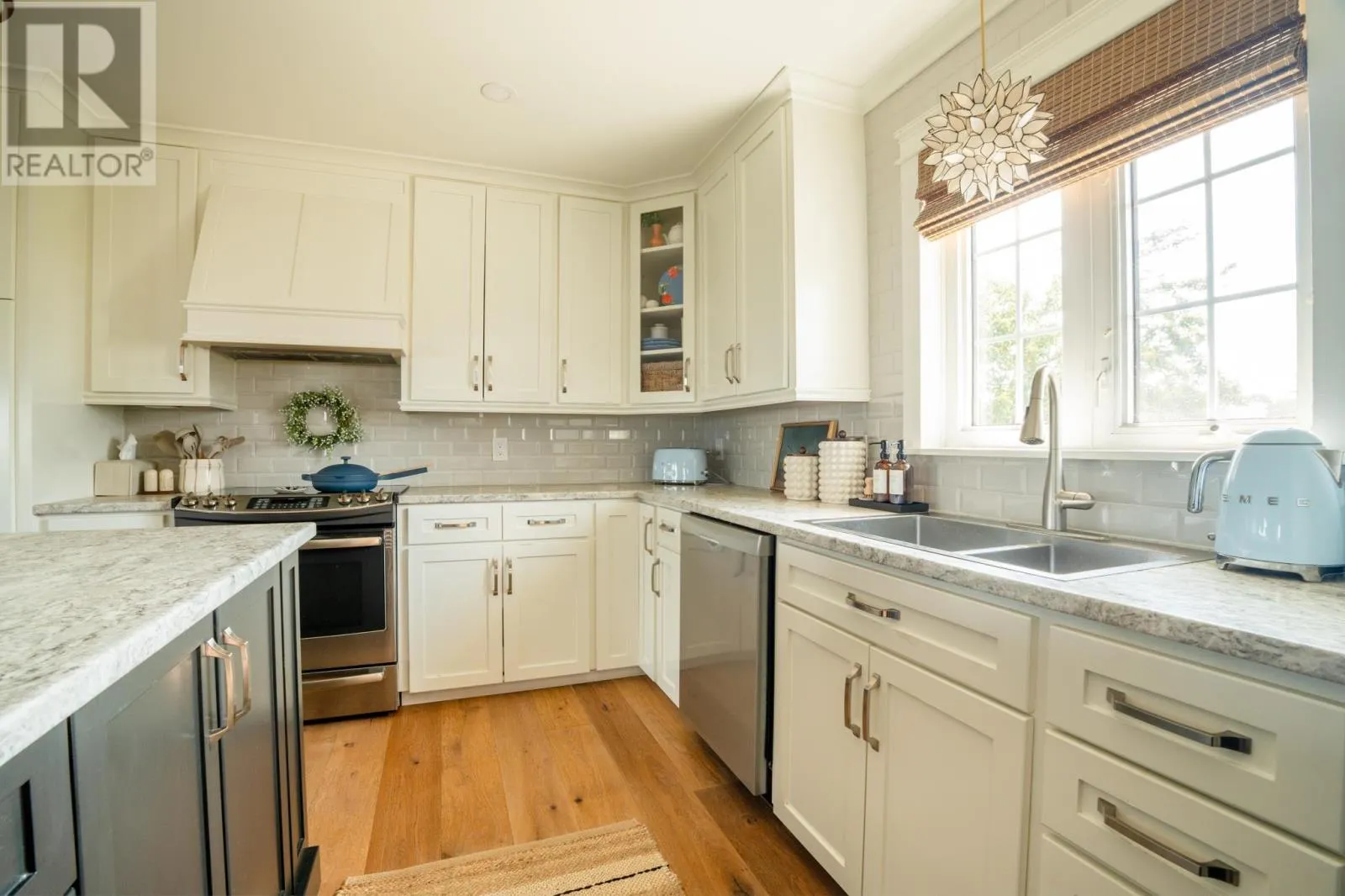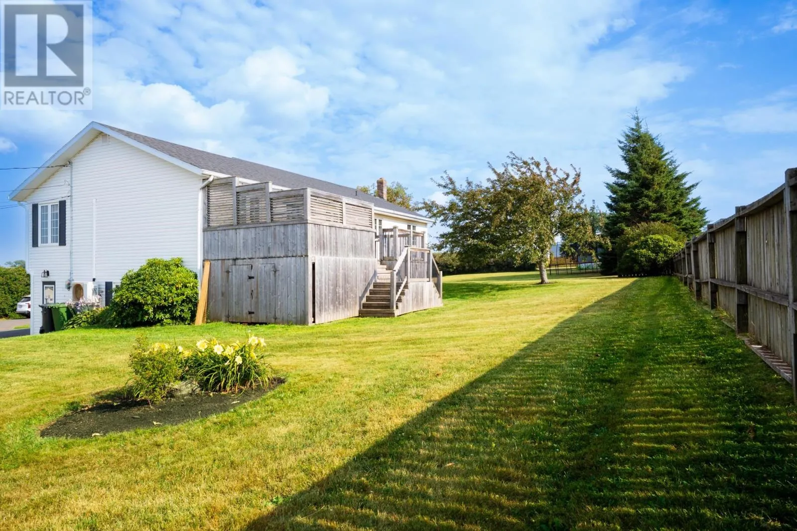Beautiful split-entry home with modern updates, located on a double lot in Cornwall PEI. This well maintained home shows exceptionally, offering spacious open concept living, four-five bedrooms, two bathrooms, and a potential in-law suite or studio. The home sits on over half an acre, in a family-friendly neighborhood, with East Wiltshire Intermediate School just a short walk away. The elevated main level of this home features a beautifully designed kitchen, dining and living area. The living room is bright and welcoming, featuring a custom fireplace with an elegant electric insert, and multiple windows. The ample natural lighting highlights the beauty of the space, and views of distant neighborhood?s and landscapes are appreciated. The kitchen is at the heart of the home, and has been refreshed with new cabinet fronts, stainless steel appliances, a custom island, and more built-in cabinetry in the dining area. From the dining area, you can step out to a 24? x 12? back deck with a privacy wall?perfect for relaxing or entertaining. The primary bedroom, full bathroom and laundry, and the second and third bedrooms are also located on the main floor. The lower level features the fourth bedroom, a main downstairs bathroom, a spacious multipurpose room currently used as a fifth bedroom, and an additional living room. The home?s lower level offers excellent flexibility with its own ground-level entrance from the driveway. This setup provides the option for an in-law suite, guest space, or home studio. The home also features a single car garage, and outside there is a garden shed, and a long privacy fence in the backyard. Recent updates include custom cabinetry, new interior and exterior lighting, upgraded electrical receptacles on the main floor, and custom stonework at the front entry with beautiful stone steps.?With 4?5 bedrooms, 2 full bathrooms, and a large, private double lot in a sought-after location, this beautiful home is r (id:27476)