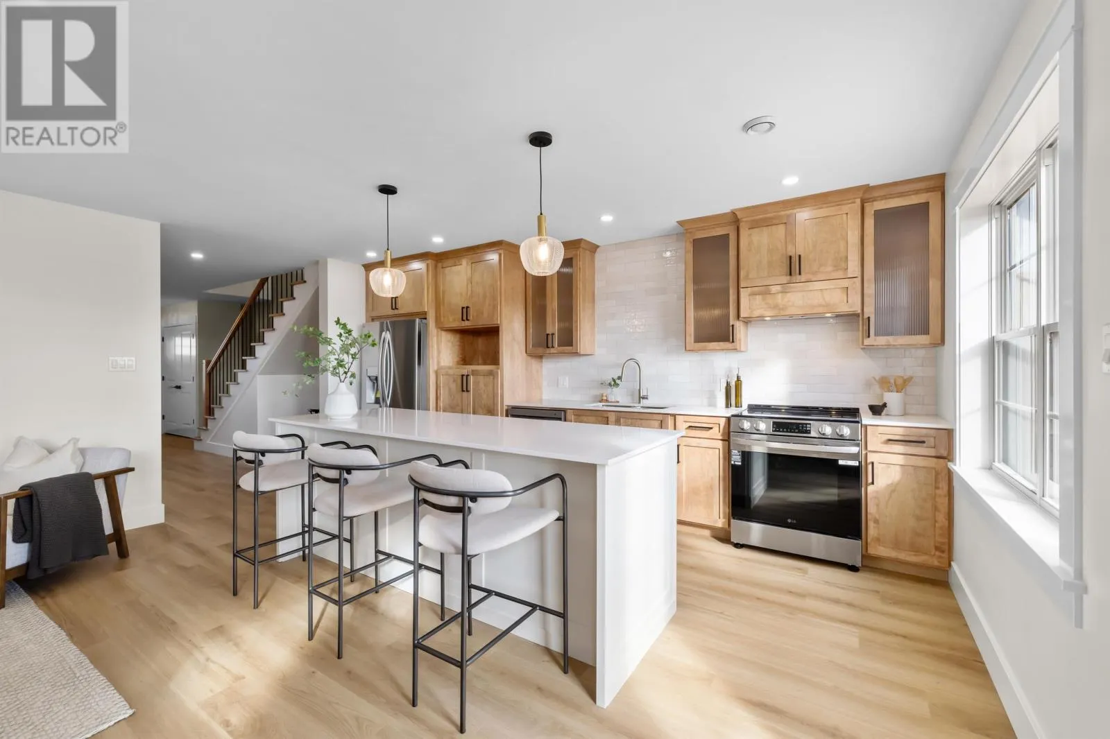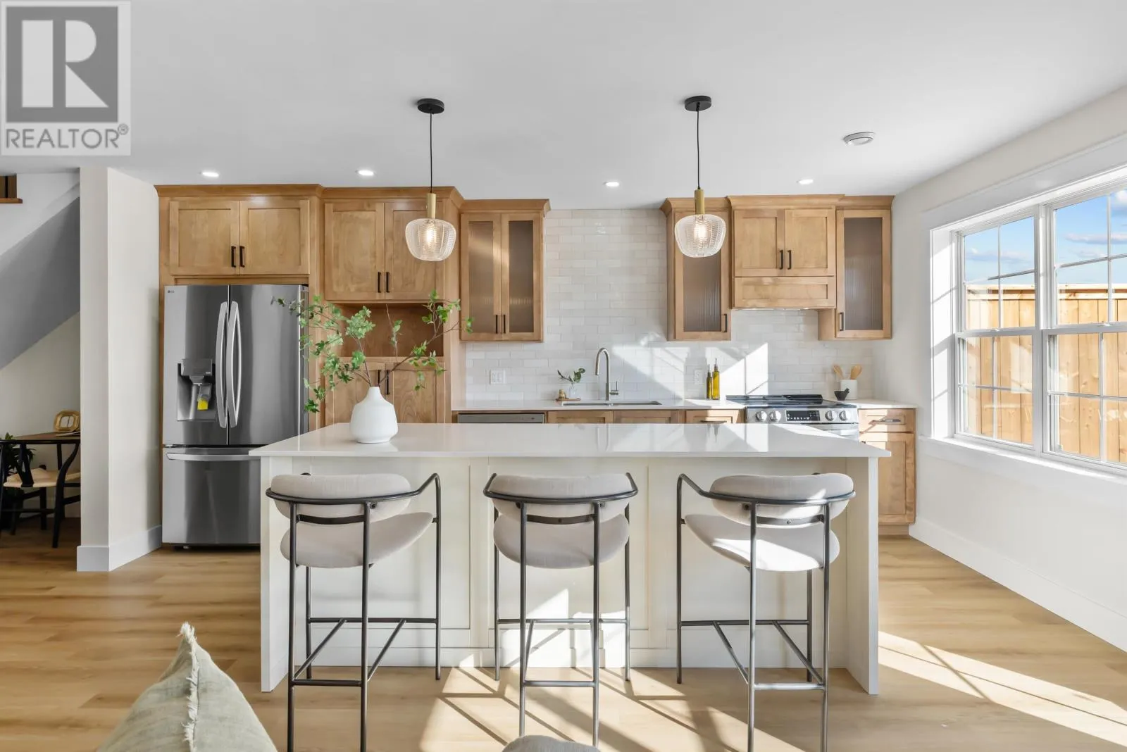 Welcome to this beautifully crafted 3-bedroom, 2.5-bathroom semi-detached home, offering an exceptional blend of modern design and high-quality finishes. Nestled on a desirable corner lot, this home boasts impressive curb appeal, with exposed aggregate walkways and top-tier roofing and siding that promise both durability and style. As you step inside, you're greeted by a large entryway that leads into the heart of the home. The open and inviting atmosphere is enhanced by custom wood cabinetry, offering plenty of storage while providing a warm, luxurious feel. The kitchen features high-end, hard-surfaced countertops that are both functional and beautiful, making it the perfect space for culinary creativity. The home is thoughtfully designed with 3 spacious bedrooms, including a large master suite with a generously sized walk-in closet. The ensuite bathroom is a true retreat, with a custom tile shower that adds a touch of elegance to the space. With 2 full bathrooms upstairs and a half bathroom on the main level, there?s no shortage of convenience for family and guests. The outdoor space is equally impressive. The 14' x 20' deck provides ample room for relaxation and entertaining, while the double driveway and single-car garage ensure that parking is never a concern. Located on a prime corner lot, this home offers additional privacy and room to enjoy the surroundings. With high-quality finishes throughout and meticulous attention to detail, this property is sure to exceed your expectations. (id:27476)
