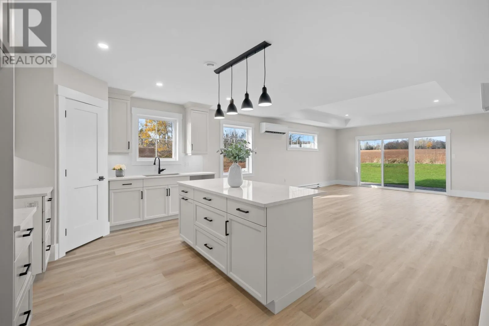 Facsimile photos - New build photos coming soon! Welcome to 89 Samantha Lane, nestled in Cornwall's newest subdivision, Scottsview Meadows. This home is located on a quiet, private street with sidewalks, perfect for walks and enjoying the neighbourhood plus steps to Cornwall Amenities. Boasting 1,466 sq. ft. of comfortable slab living, this 3-bedroom, 2-bathroom home includes a 1.5-car heated garage with epoxy flooring & garage window for natural light. The front entry greets you with a XL double-paved driveway, stone walkways, and a covered front veranda. Inside, you'll find a mudroom nook area while seamlessly connecting the garage access, as well as a convenient coat closet. The open-concept living space features floor-to-ceiling custom kitchen cabinets, full pantry, backsplash, quartz countertops, and a large kitchen island and under-mounted kitchen sink facing a sun-filled window. The kitchen and dining area flows seamlessly into the living room, which boasts a tray ceiling with recessed lightning throughout and an oversized three-door slider patio beaming in natural sunlight that opens onto a beautiful stone veranda patio and private quiet backyard. The tucked-away large primary bedroom offers a walk-in closet and an ensuite bath with custom cabinetry, double sinks, and a walk-in shower with black custom shower door and shower taps. Off the primary suite is a separate laundry room with shelves and a linen closet for added convenience. The two additional guest bedrooms are spacious, each with double closets, & the main guest bath includes a window to let in natural light. Additional features include vinyl plank flooring throughout, ample windows for natural sunlight, epoxy garage flooring, floor-to-ceiling kitchen cabinetry, tray ceiling, stone walkways and patio, and a Home Warranty for peace of mind.The home is heated by electric with electric baseboard rads & heat pump. Includes stainless kitchen appliance package. Lawn is to be sodded g (id:27476)