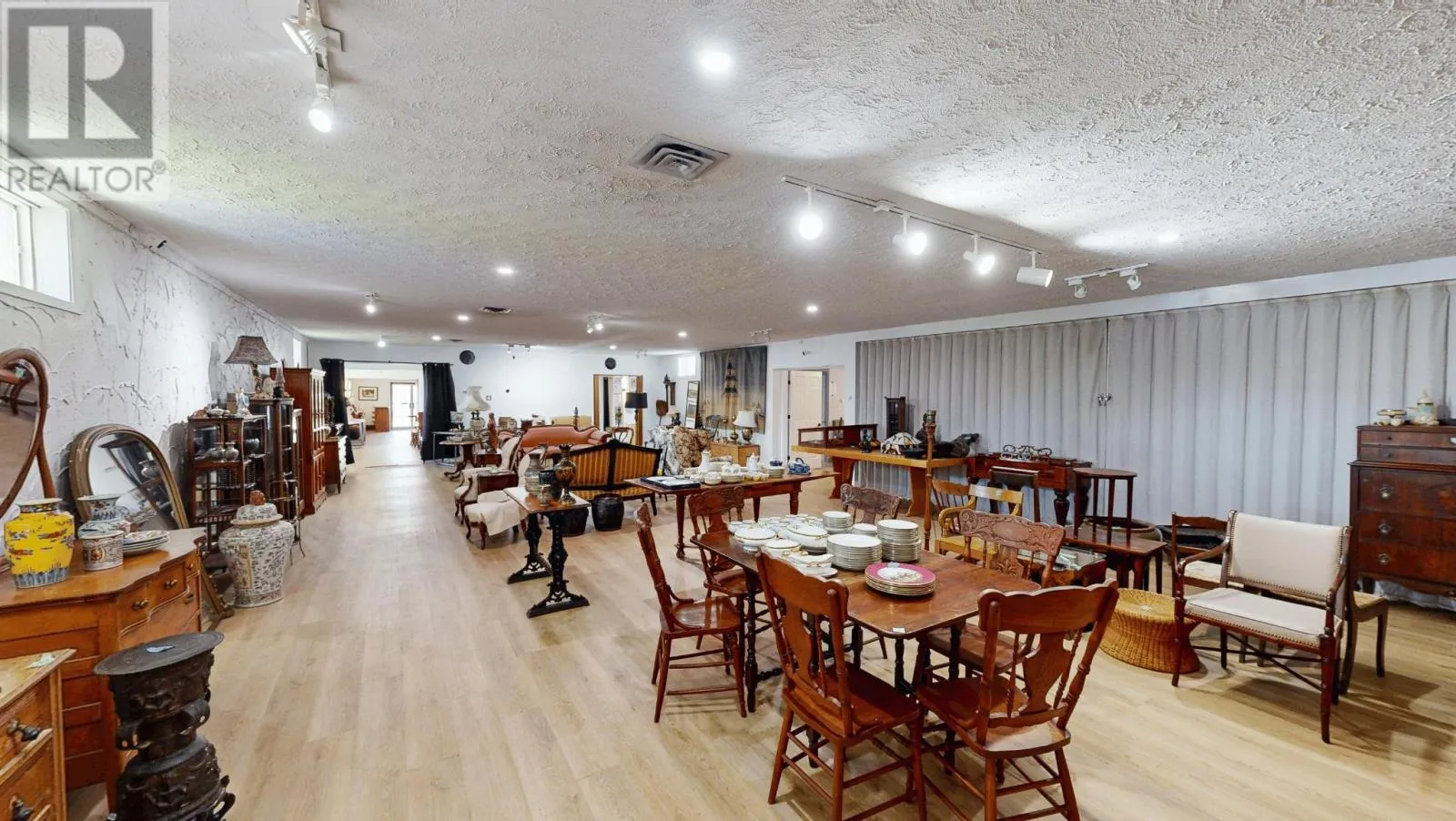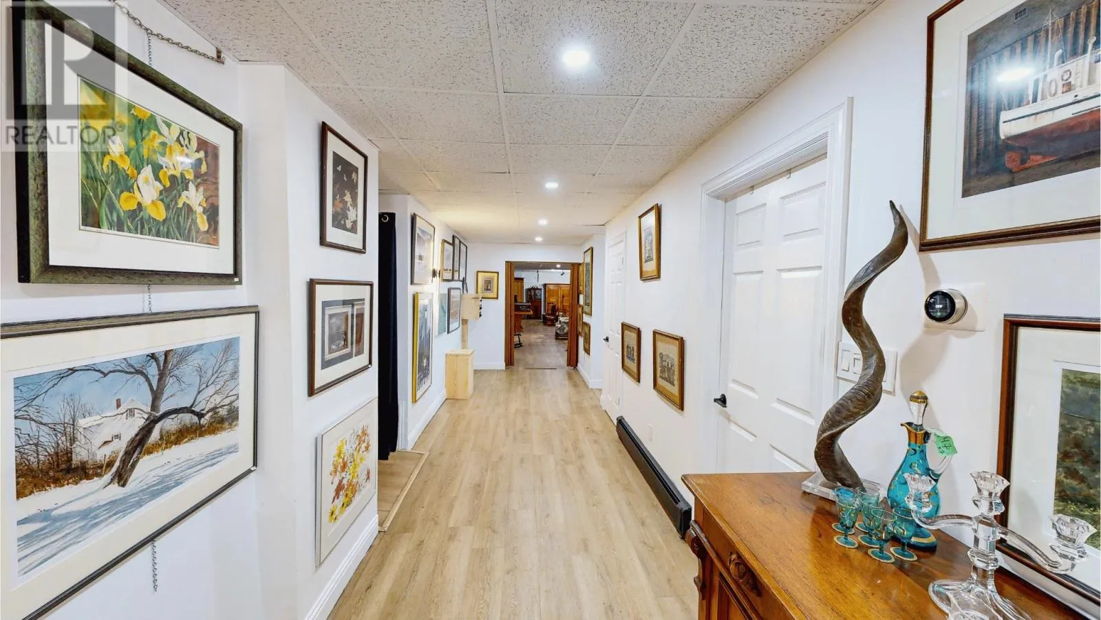 From the Trans-Canada Highway (Route 1) in Crapaud, turn onto Route 13. The property is the third building on the right, clearly marked with large signage reading "Moe's Auction house" on the front facade. Looking for a turnkey business with real estate included? This share sale offers Moe?s Auctioneering Service Inc. along with its commercial property located at the high-traffic corner of Route 13 and the Trans-Canada Highway in Crapaud, PEI. The property spans two PIDs (217190 & 217182) totaling 0.41 acres, backing onto the Westmoreland River. The building provides approximately 4,954 sq. ft. of main-level commercial space, a 1,100 sq. ft. unfinished walkout basement with overhead door, and a 780 sq. ft. private 2-bedroom apartment?ideal for an owner-operator or rental income. Total building area: 6,834 sq. ft. Recent upgrades include a new steel roof, vinyl plank flooring throughout, interior and exterior painting, LED overhead lighting, a new well pump, circulation pump, oil tank, PEX & copper lines, five Google Nest smart thermostats, a security system with cameras and alarm, steel front and rear man doors, updated switches, dimmers, and outlets, and a steel-lined secure storage room. Serviced by municipal sewer and private well. Heating and cooling are provided by a 6-year-old oil-fired boiler, ductless mini-split heat pump, and commercial central A/C. Business Overview: This sale includes 100% of the shares in Moe?s Auctioneering Service Inc., a long-standing PEI auction company that has evolved into a tech-driven platform for estate, antique, collectible, and equipment auctions. The business includes a full online auction system, a mailing list of over 6,700 buyers, a professional website, and a strong social media presence generating millions of annual views. (id:27476)