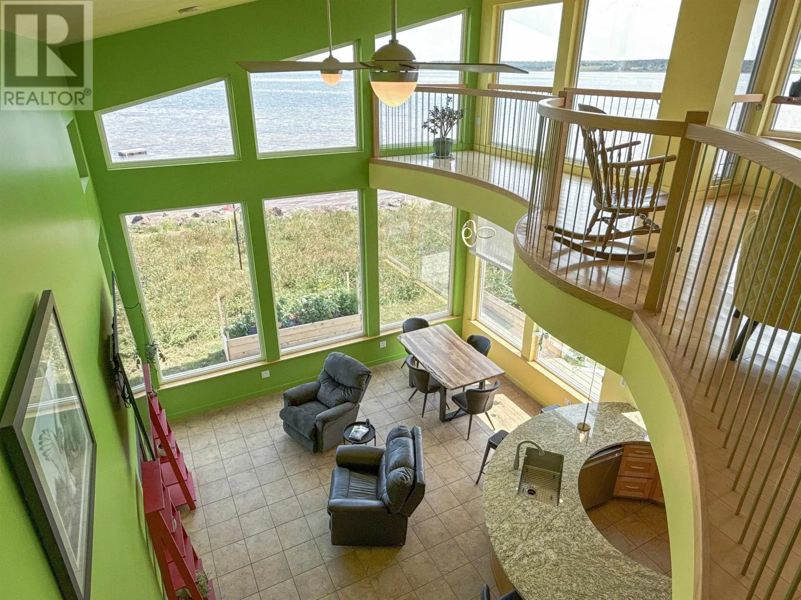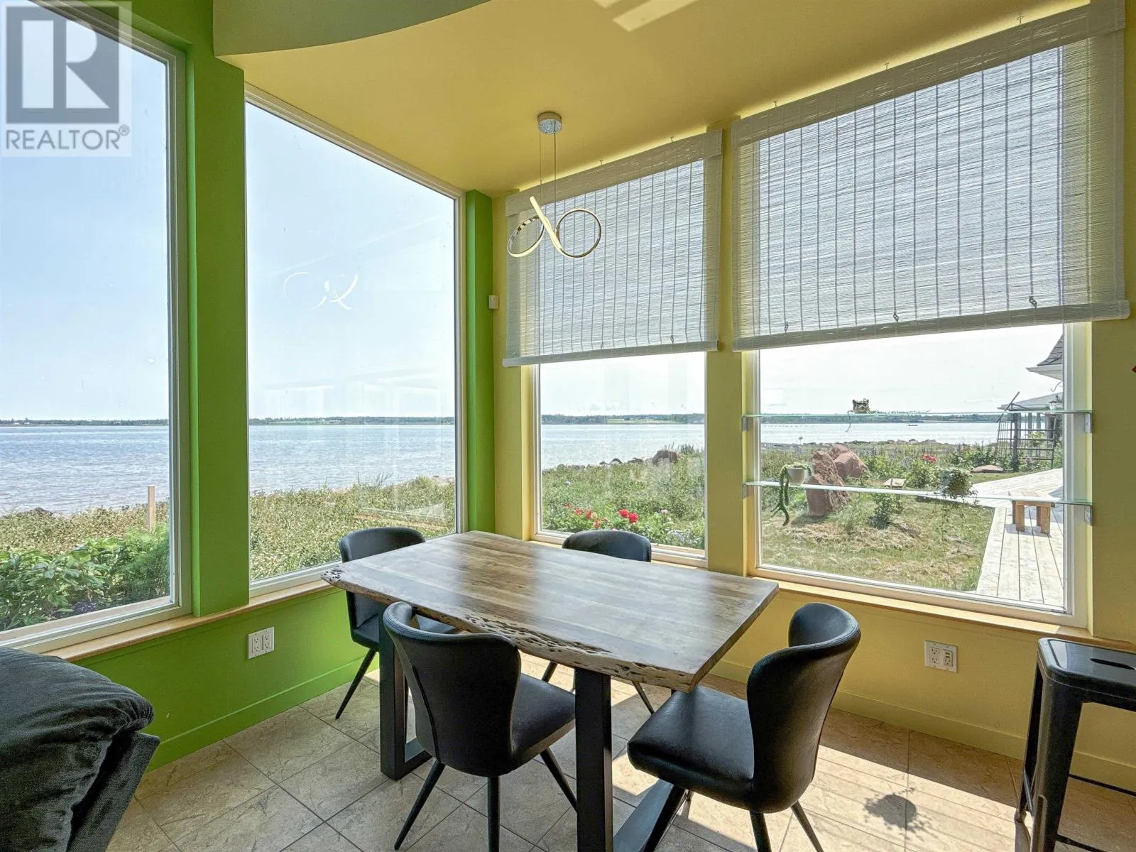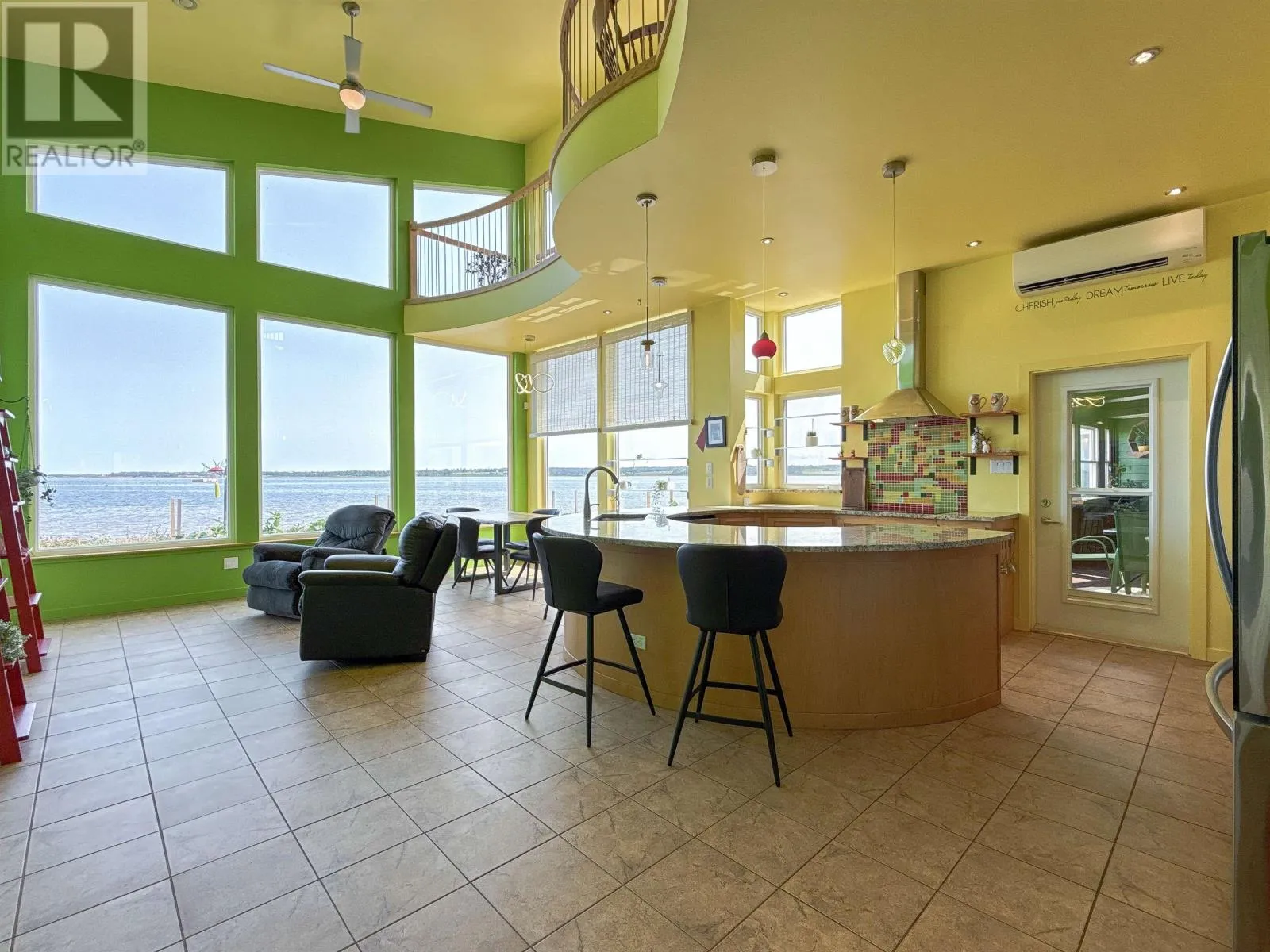 A Rare and Truly Exceptional opportunity to own a year-round waterfront retreat on the stunning Tracadie Bay. "Heron Cove" was Designed and Custom Built with Artistic Vision and Creative Flair, this one-of-a-kind property offers spectacular panoramic water views and complete privacy, making it ideal as a full-time residence or a luxury getaway. The interior is flooded with natural light from dramatic floor-to-ceiling windows, showcasing stunning vistas across the shoreline. The main level features an open-concept layout with soaring ceilings, a Unique kitchen equipped with a granite semi-circular island, under-mount sink, and custom cabinetry. The spacious living and dining areas flow seamlessly, while a loft family room above overlooks the main floor, enhancing the sense of openness and airiness and a view that takes your breath away. There are two primary bedrooms on the main level, with a walk-through closet and private access to a spectacular ?walk-in tub room,? where you can relax in a bath while enjoying the sights and sounds of the surrounding nature, plus a full bathroom with a walk-in shower and dual vanity space. Both Bedrooms have direct access to the deck. The main floor is connected to the garage with a breezeway used as a three-season garden room, just the perfect indoor/outdoor space. There is a private guest suite behind the garage that features the third bedroom, a living room, kitchenette, and an en suite bathroom perfect for extended family, guests, or generating rental income. Outdoors, the home is surrounded by extensive, meticulously maintained perennial gardens, a reading garden, a walkway leading to the shoreline that has been fully protected with immense Shoreline Protection. This is a special opportunity to own a showpiece home that combines artistic design, luxury comfort. Built to the highest level of Quality, Workmanship and Materials used to create this Exceptional Home!! (id:27476)